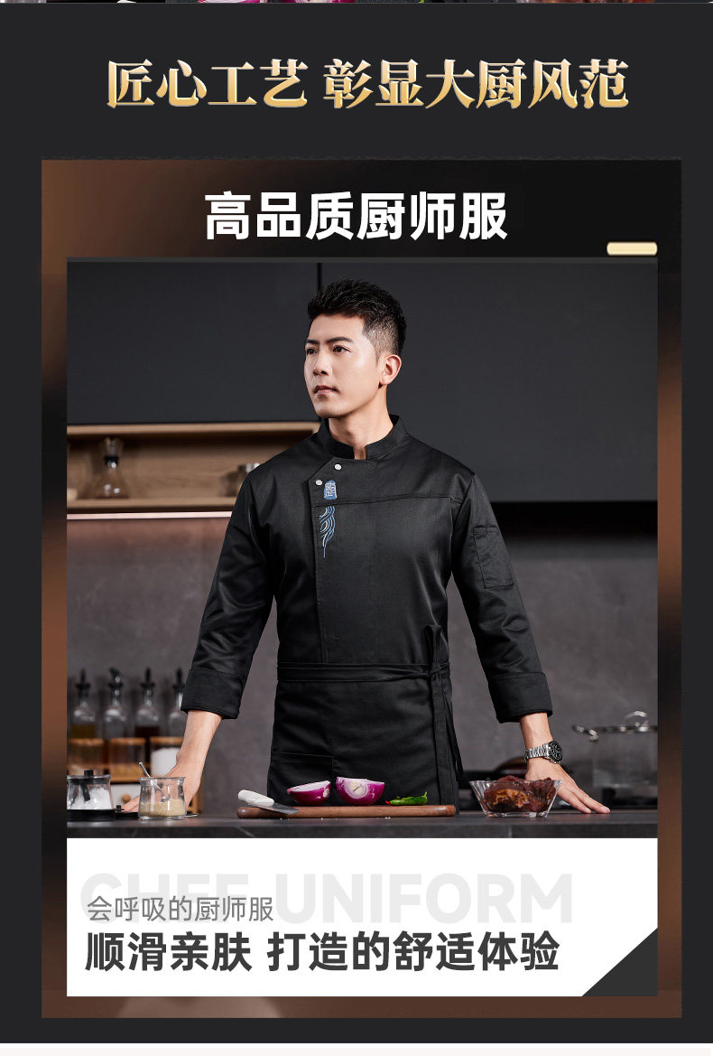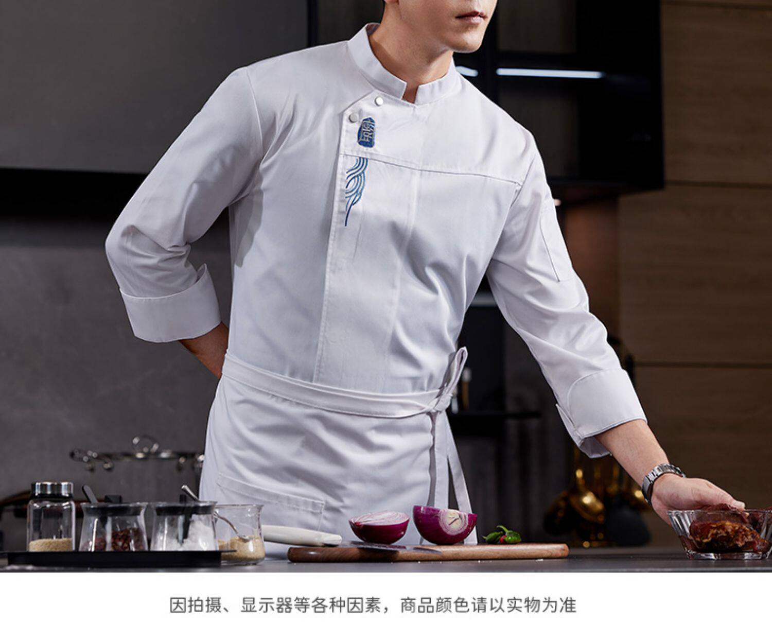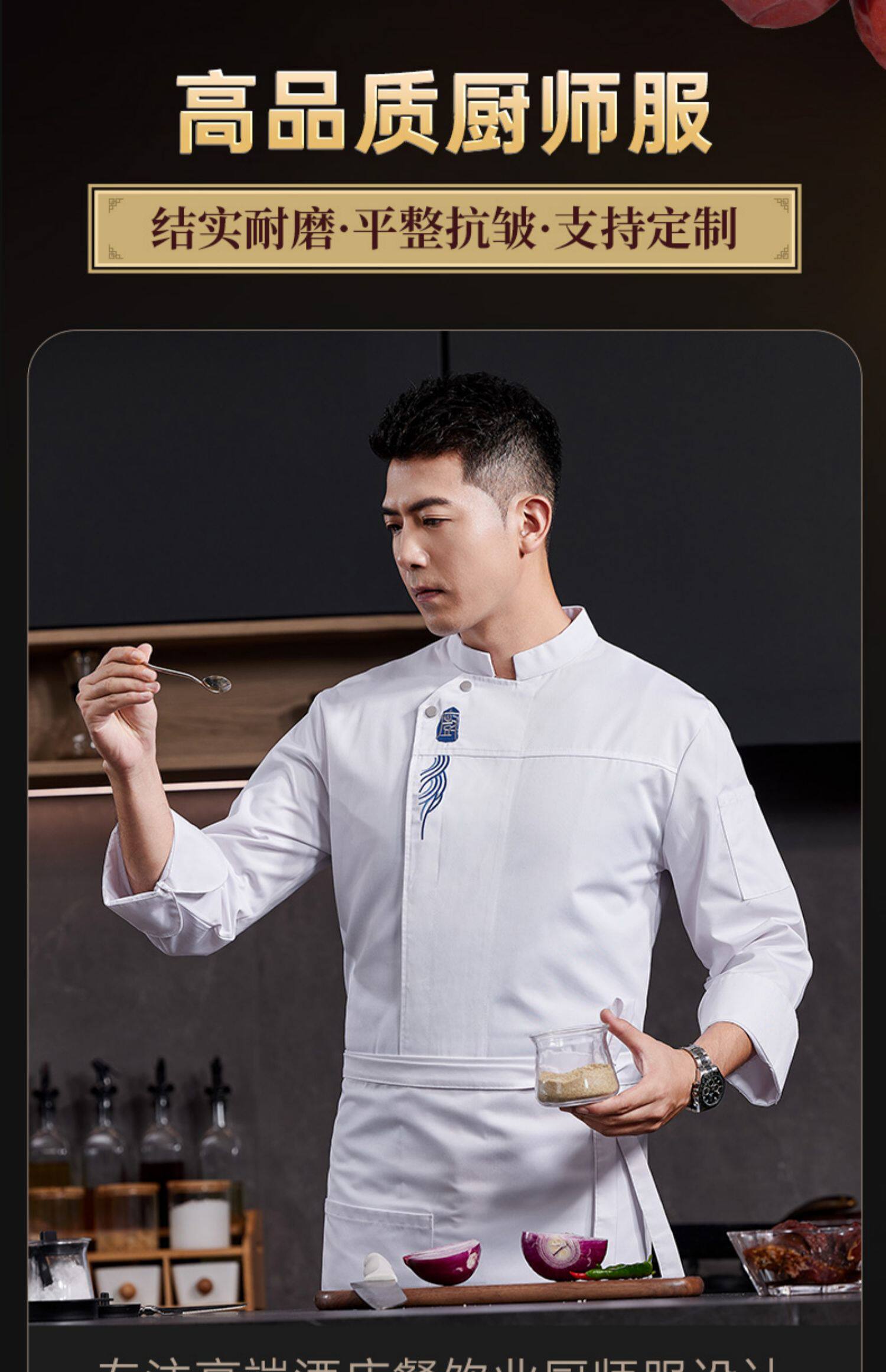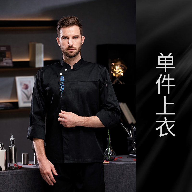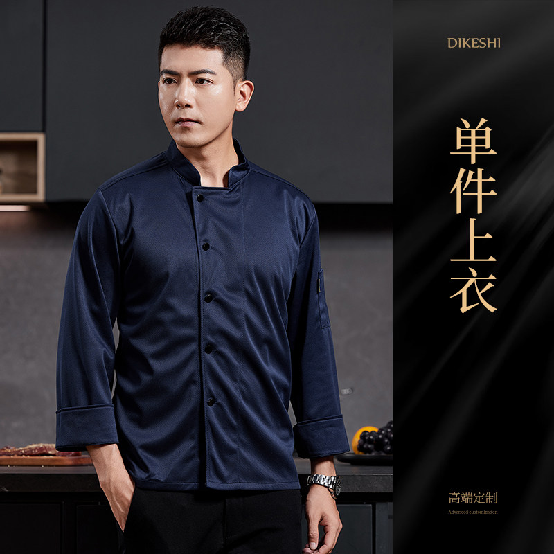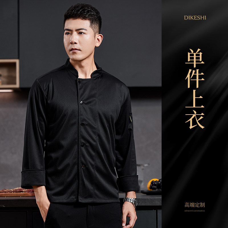 中式厨师工作服秋冬装长袖餐饮酒店快餐饭店后厨房灰色短袖衣服男