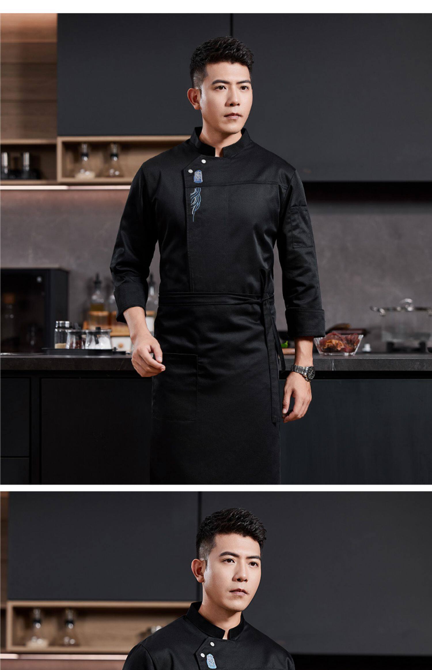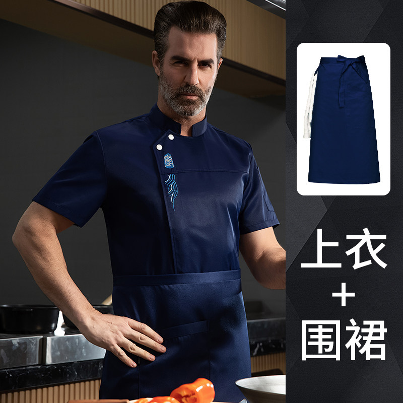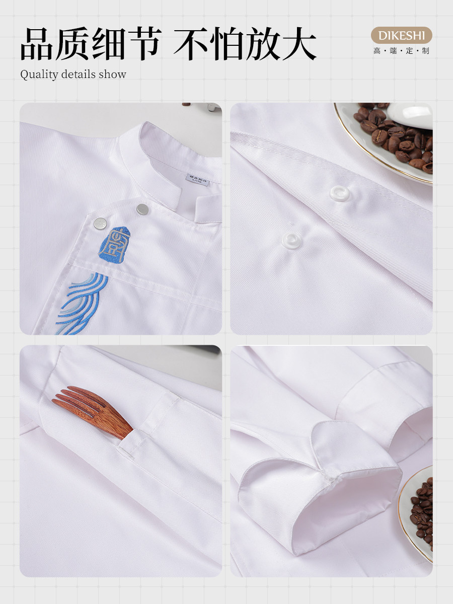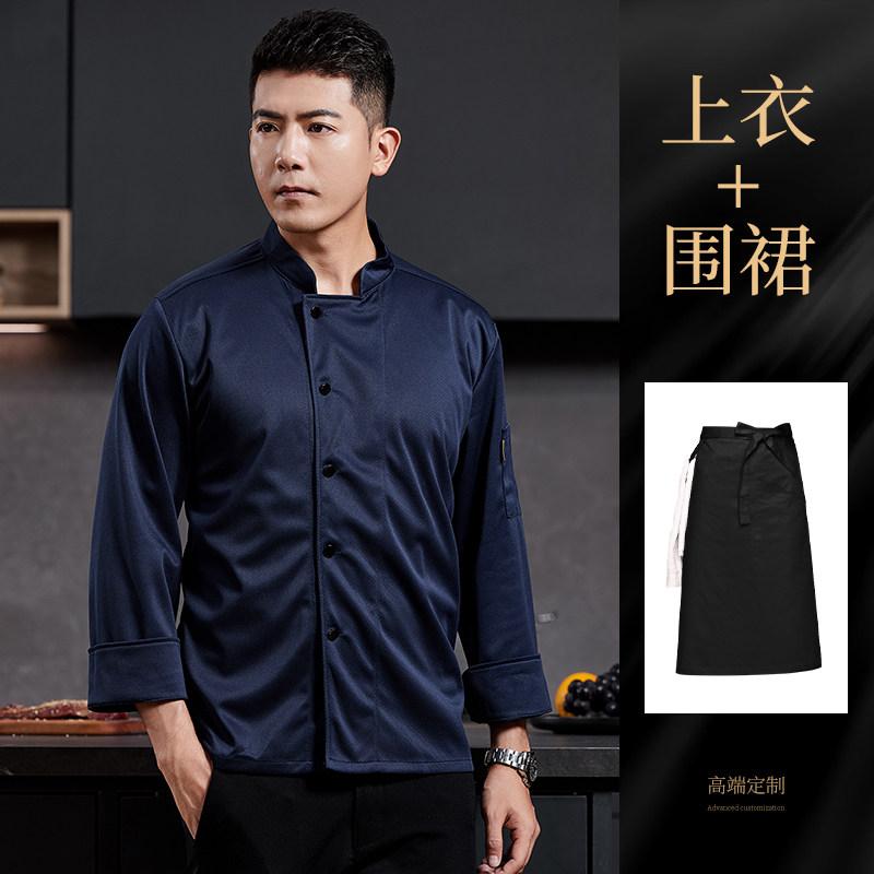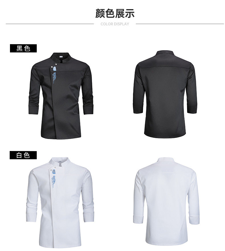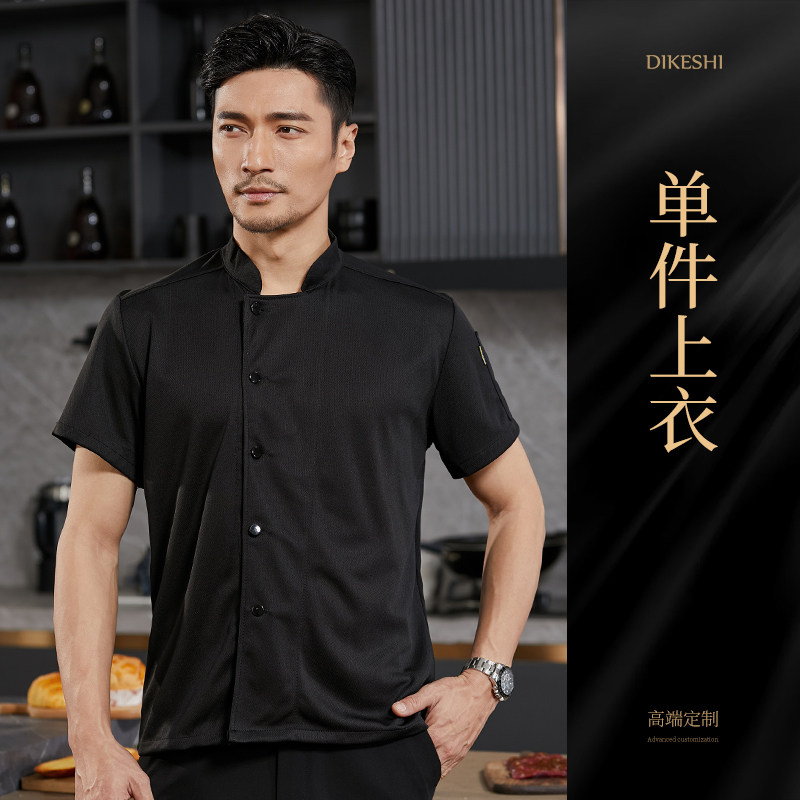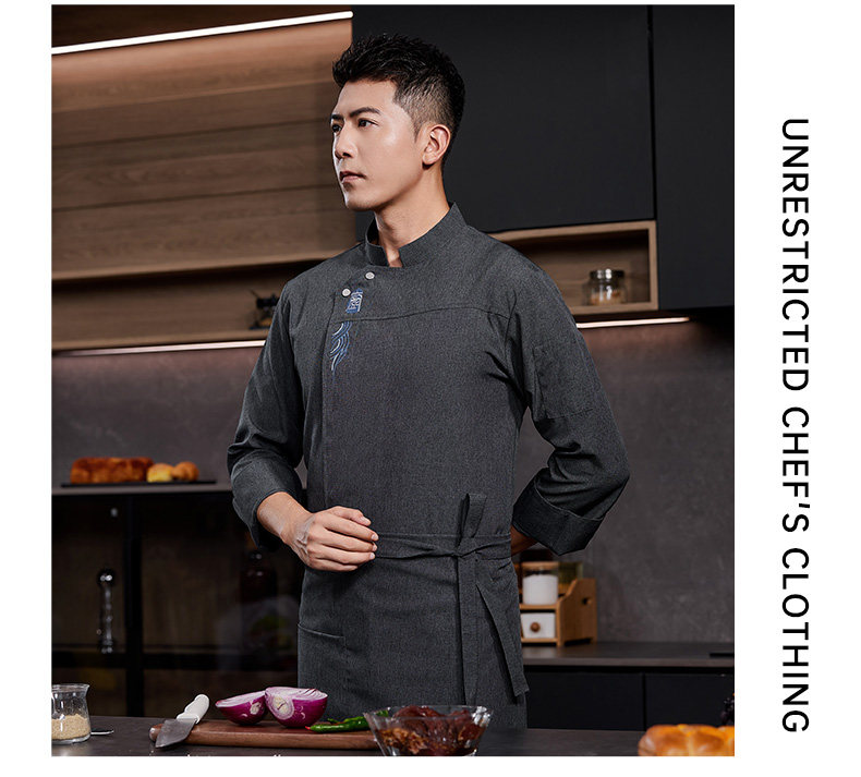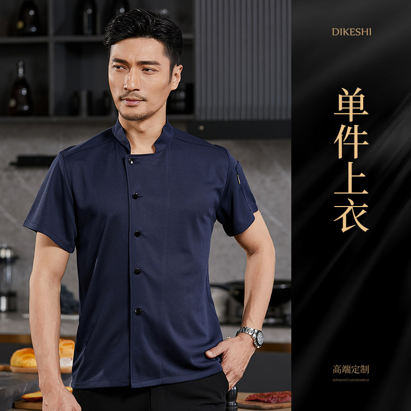 中式厨师工作服秋冬装长袖餐饮酒店快餐饭店后厨房灰色短袖衣服男
