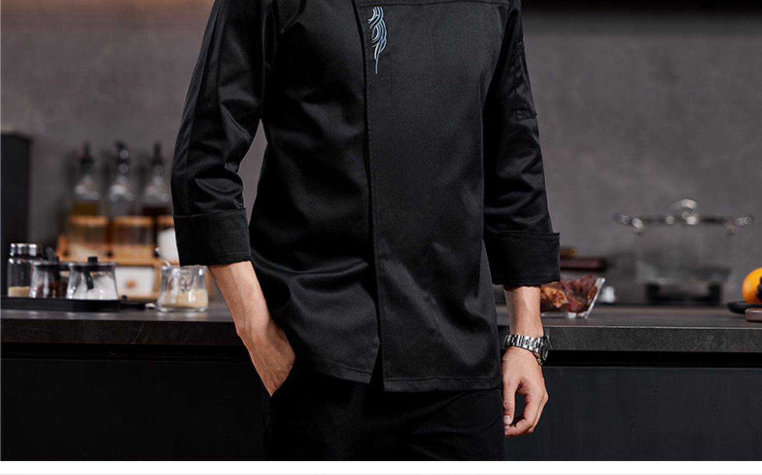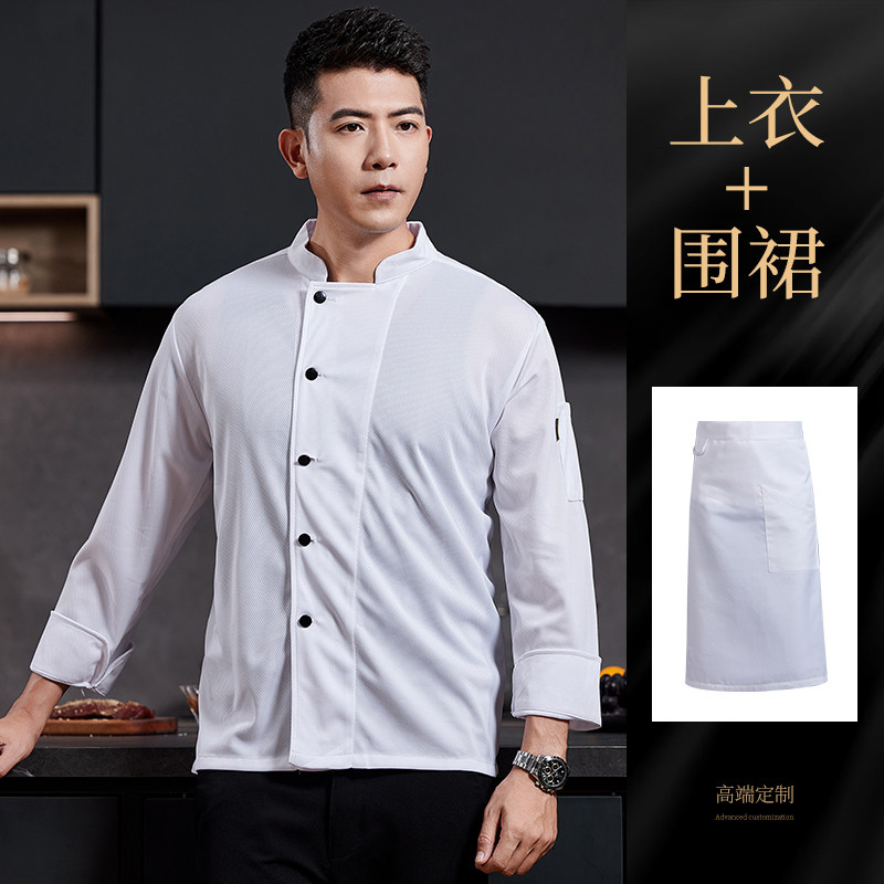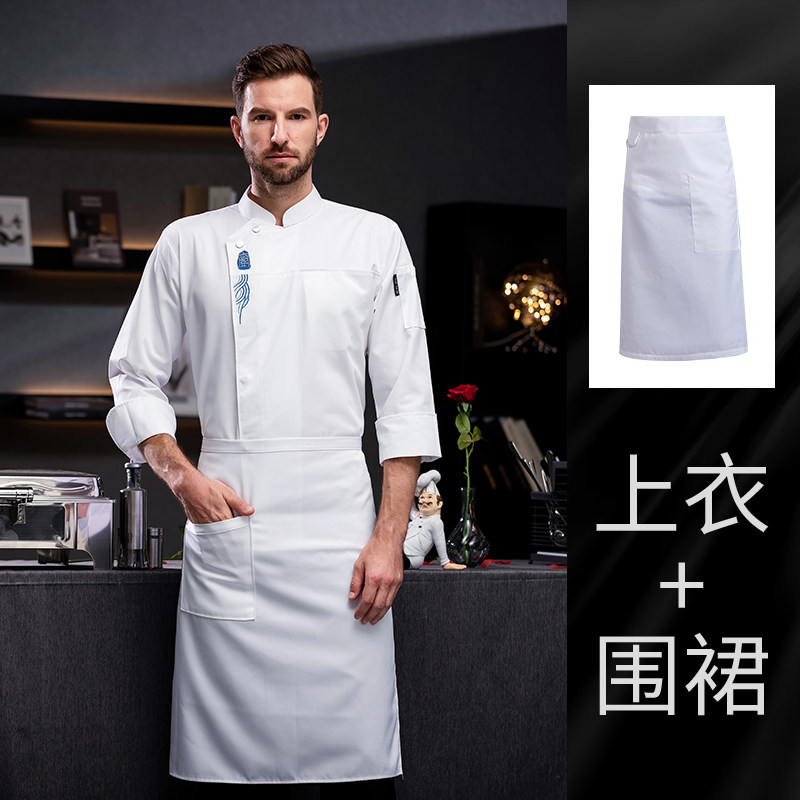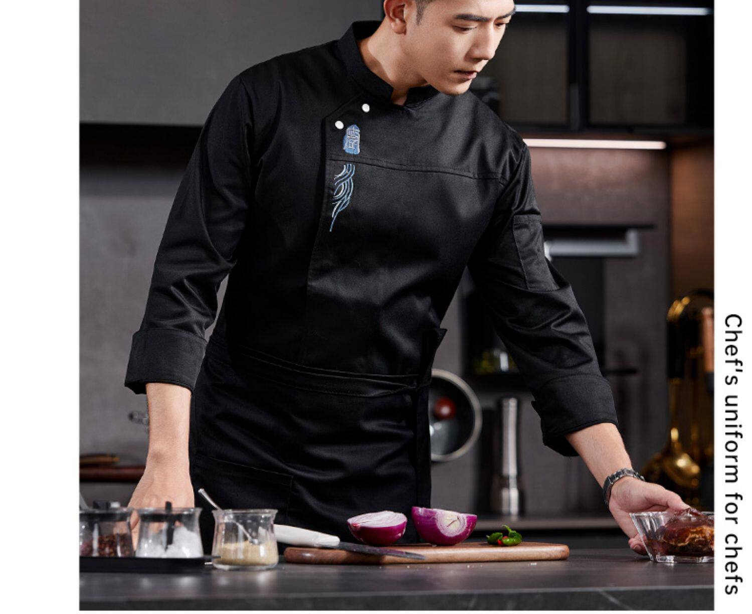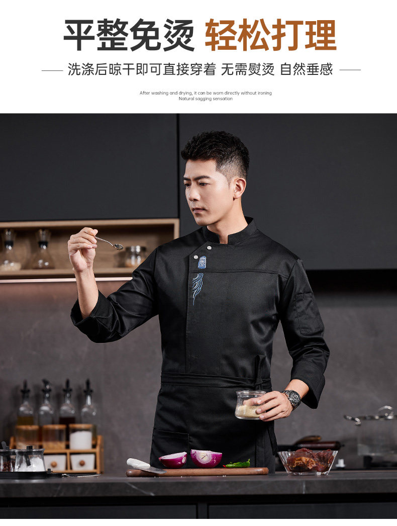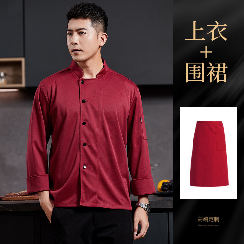 中式厨师工作服秋冬装长袖餐饮酒店快餐饭店后厨房灰色短袖衣服男