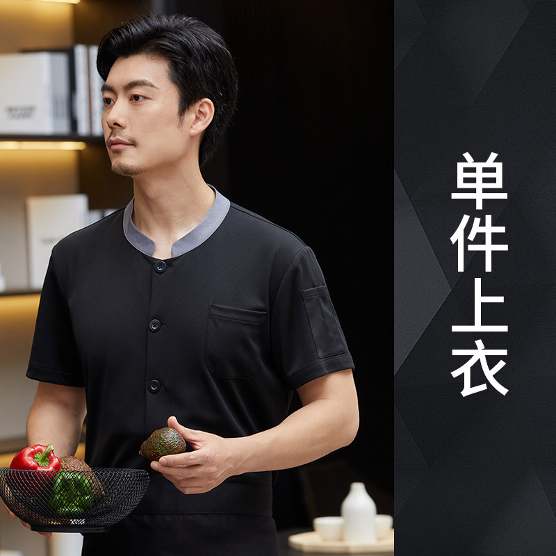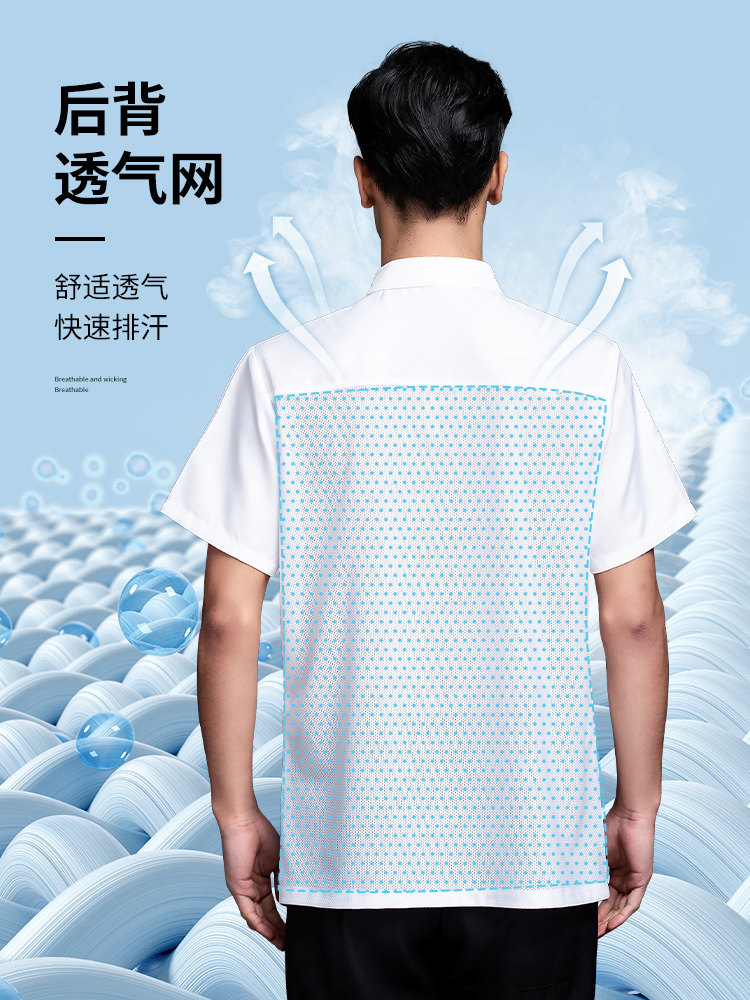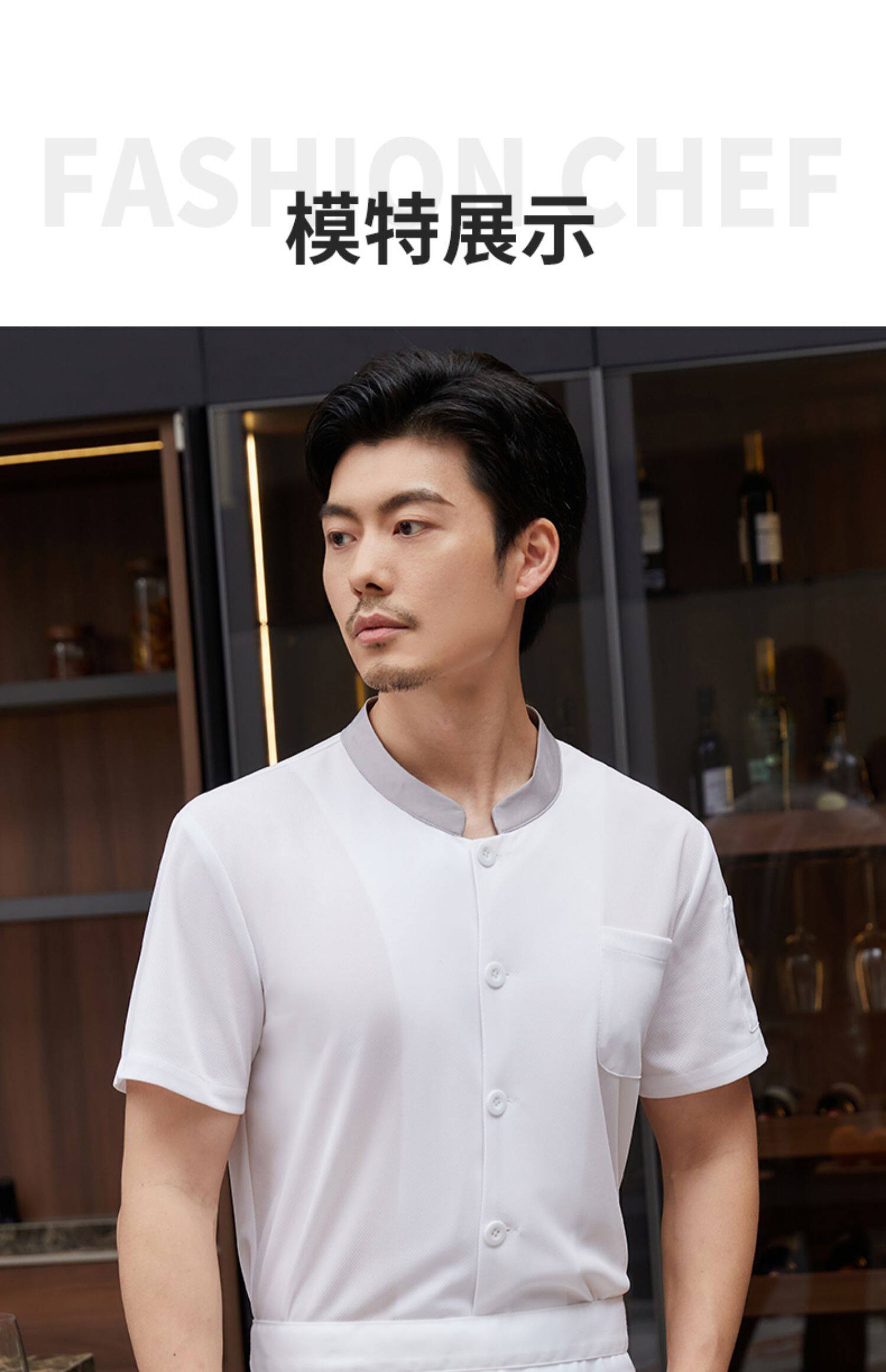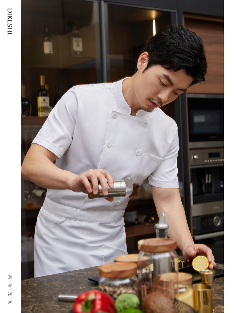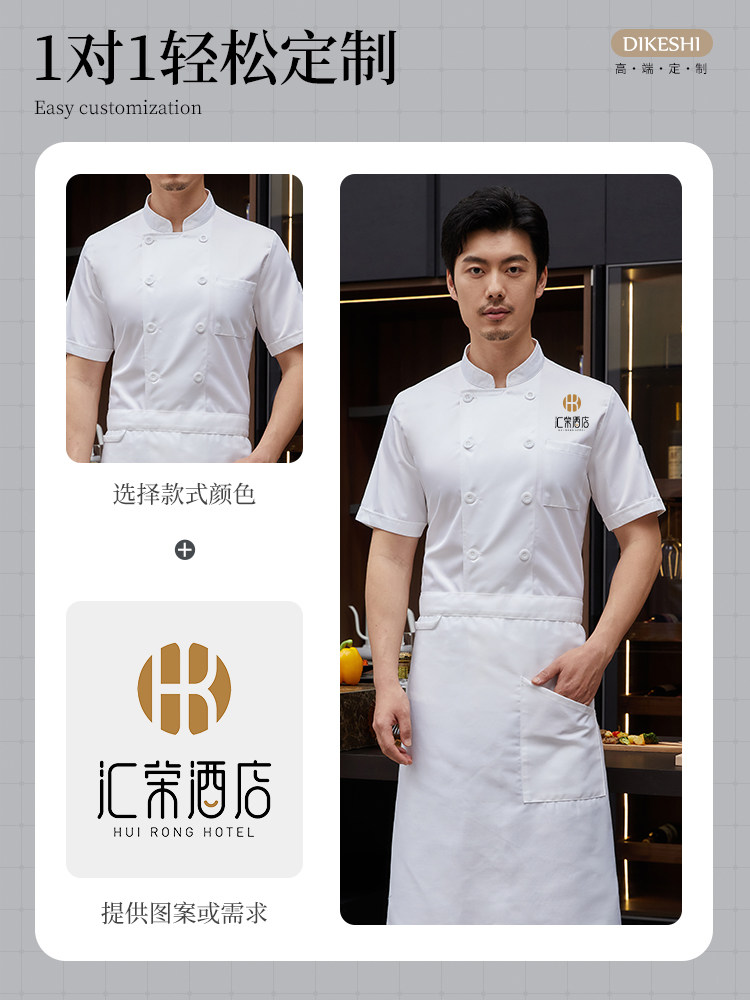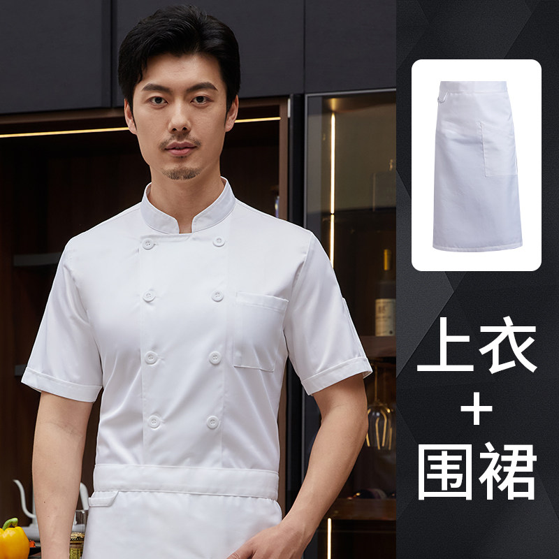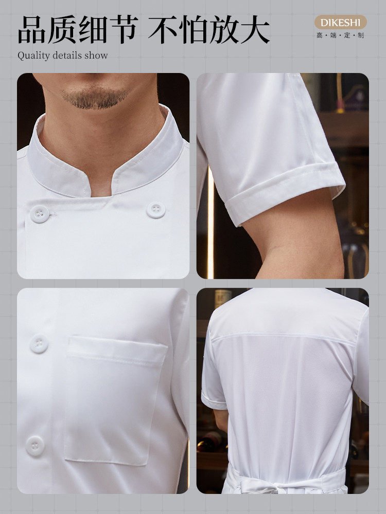白色厨师工作服短袖男夏季薄款透气酒店饭店厨房服装大码定制套装