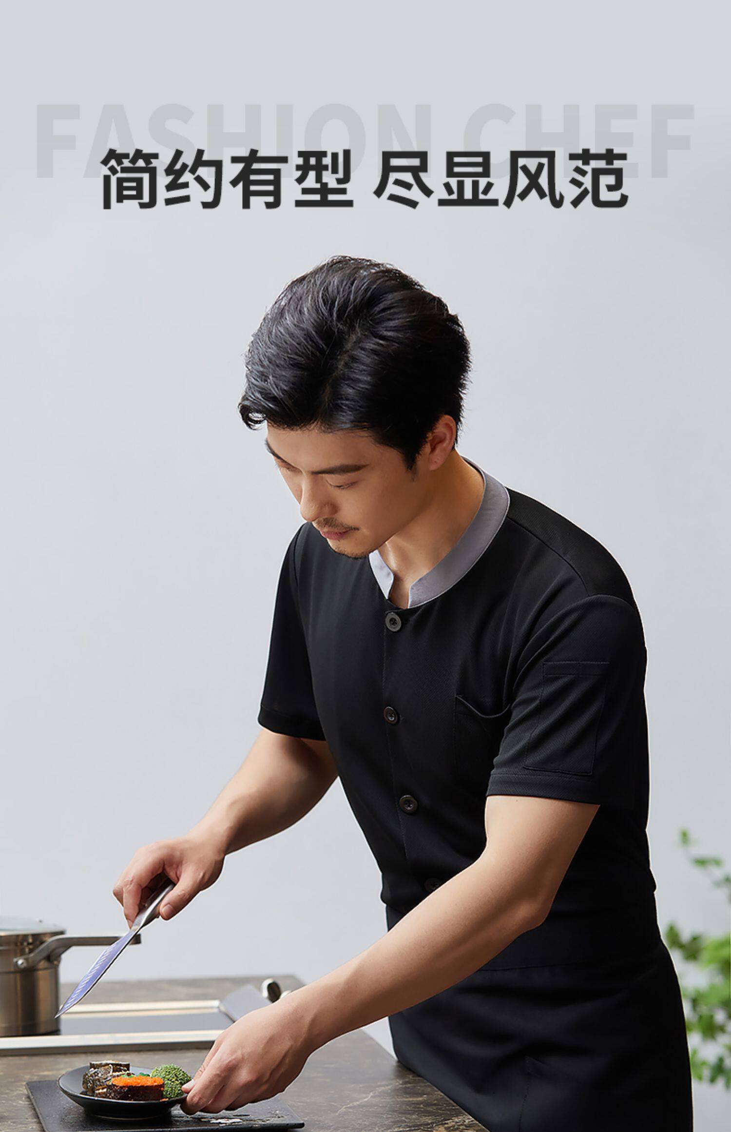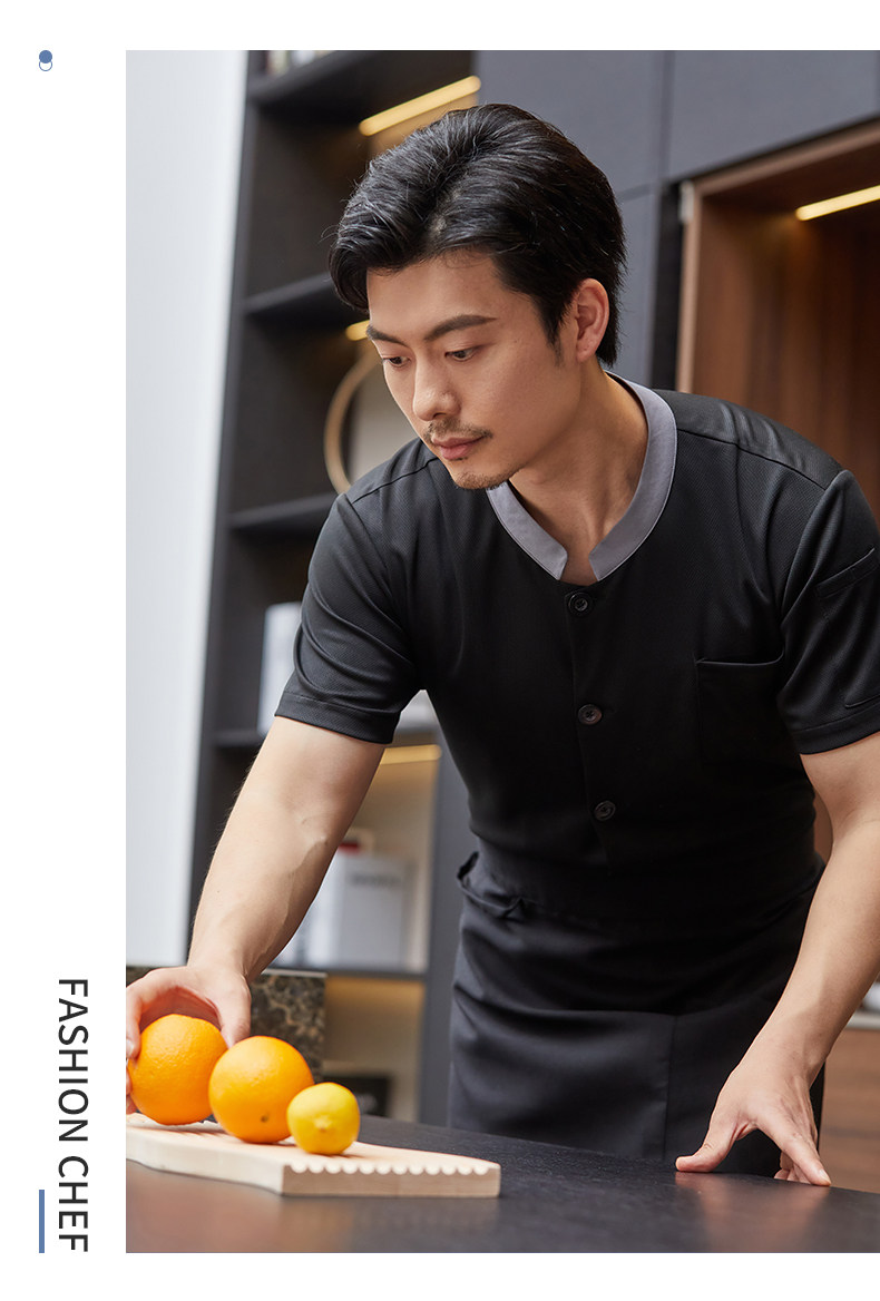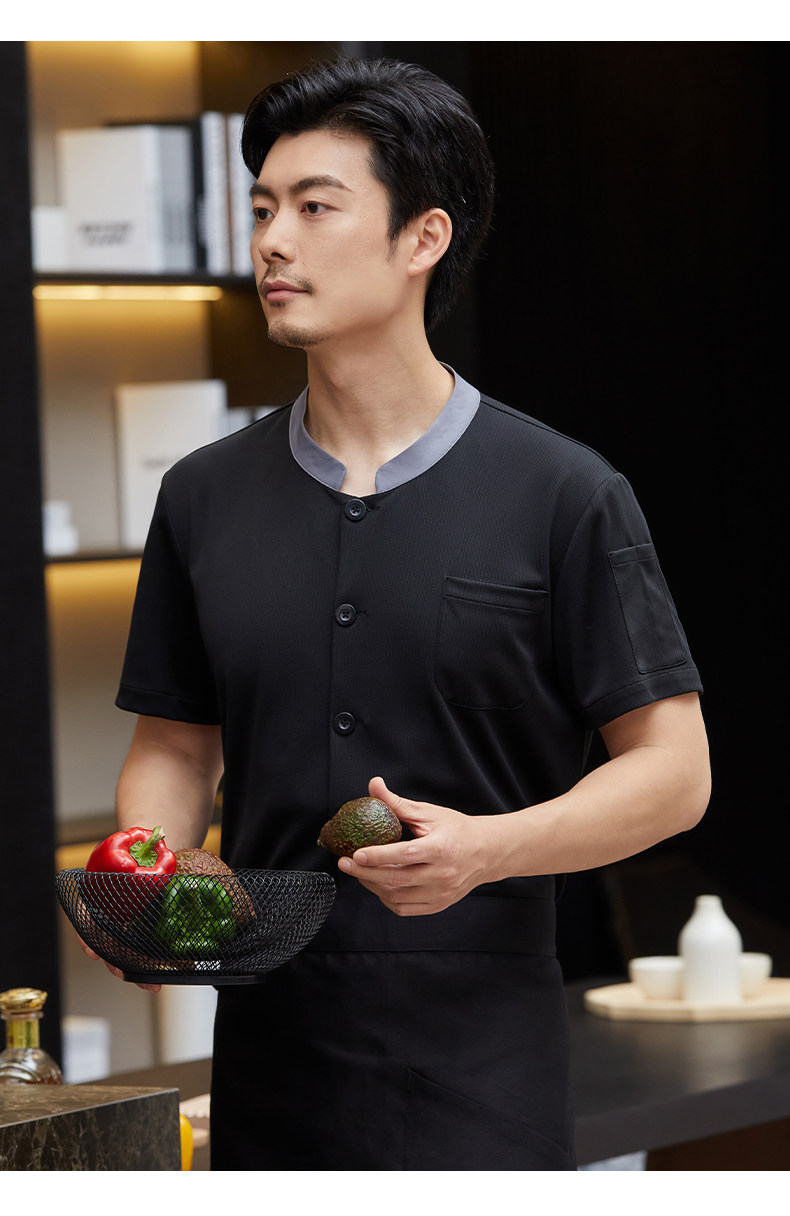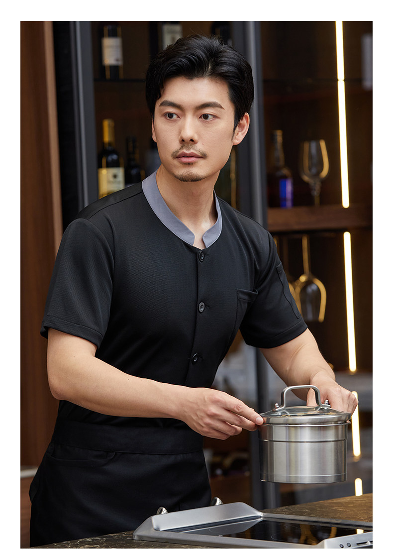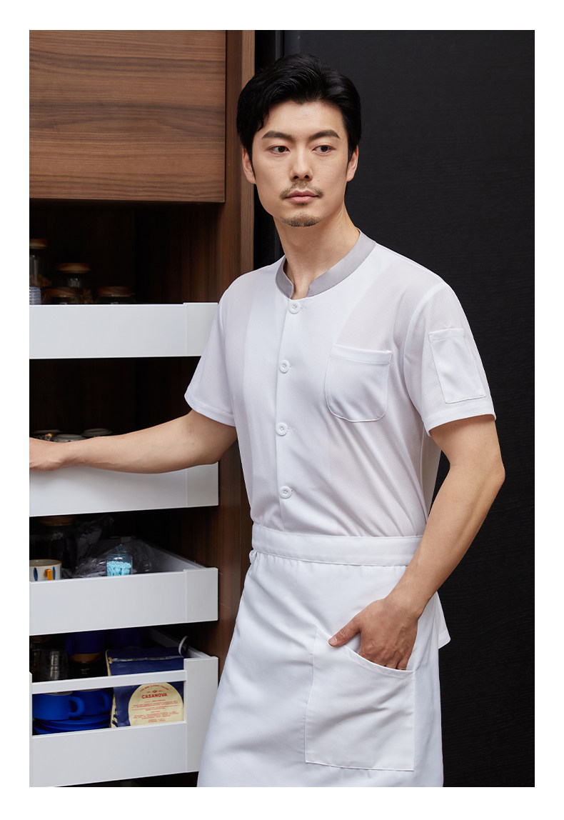 白色厨师工作服短袖男夏季薄款透气酒店饭店厨房服装大码定制套装