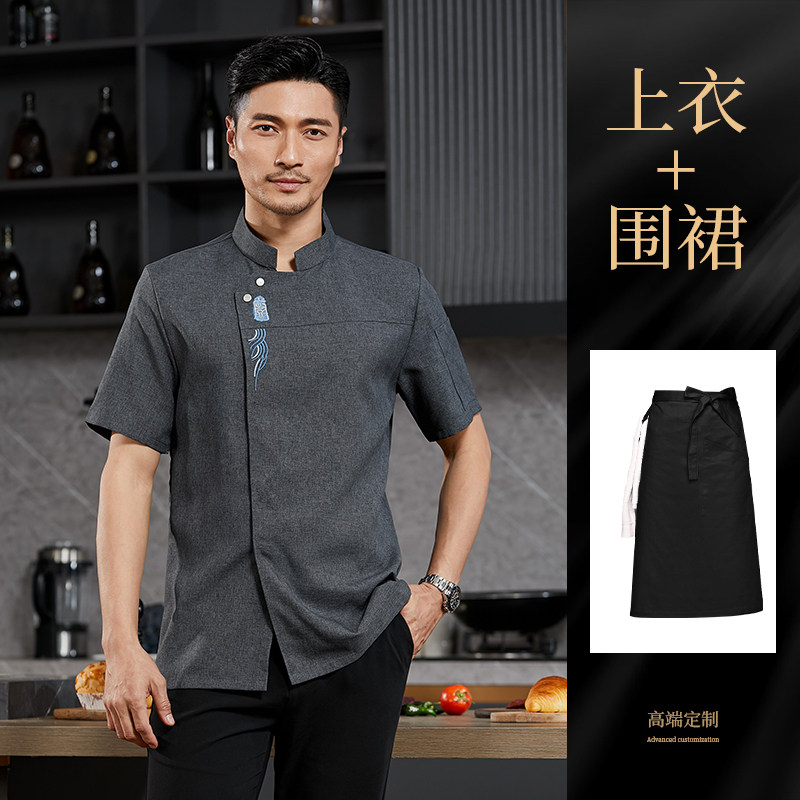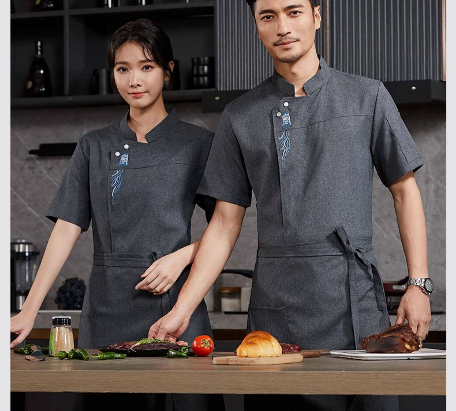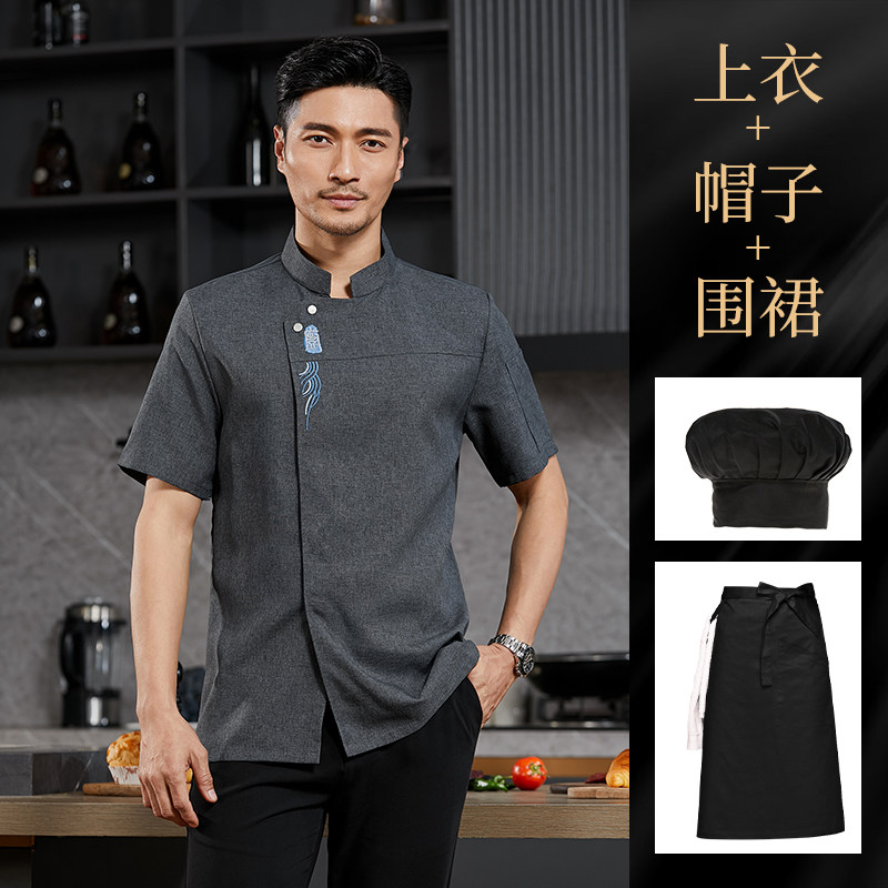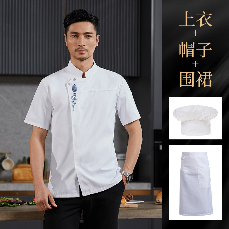 夏季新式厨师工作服短袖薄款透气网星级酒店餐饮饭店后厨厨房工衣