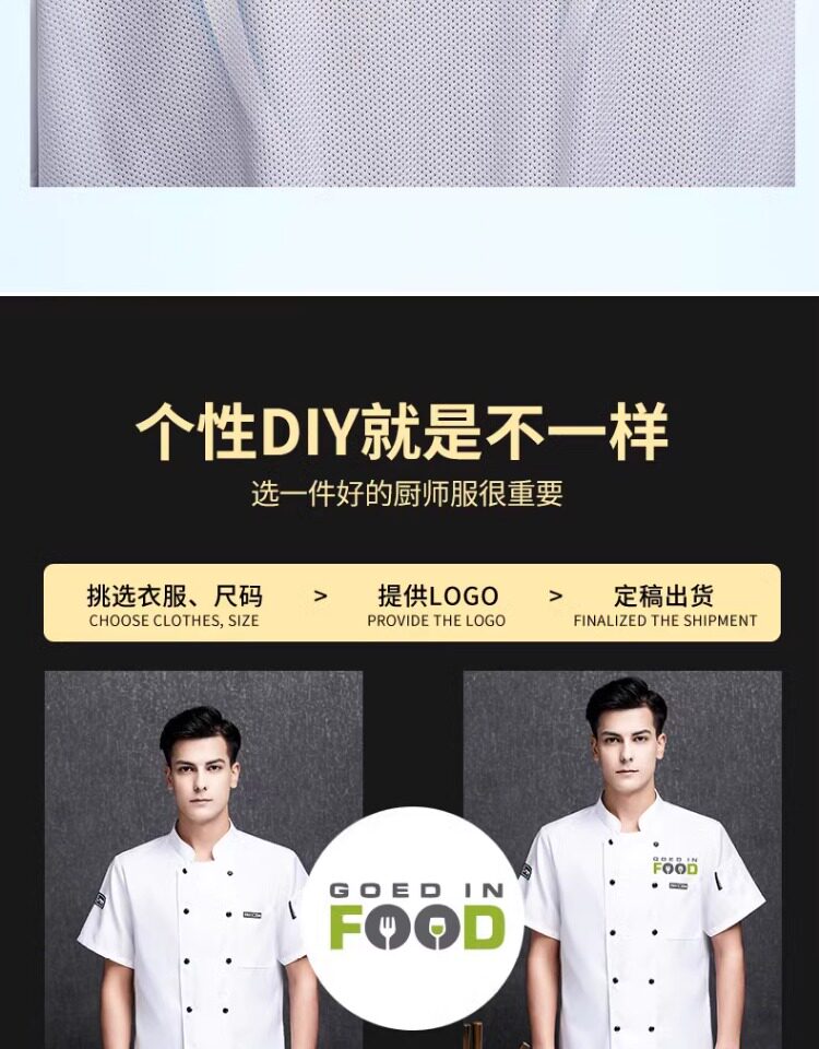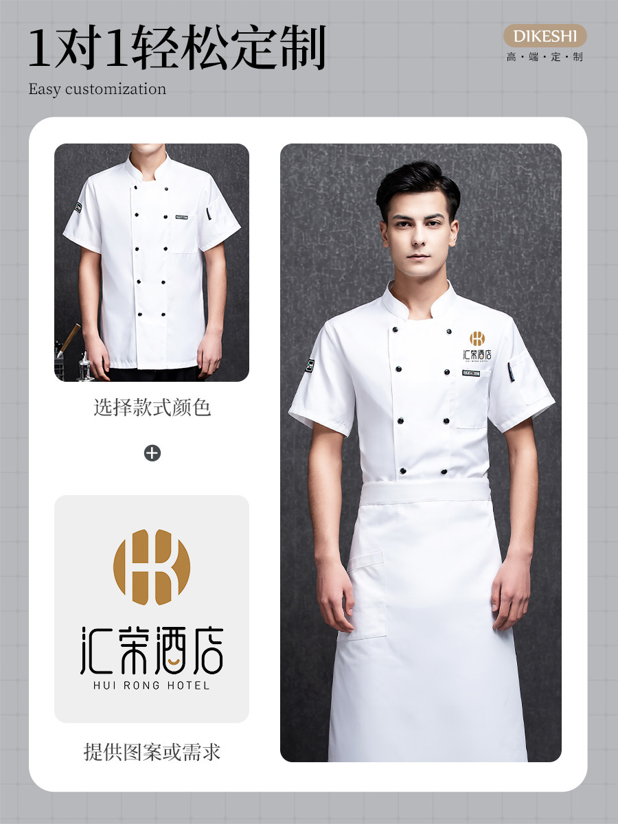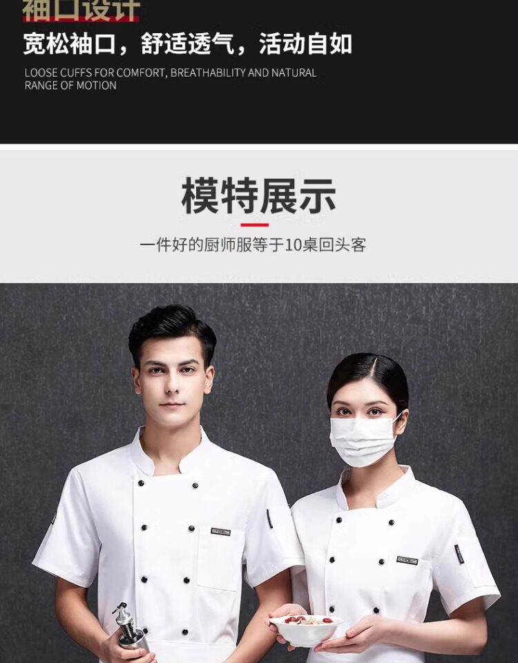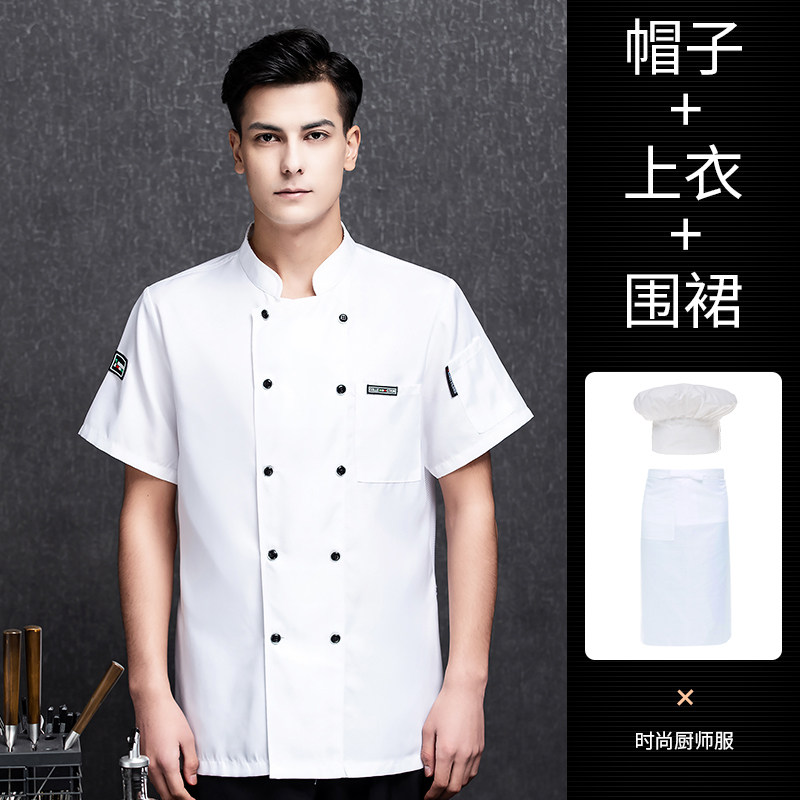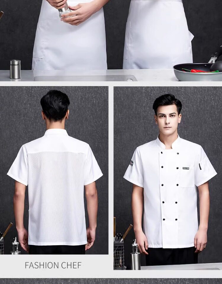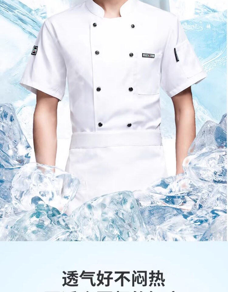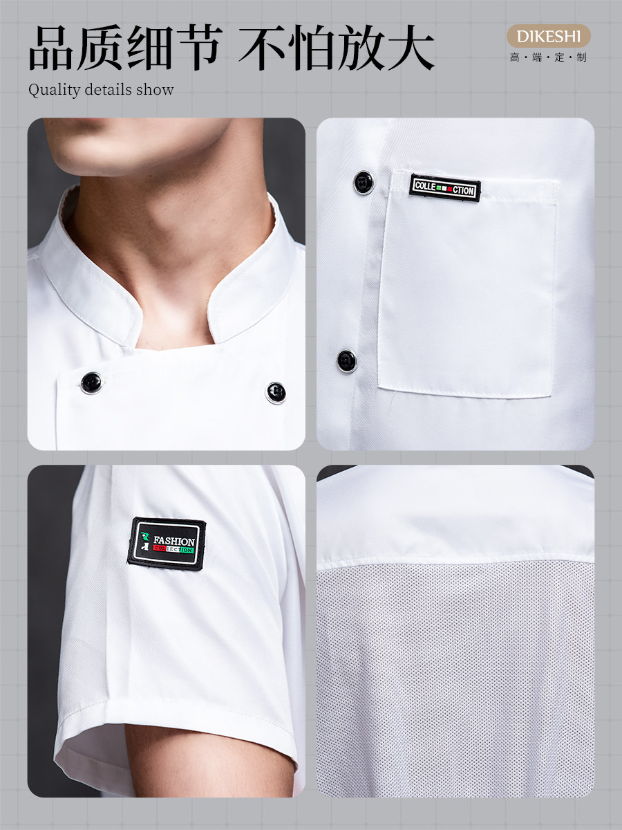 白色厨师工作服短袖夏季透气网厨房后厨衣服饭店食堂餐饮工装定制