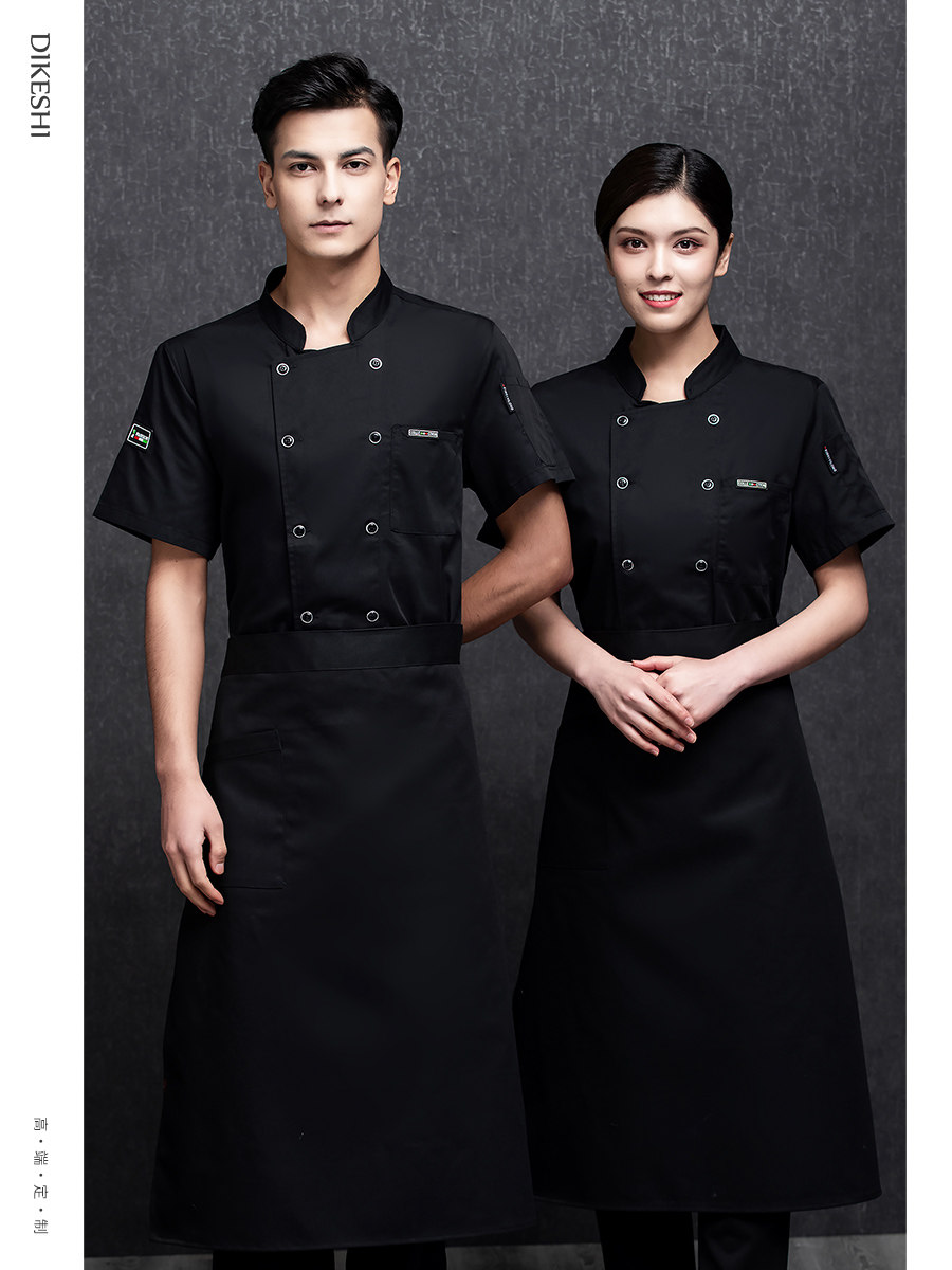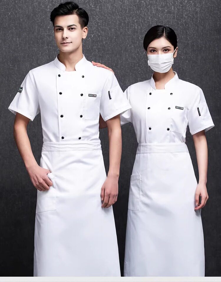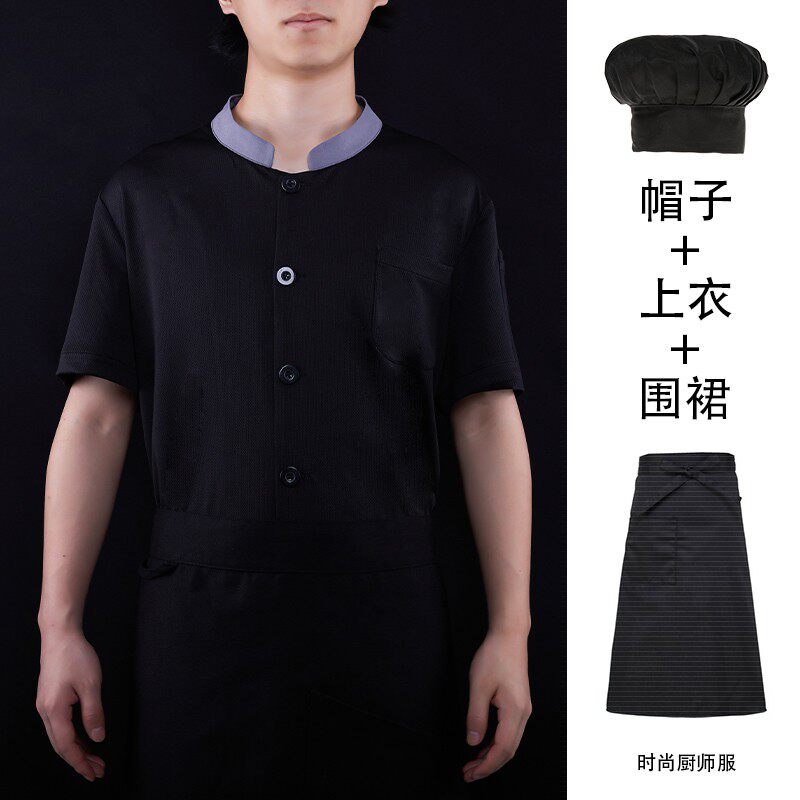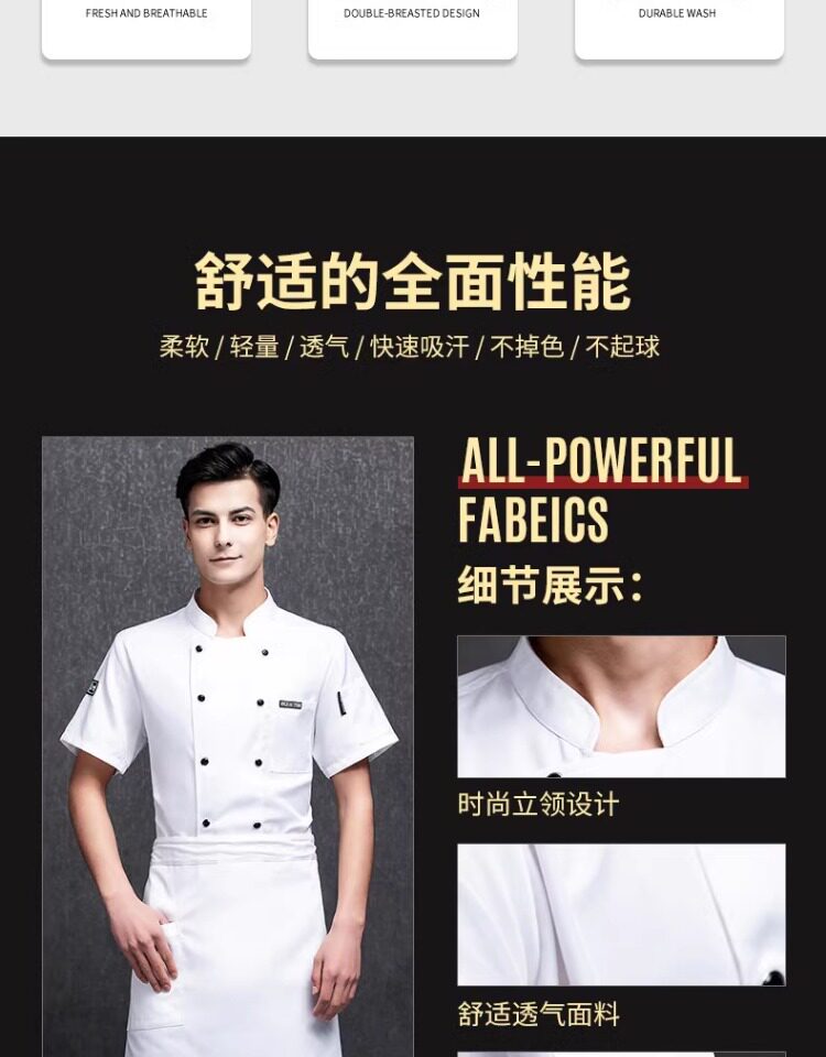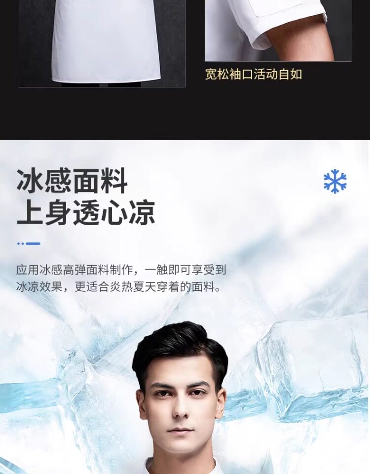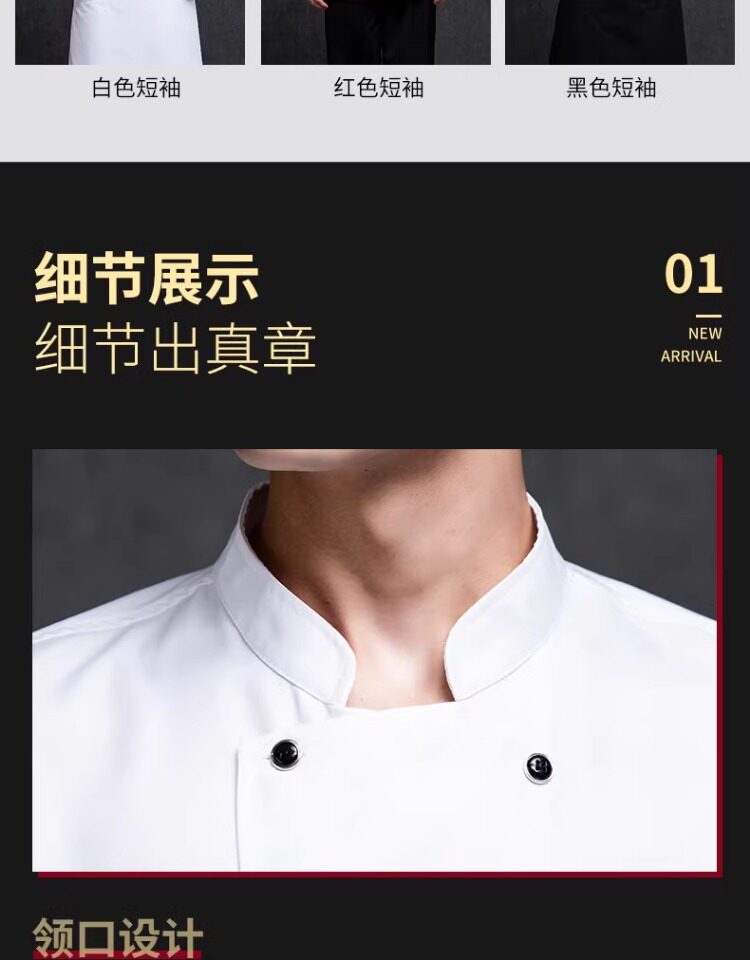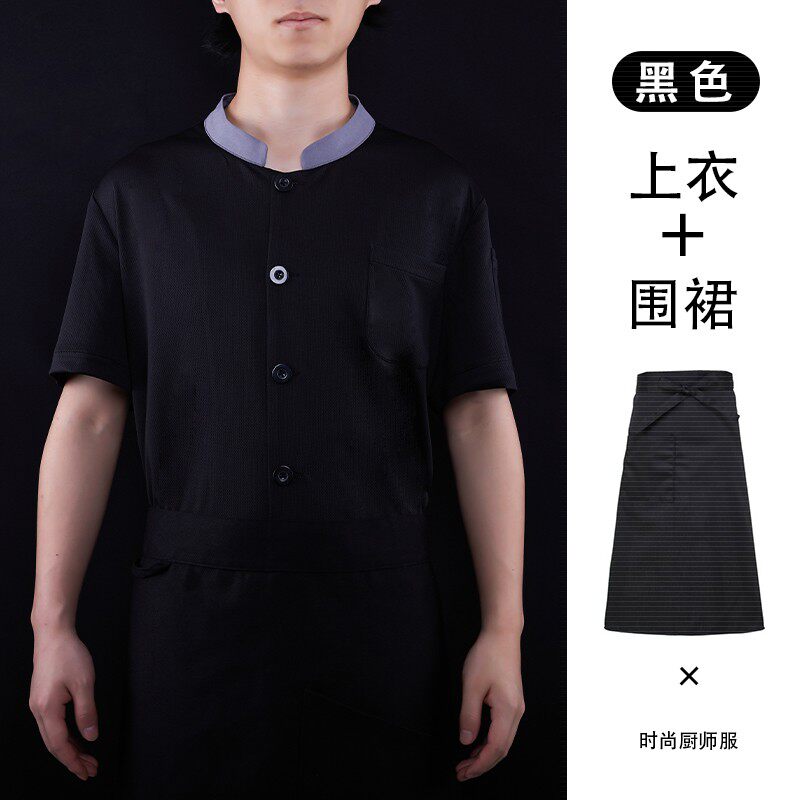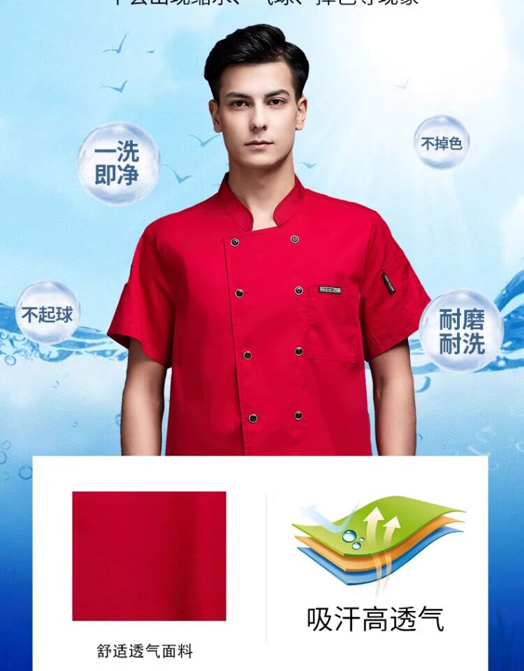 白色厨师工作服短袖夏季透气网厨房后厨衣服饭店食堂餐饮工装定制