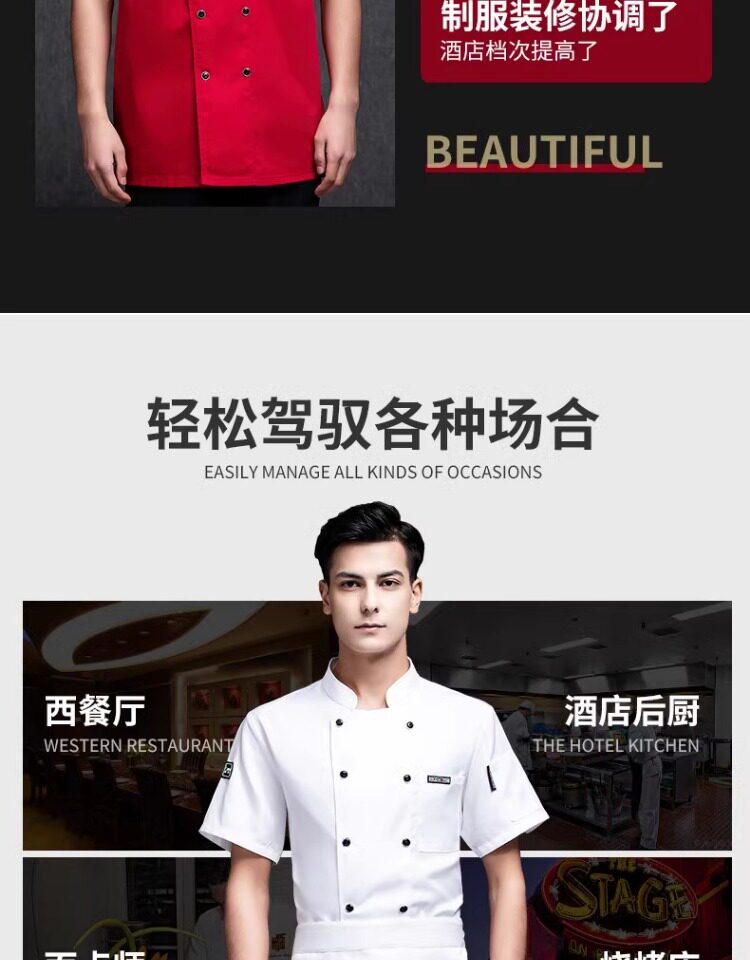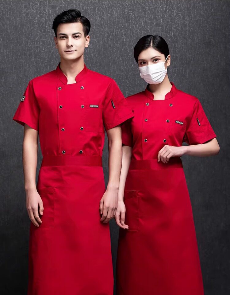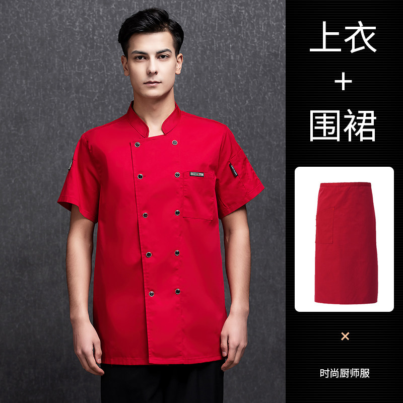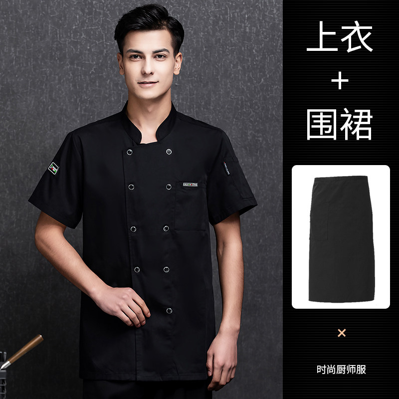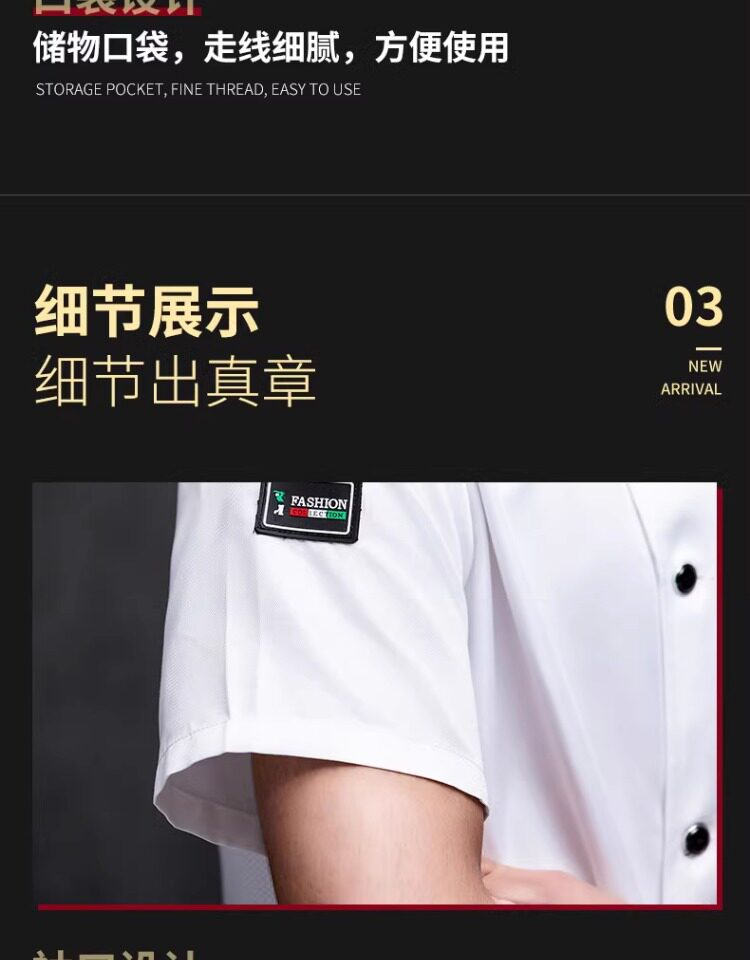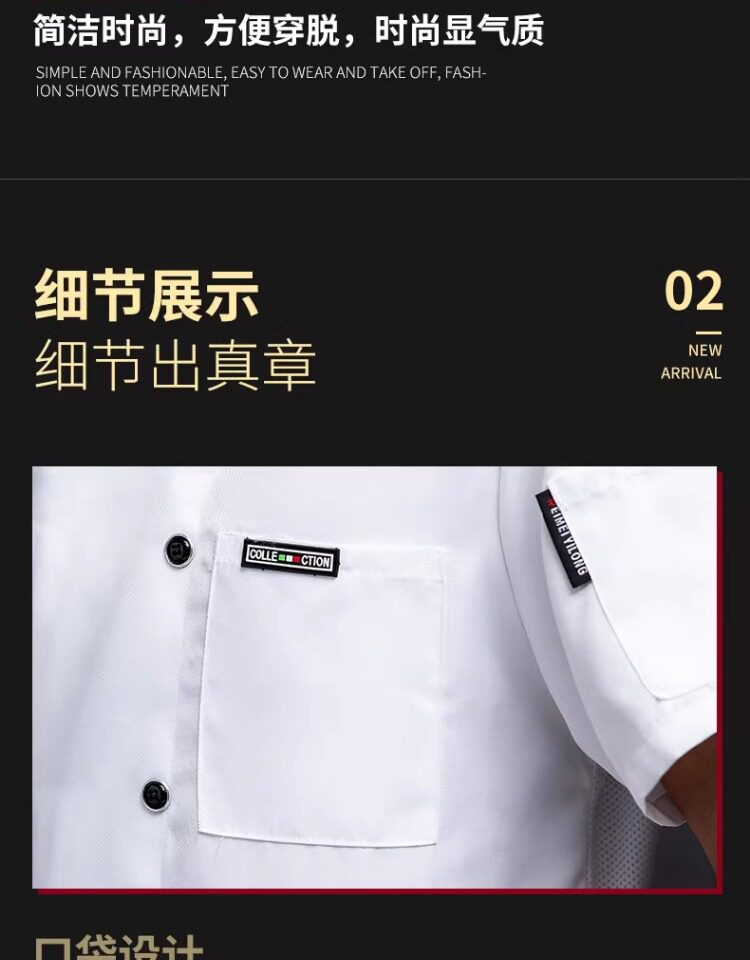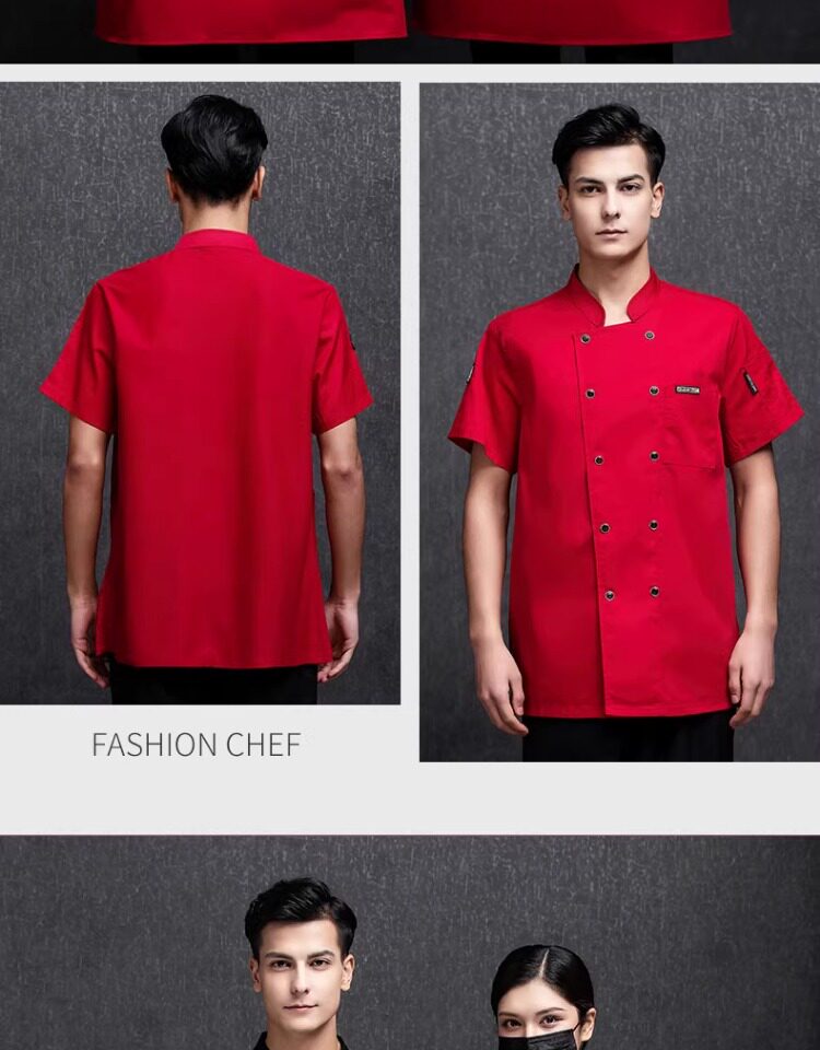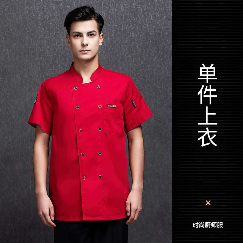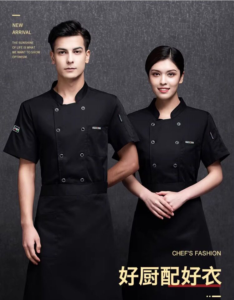 白色厨师工作服短袖夏季透气网厨房后厨衣服饭店食堂餐饮工装定制