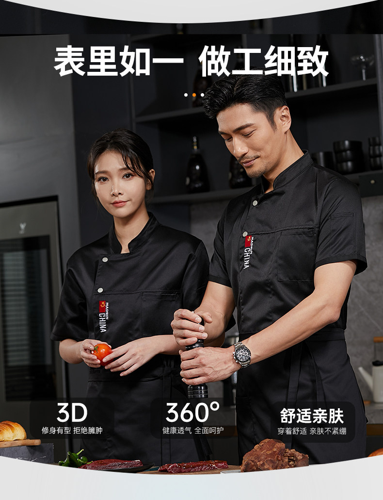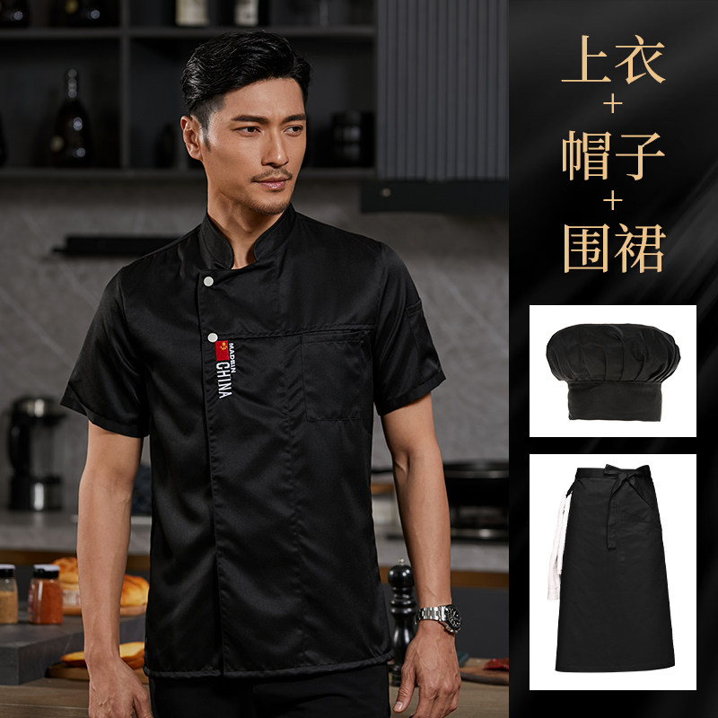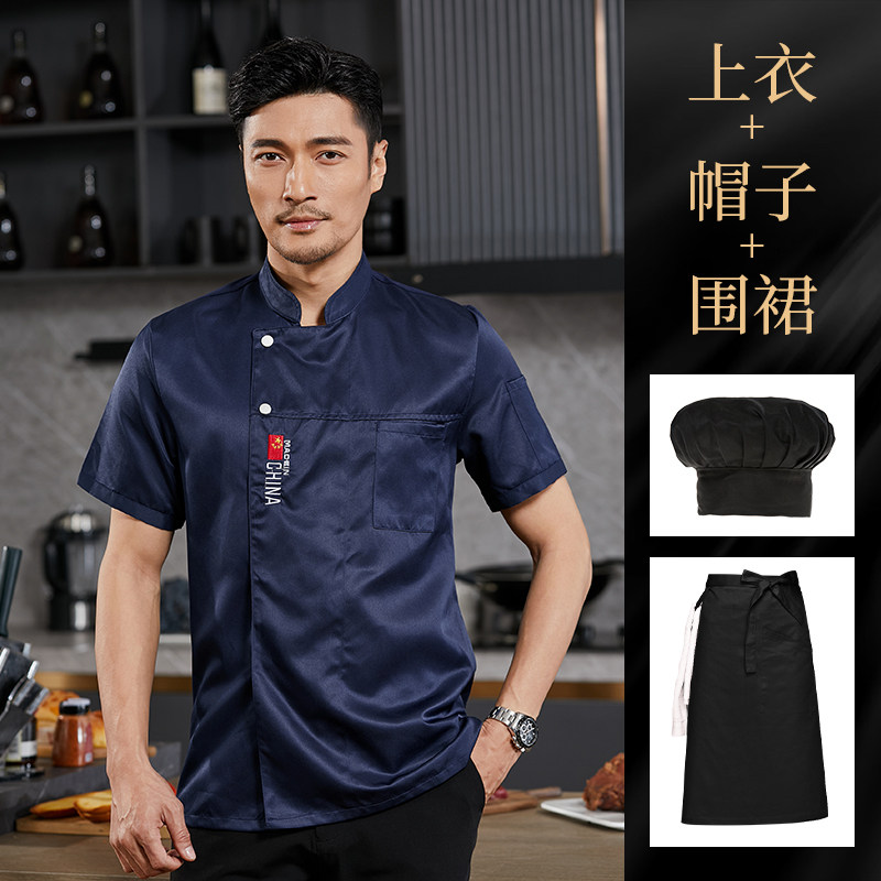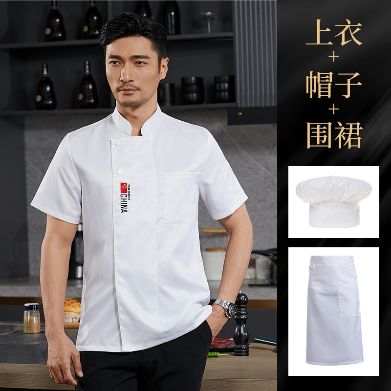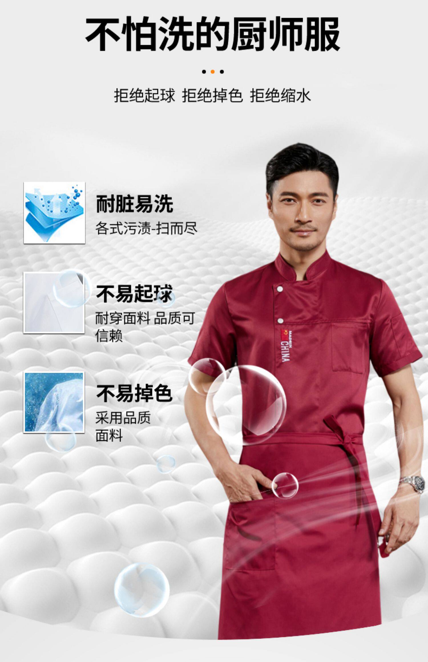 冰丝厨师工作服短袖夏季餐饮中餐厅酒店厨房后厨薄款透气衣服套装