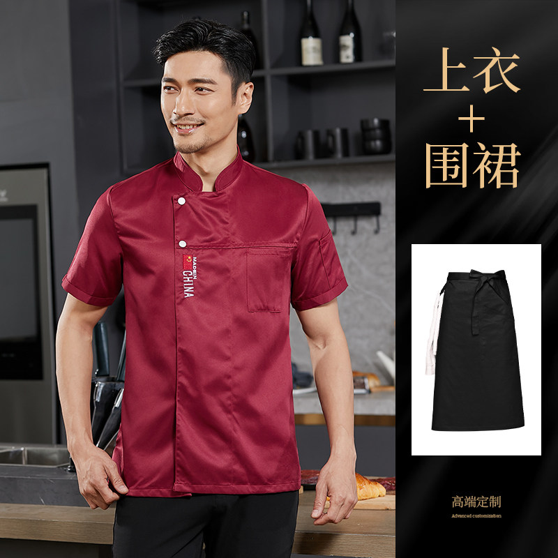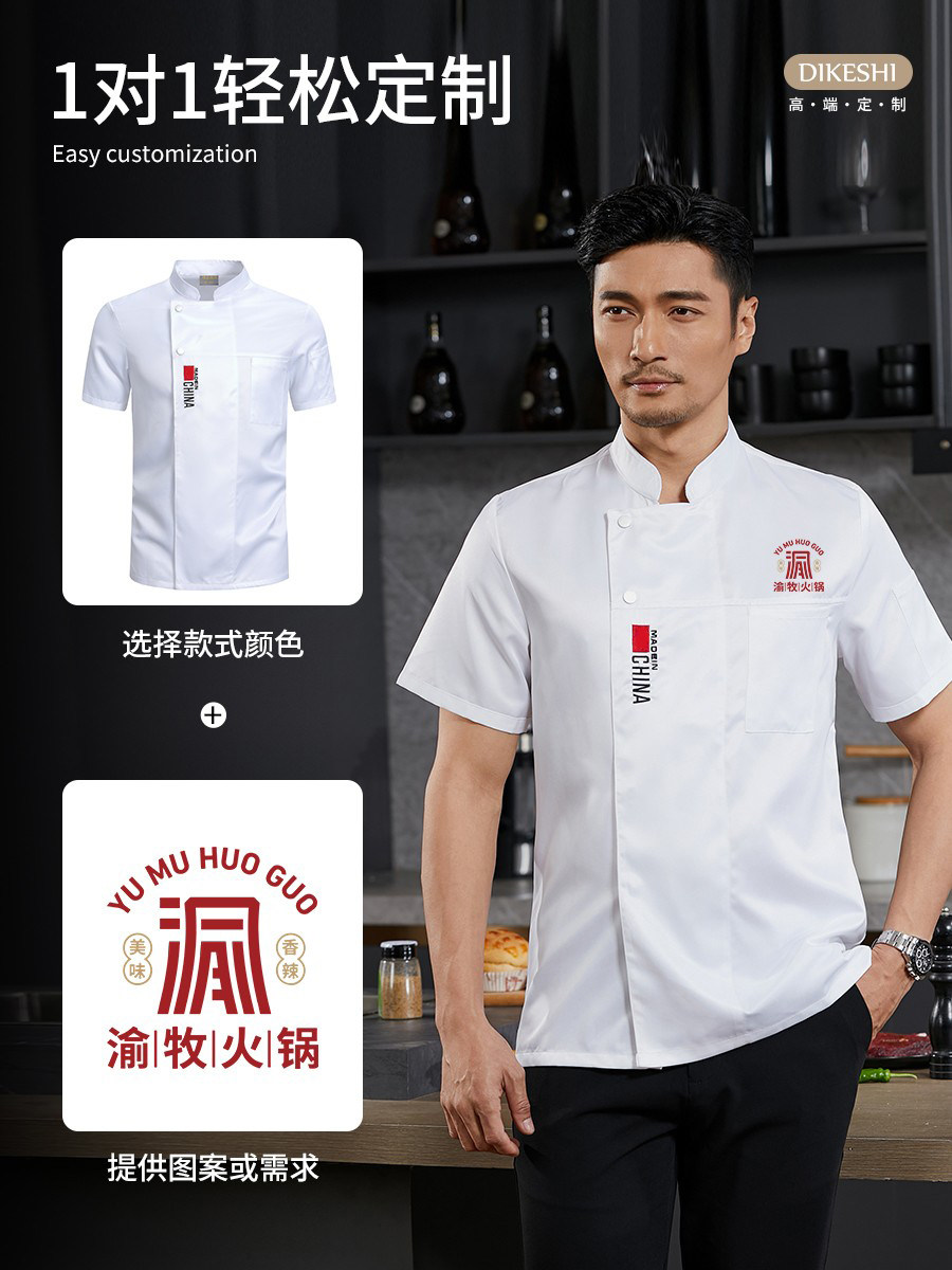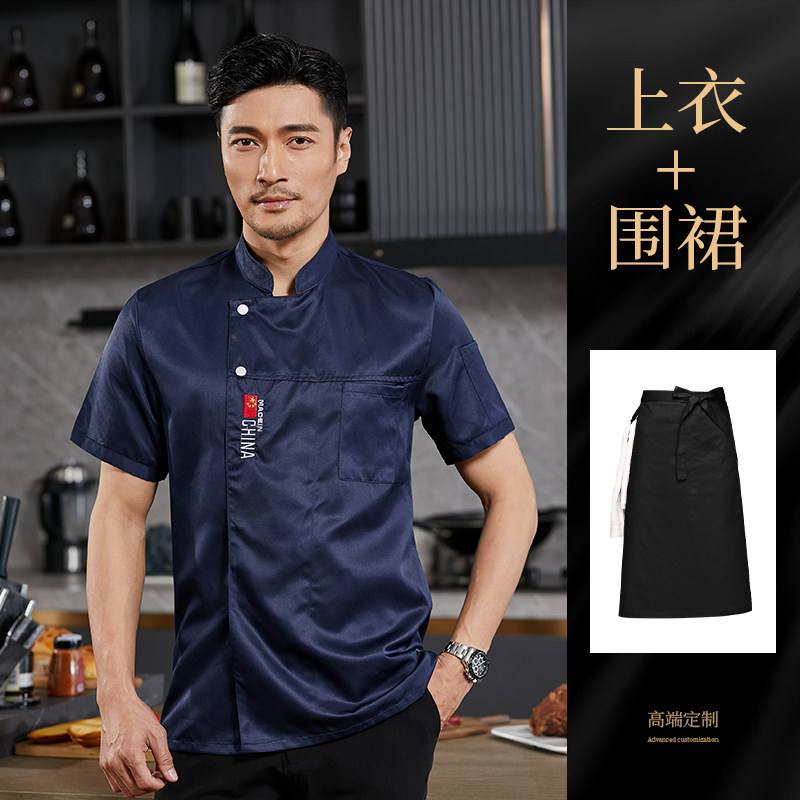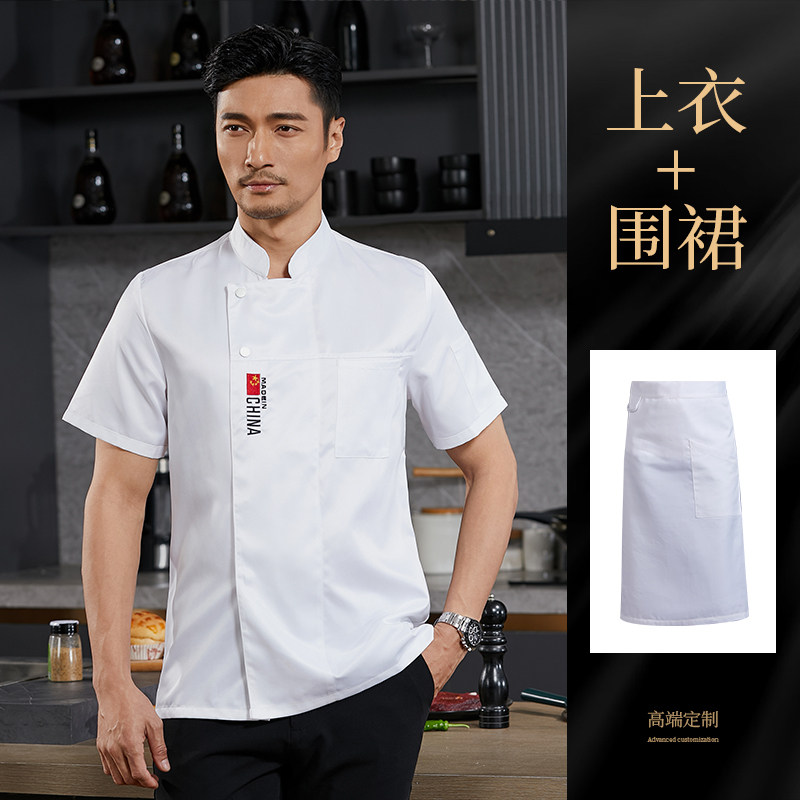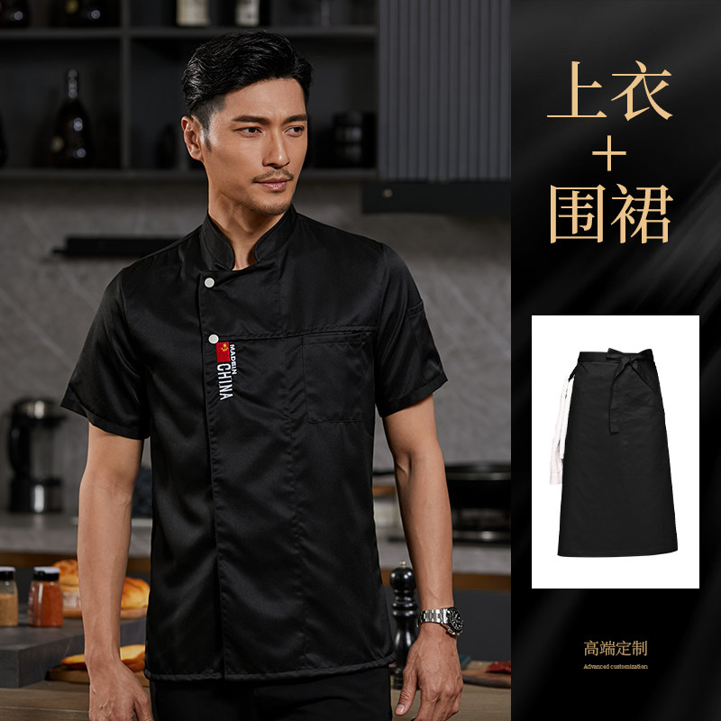冰丝厨师工作服短袖夏季餐饮中餐厅酒店厨房后厨薄款透气衣服套装