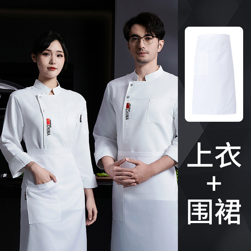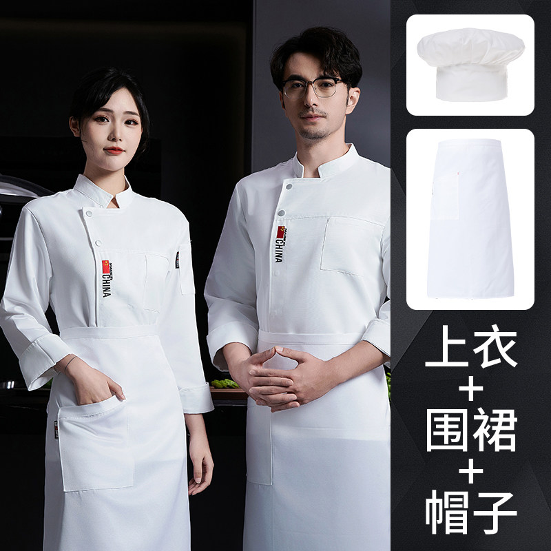 白色厨师工作服长袖秋冬款餐饮酒店饭店食堂后厨房服装男定制套装
