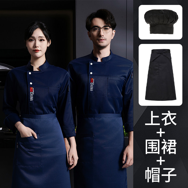 厨师工作服长袖秋冬男餐饮酒店餐厅烧烤火锅店饭店后厨房定制中式