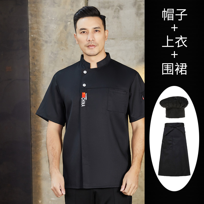高端厨师工作服短袖透气工装男夏季餐饮酒店早点西餐厅后厨房厨衣