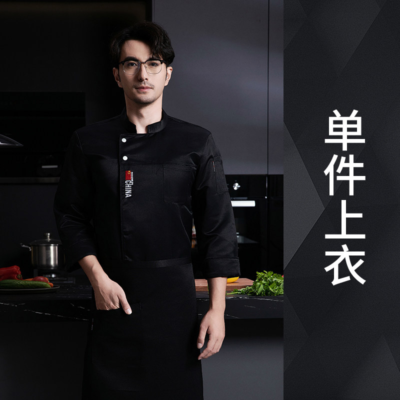 新式厨师工作服秋冬装长袖高端酒店餐饮饭店农家乐厨房短袖衣服男