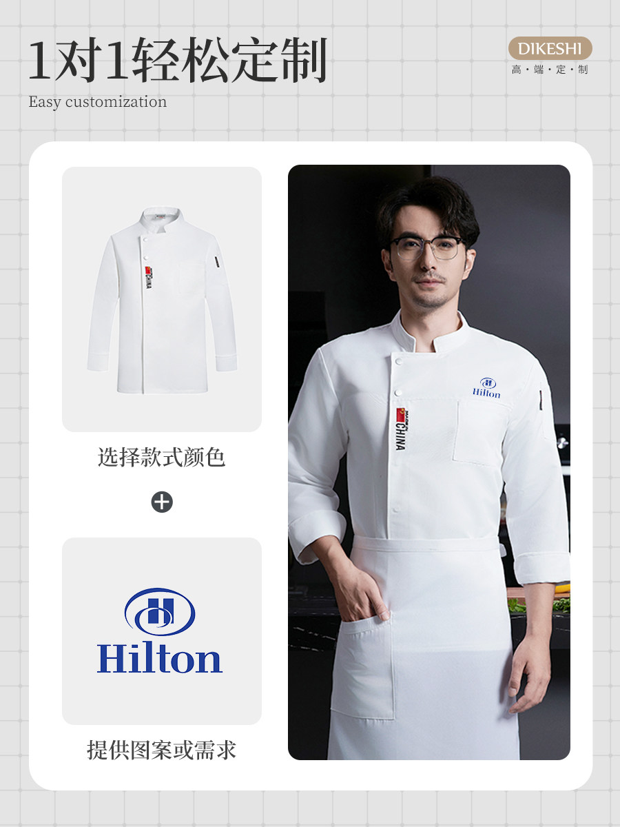 餐饮厨师工作服男长袖短袖透气酒店西式西餐厅烘焙后厨房衣服定制