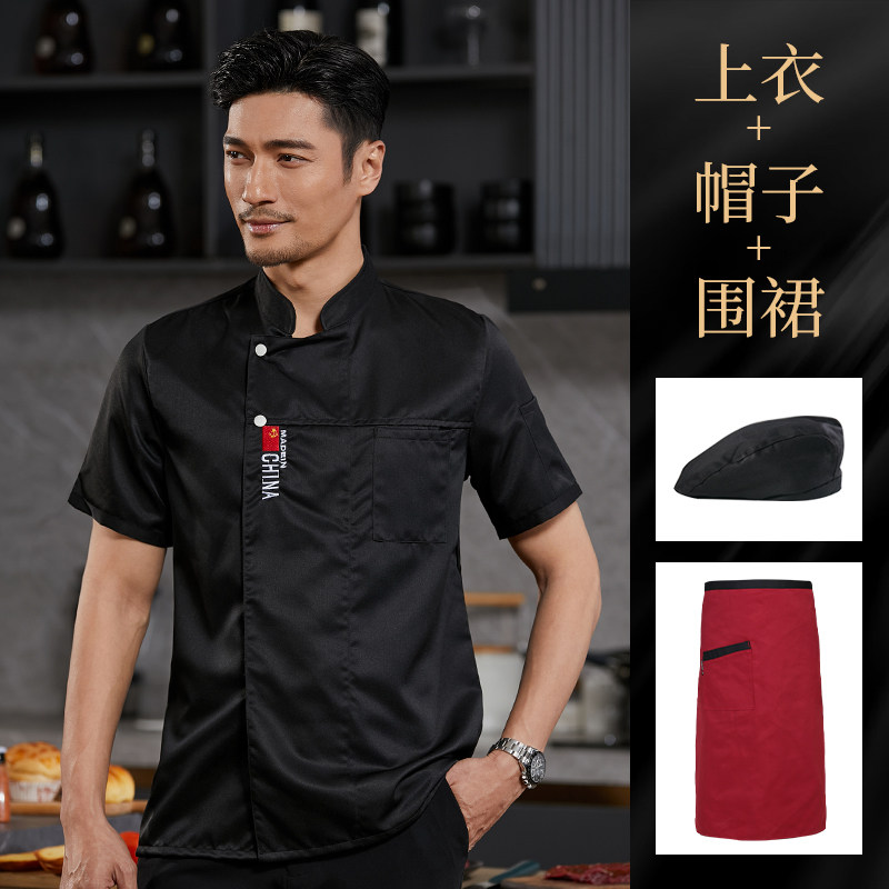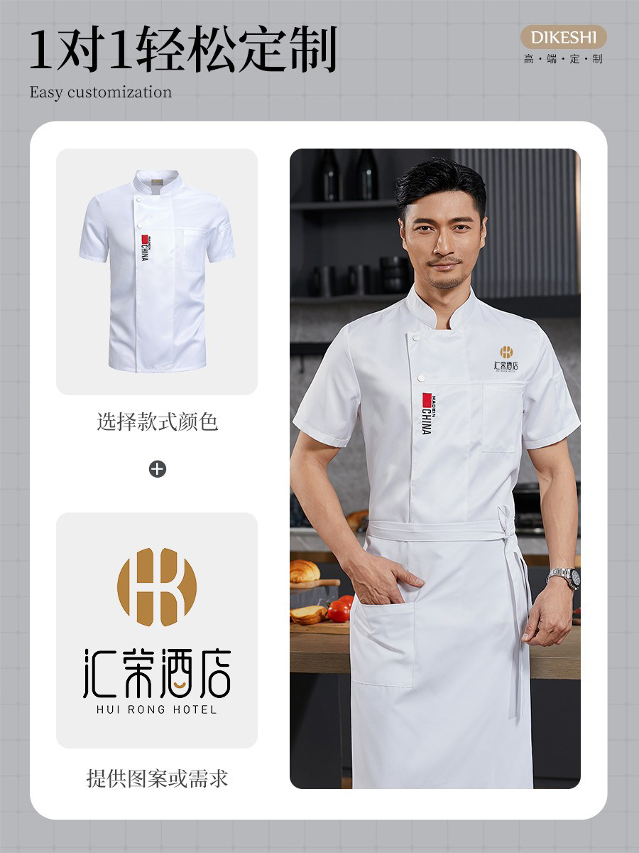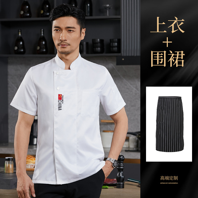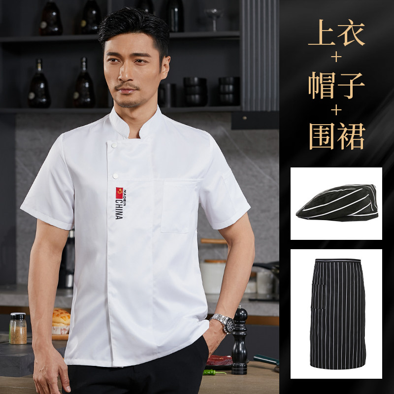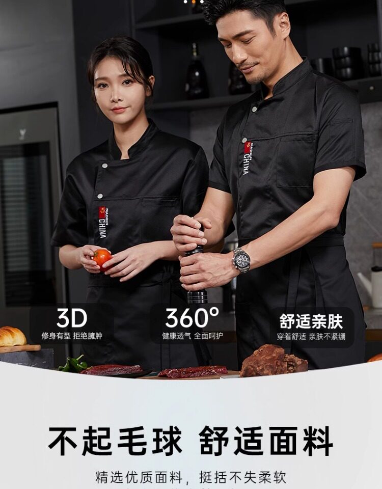 冰丝厨师工作服短袖薄款透气夏季酒店餐厅厨房2024新款厨衣工装男