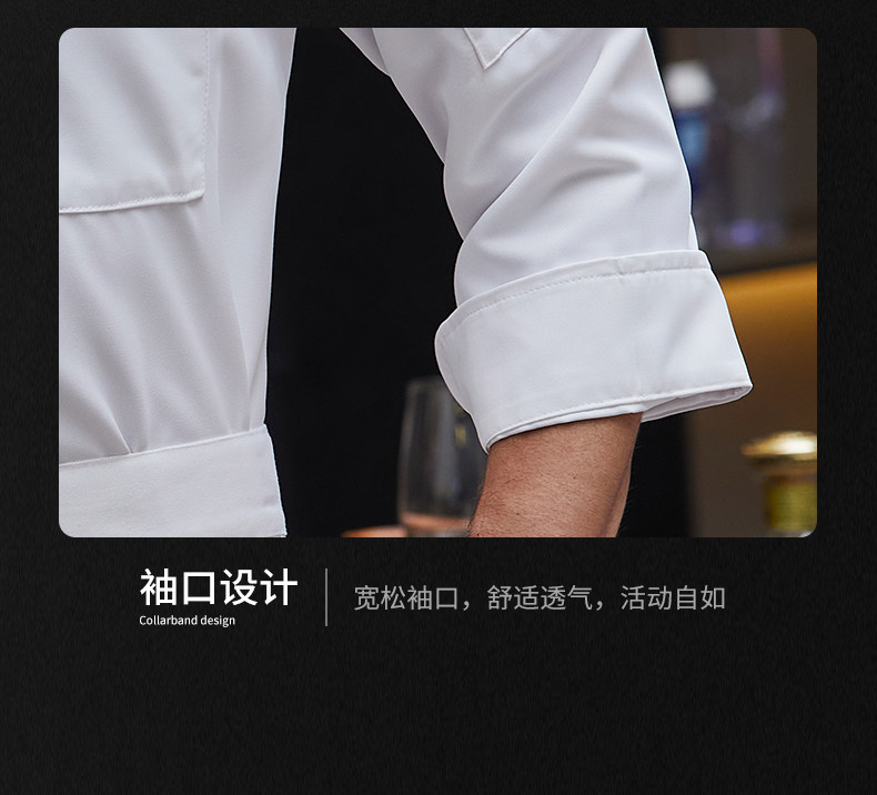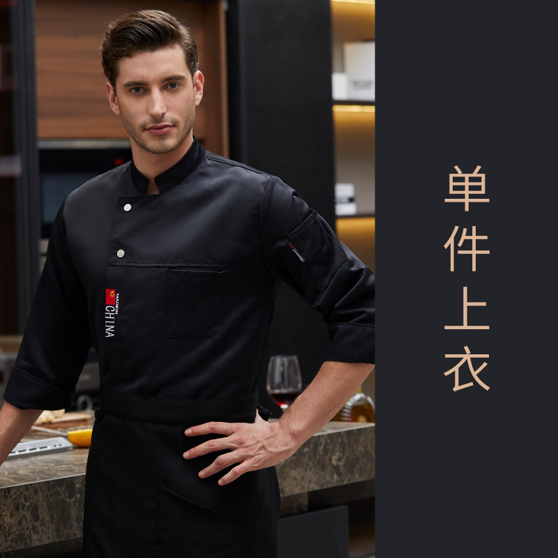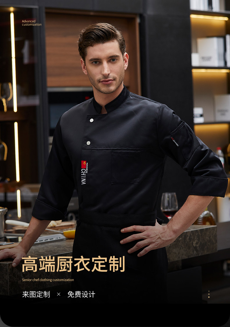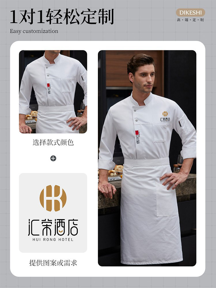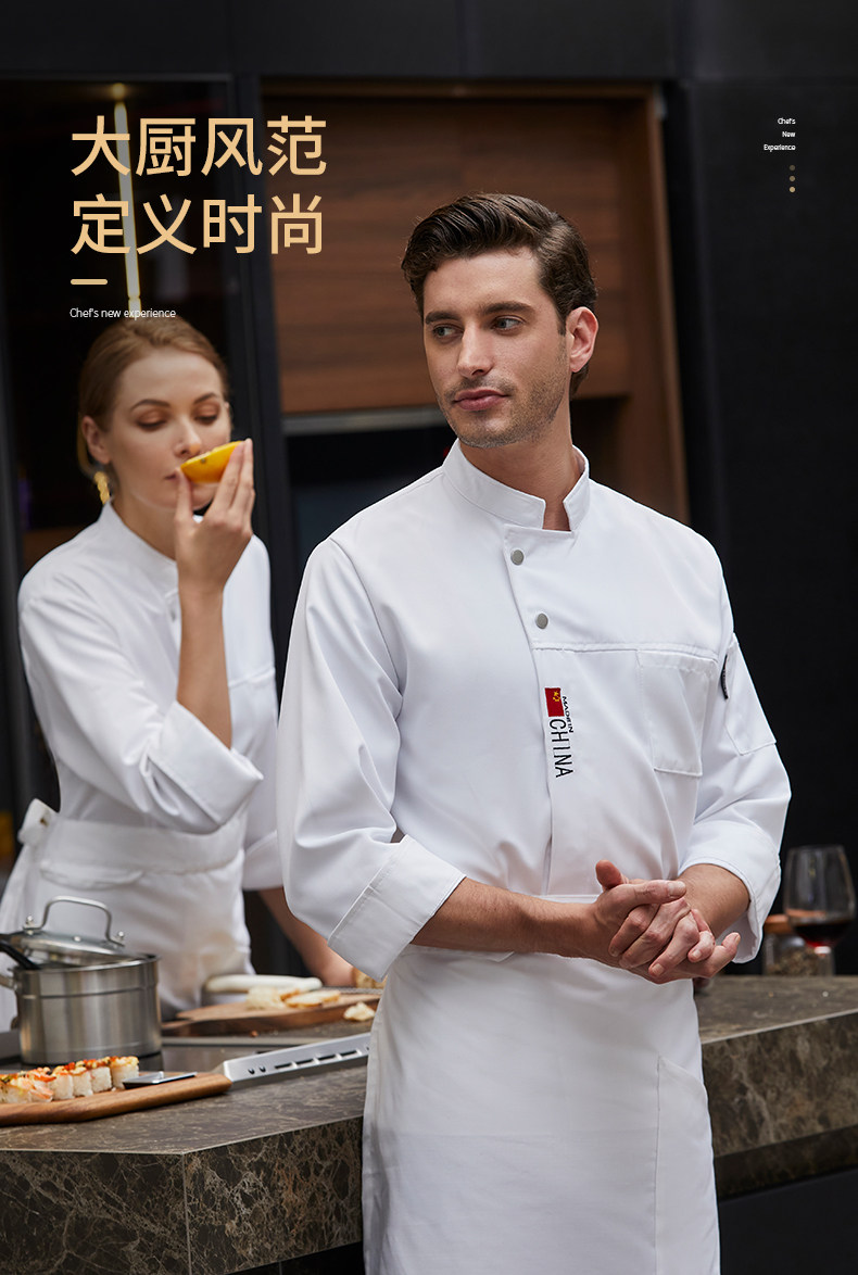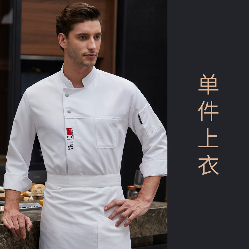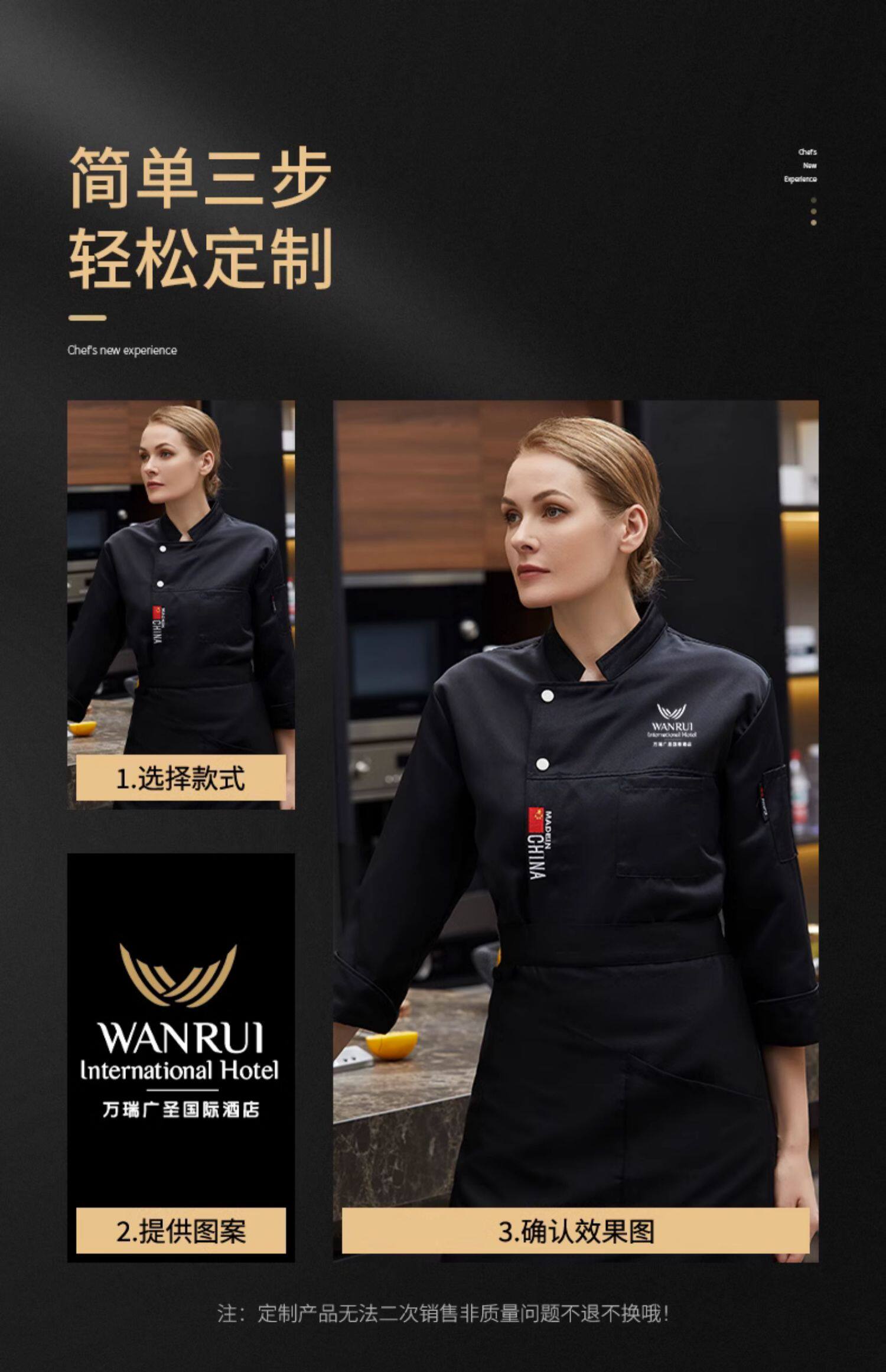 高端厨师工作服男白色长袖酒店西餐厅烘焙餐饮女厨房衣服套装定制