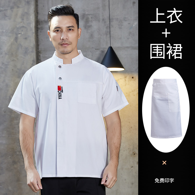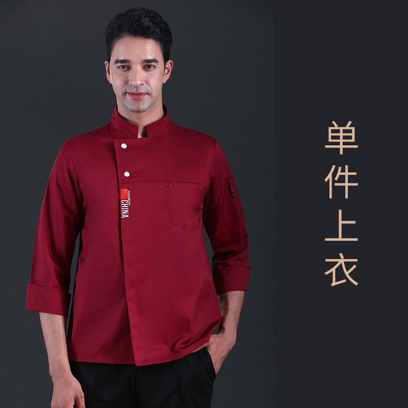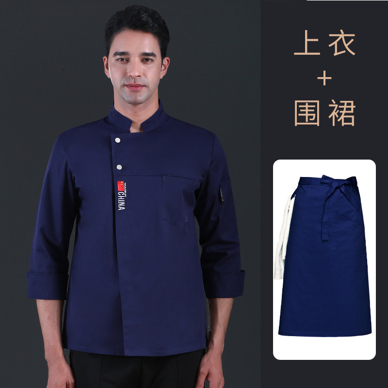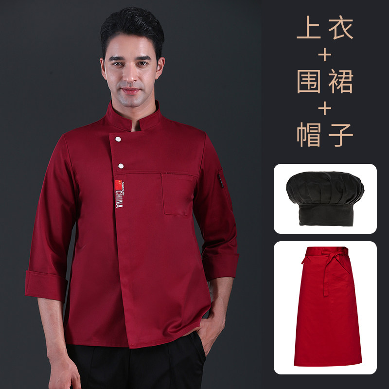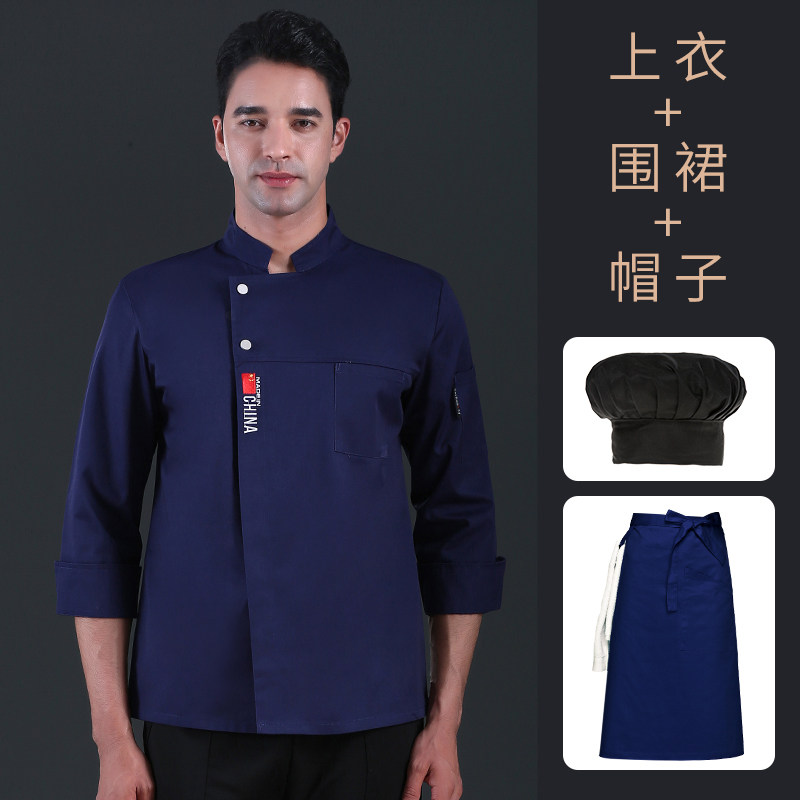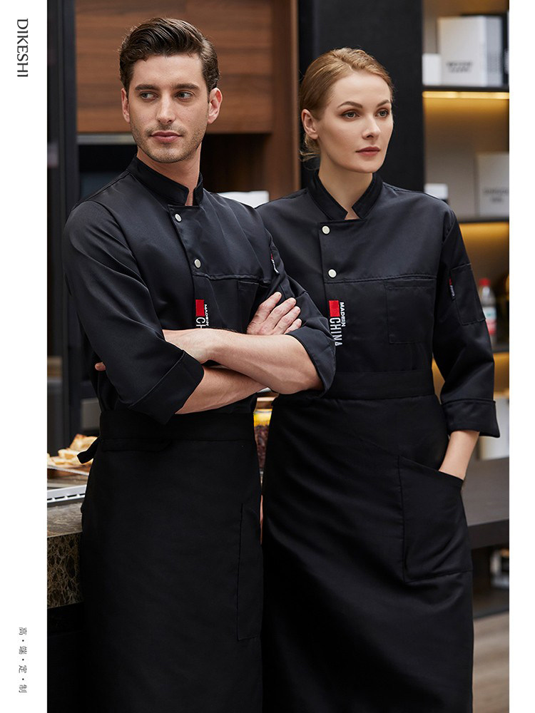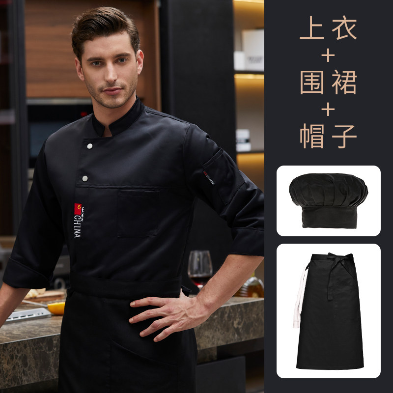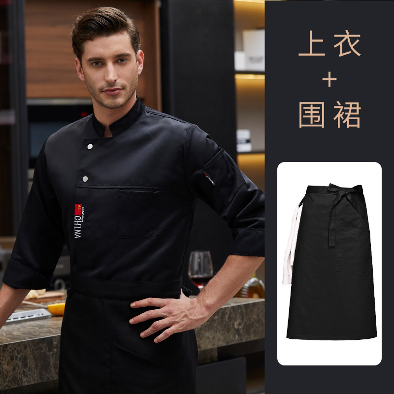 高端厨师工作服男白色长袖酒店西餐厅烘焙餐饮女厨房衣服套装定制