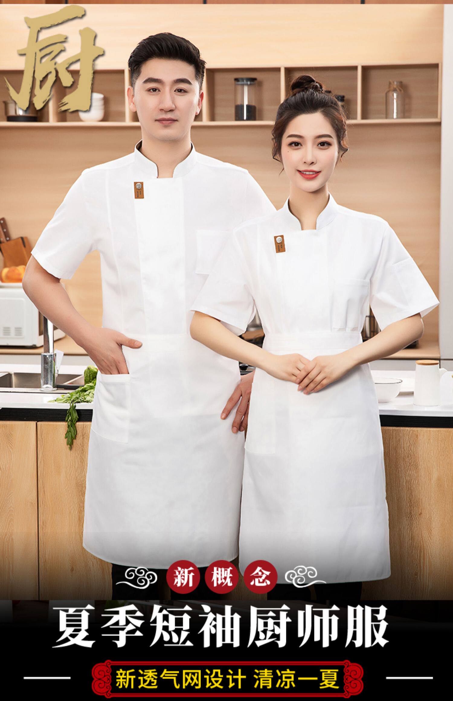 夏季餐饮厨师工作服酒店饭店烘焙透气工装西餐厅火锅店后厨房衣服