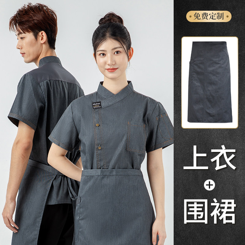 中式厨师工作服夏季短袖餐饮饭店后厨房工衣长袖酒店烧烤店中餐厅