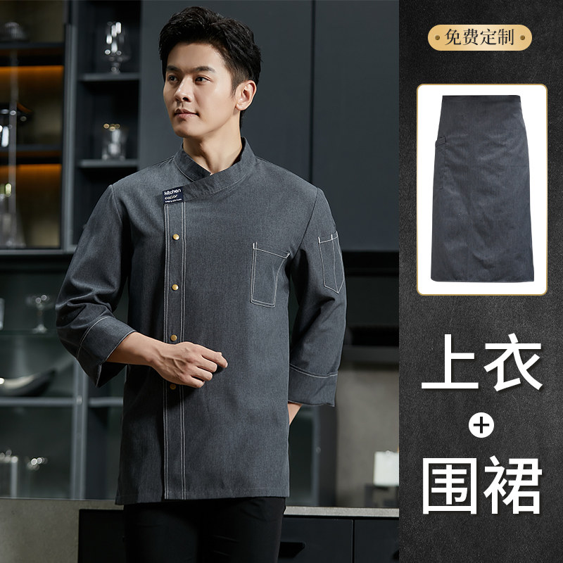厨师工作服长袖秋冬男餐饮酒店餐厅烧烤火锅店饭店后厨房定制中式