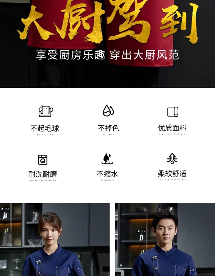 防水厨师工作服厨房餐饮后厨餐厅食堂糕点师工衣服装男长袖秋冬季