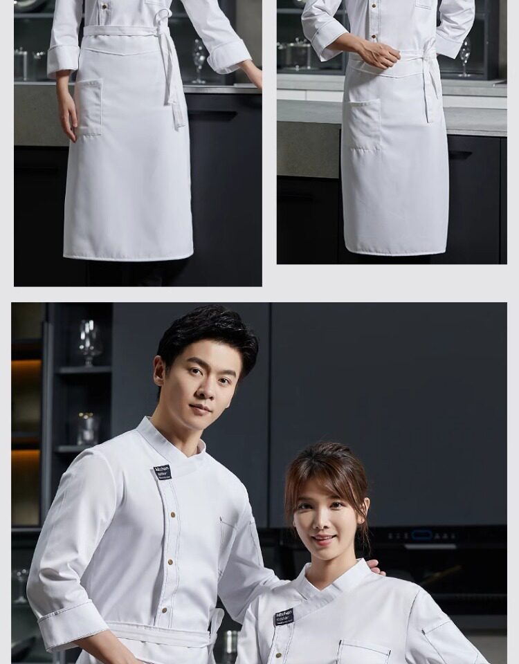 高端厨师工作服男白色长袖酒店西餐厅烘焙餐饮女厨房衣服套装定制