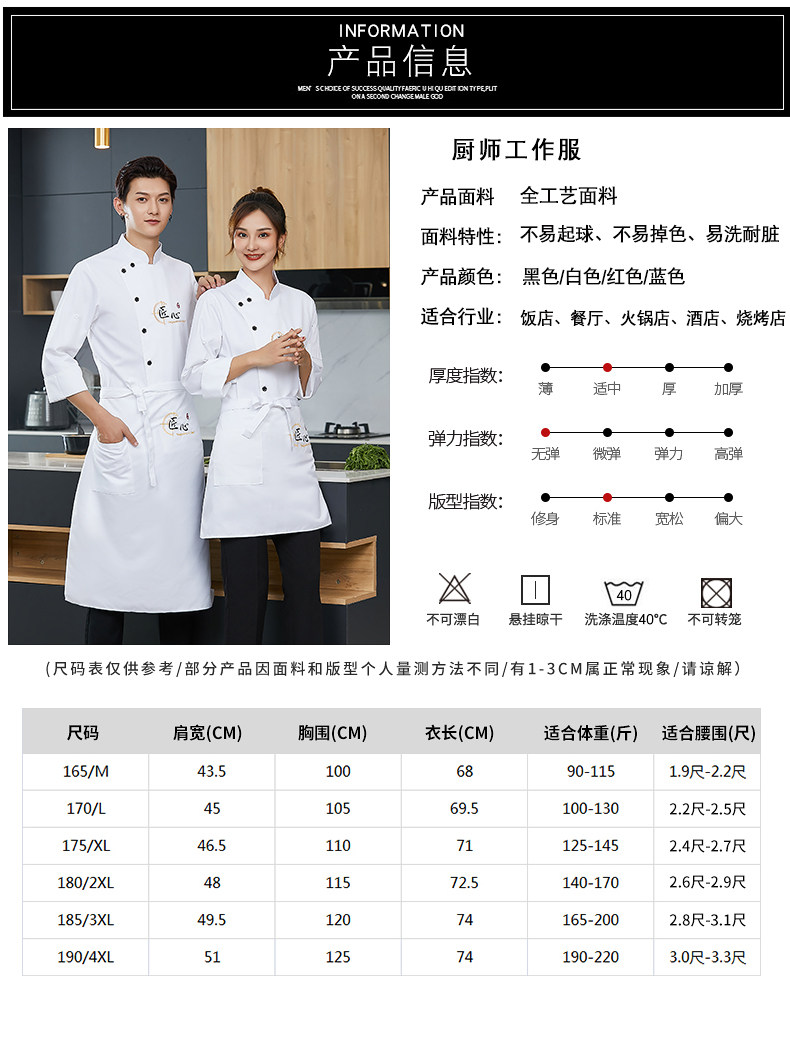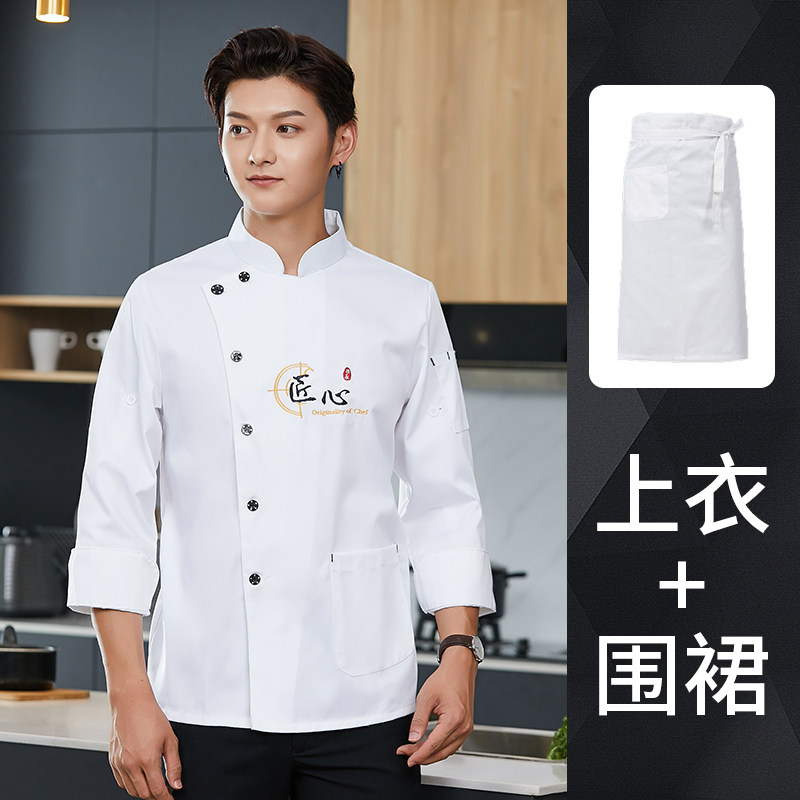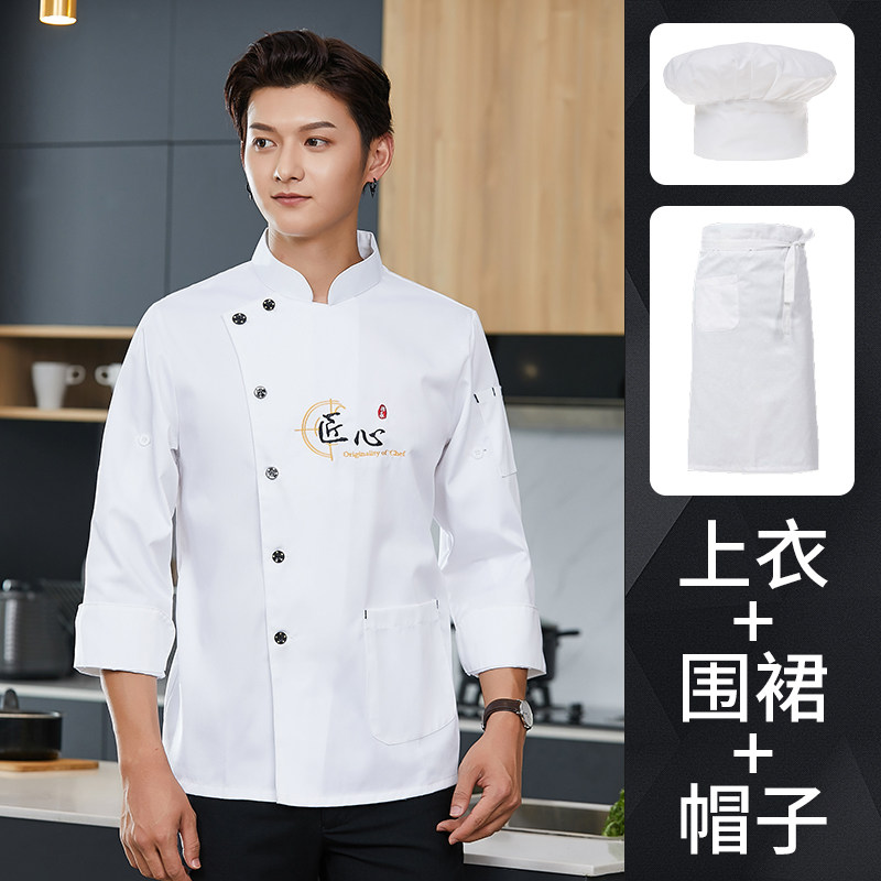 白色厨师工作服长袖秋冬款餐饮酒店饭店食堂后厨房服装男定制套装