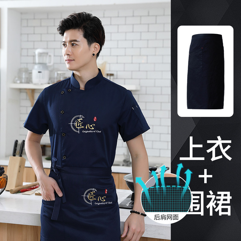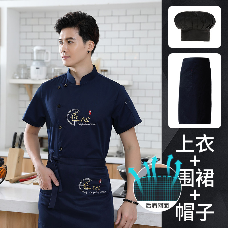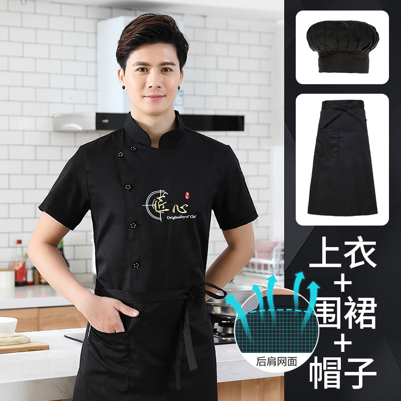 厨师工作服男短袖夏季透气薄款餐饮酒店食堂饭店厨房餐厅高级高端