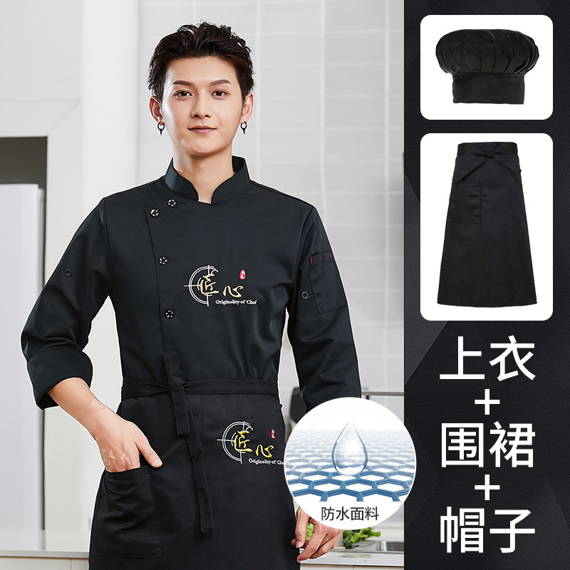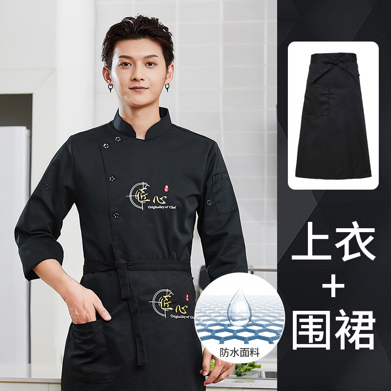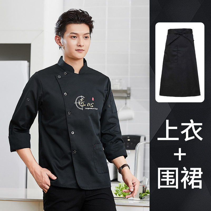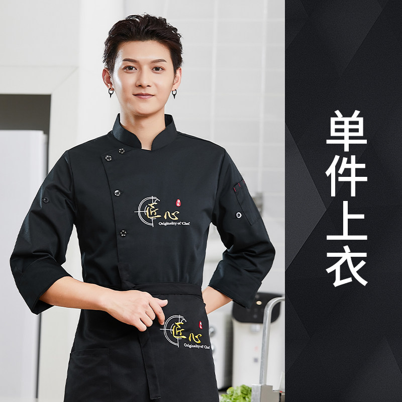 新式厨师工作服秋冬装长袖高端酒店餐饮饭店农家乐厨房短袖衣服男