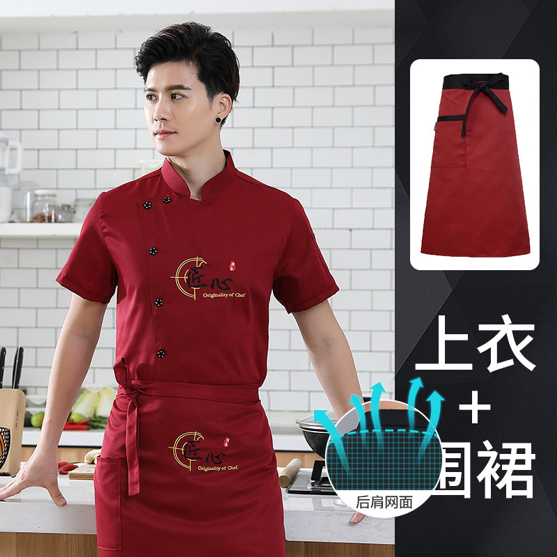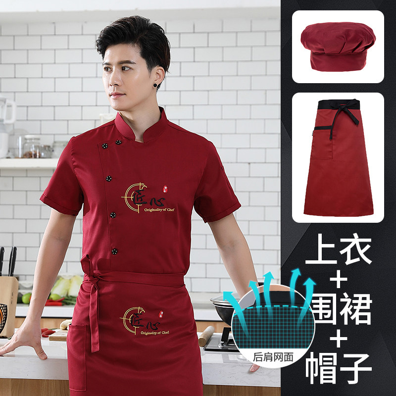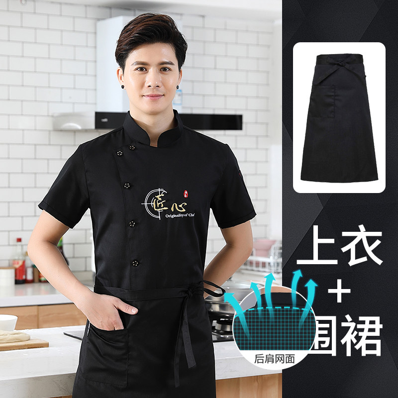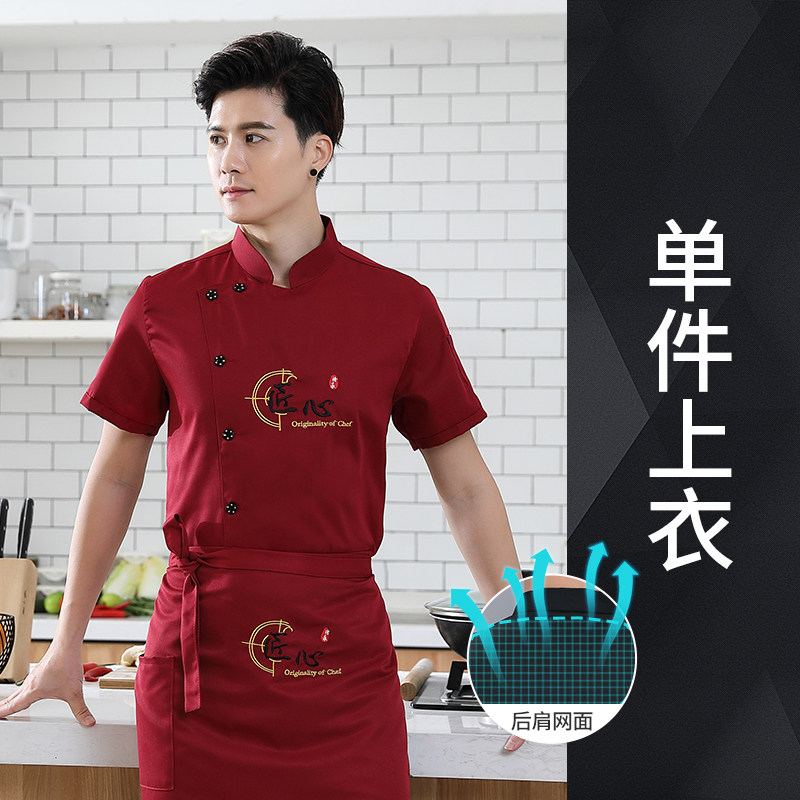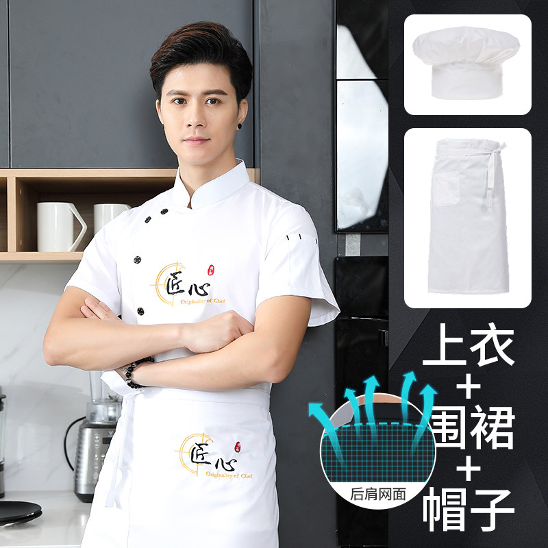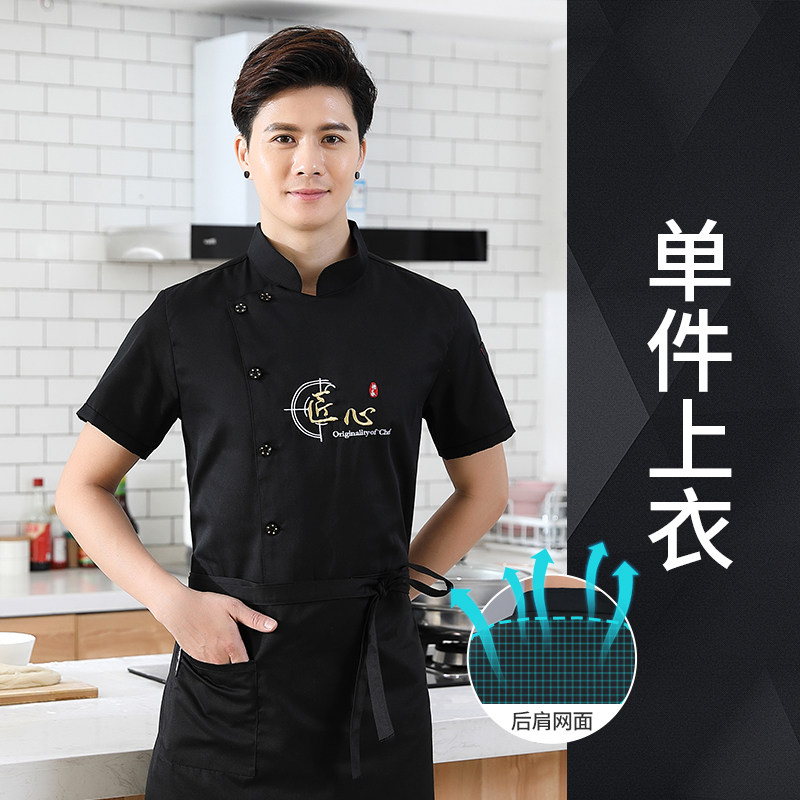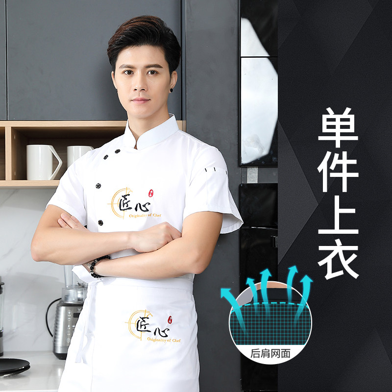 高端厨师工作服短袖透气工装男夏季餐饮酒店早点西餐厅后厨房厨衣