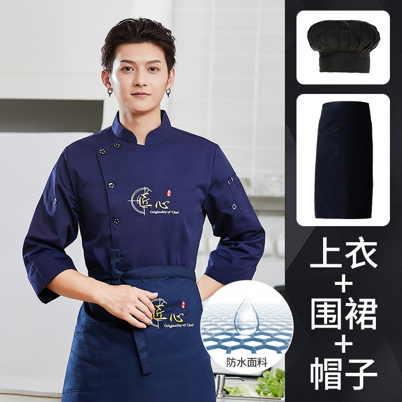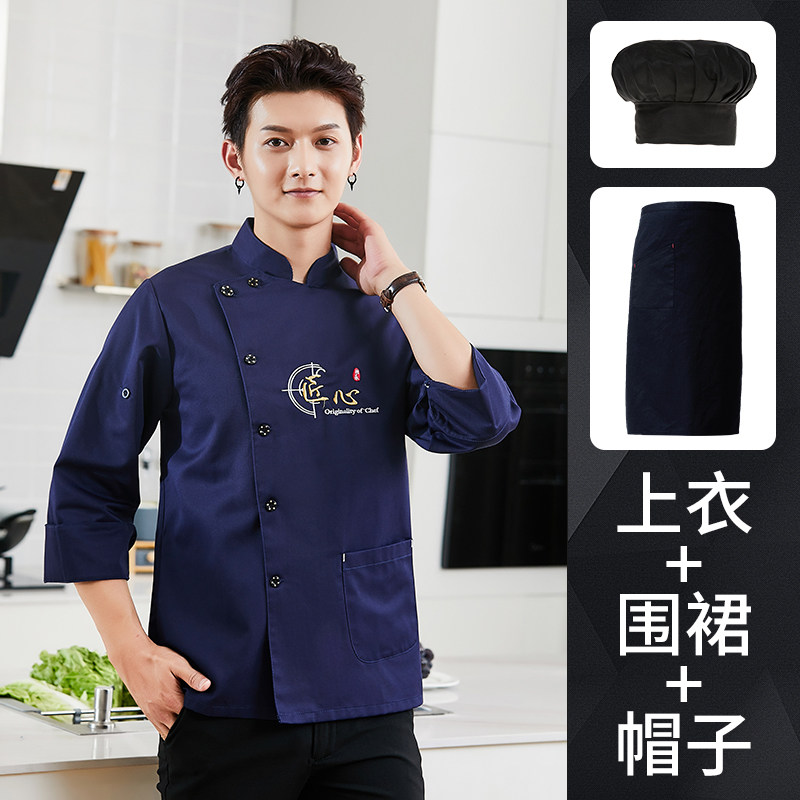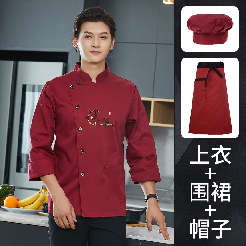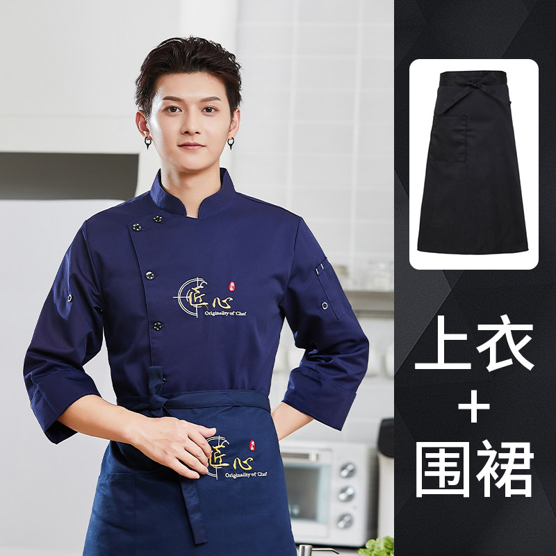 厨师工作服长袖秋冬男餐饮酒店餐厅烧烤火锅店饭店后厨房定制中式