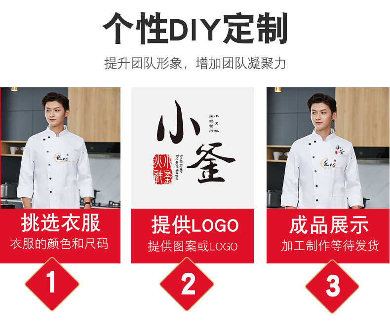餐饮厨师工作服定制印LOGO男春夏短袖餐厅饭店后厨房烘焙套装长袖