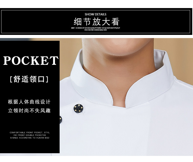 新式厨师工作服男长袖高档酒店西餐厅烘焙餐饮主厨房服装短袖上衣