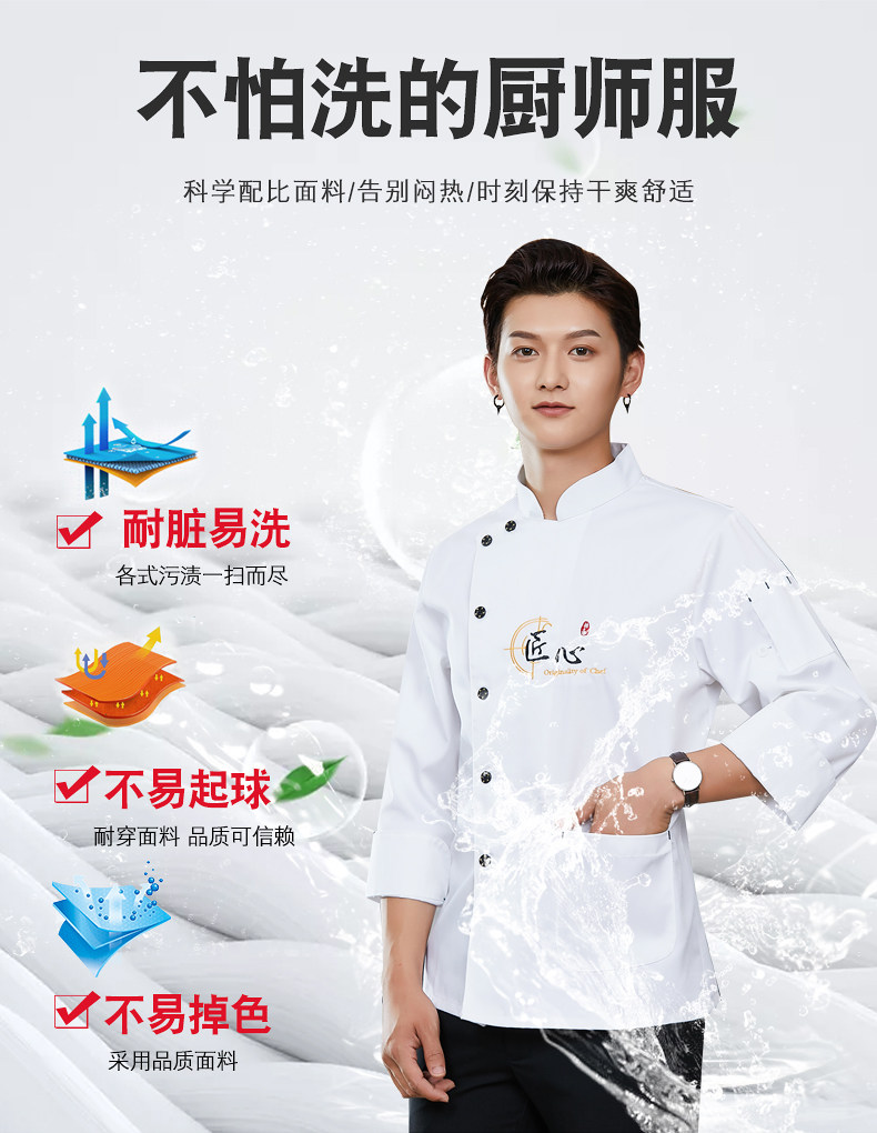 2024新款厨师工作服长袖秋冬装酒店烘焙蛋糕店后厨房餐饮短袖定制