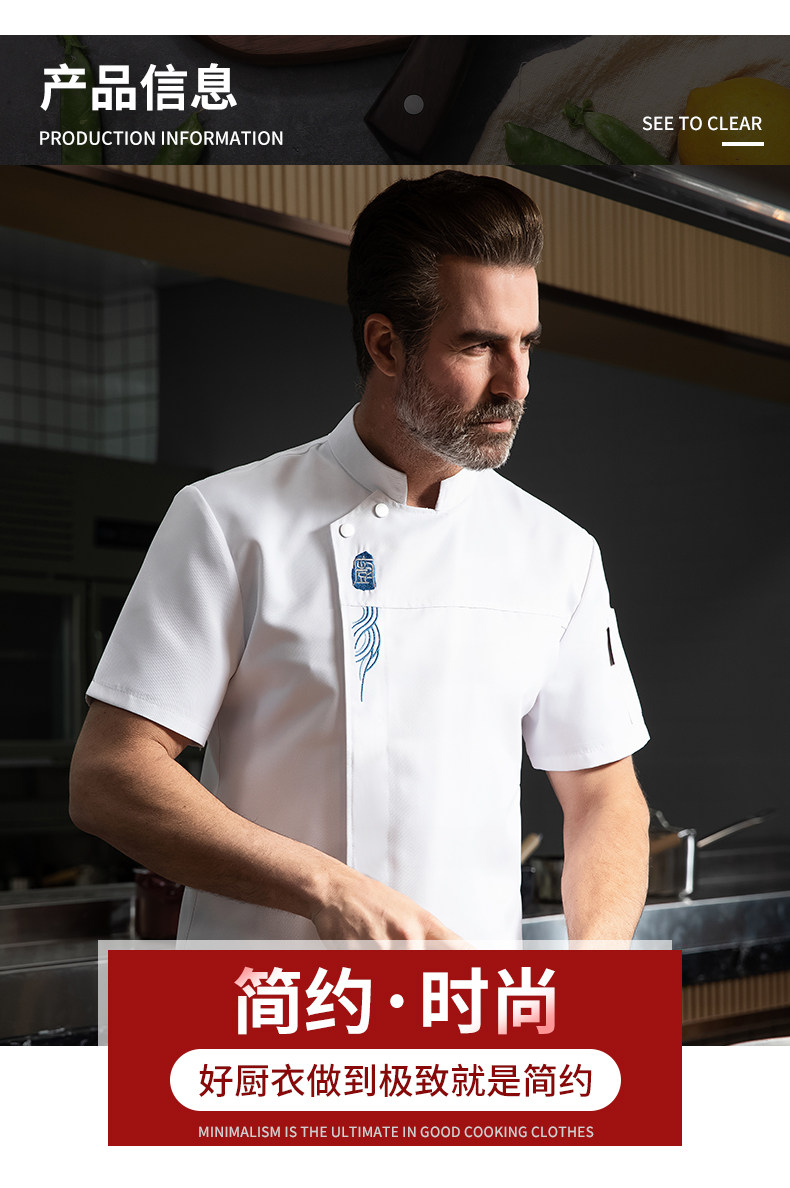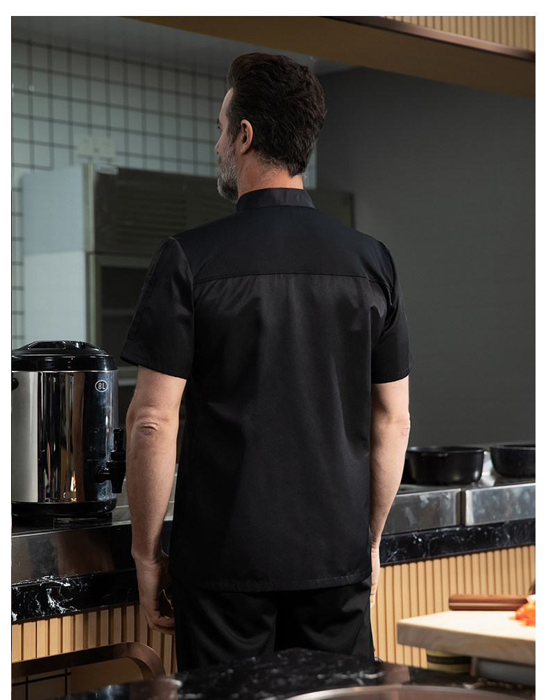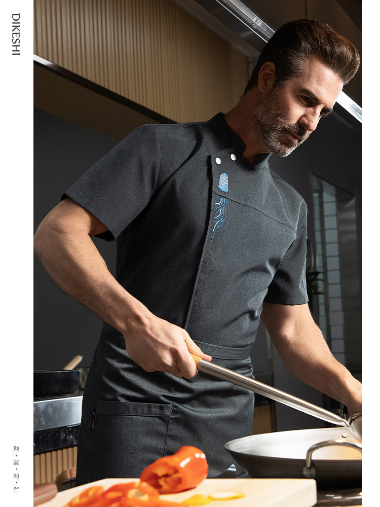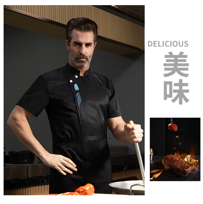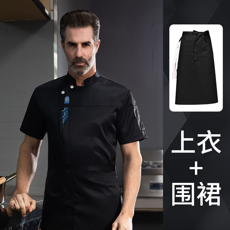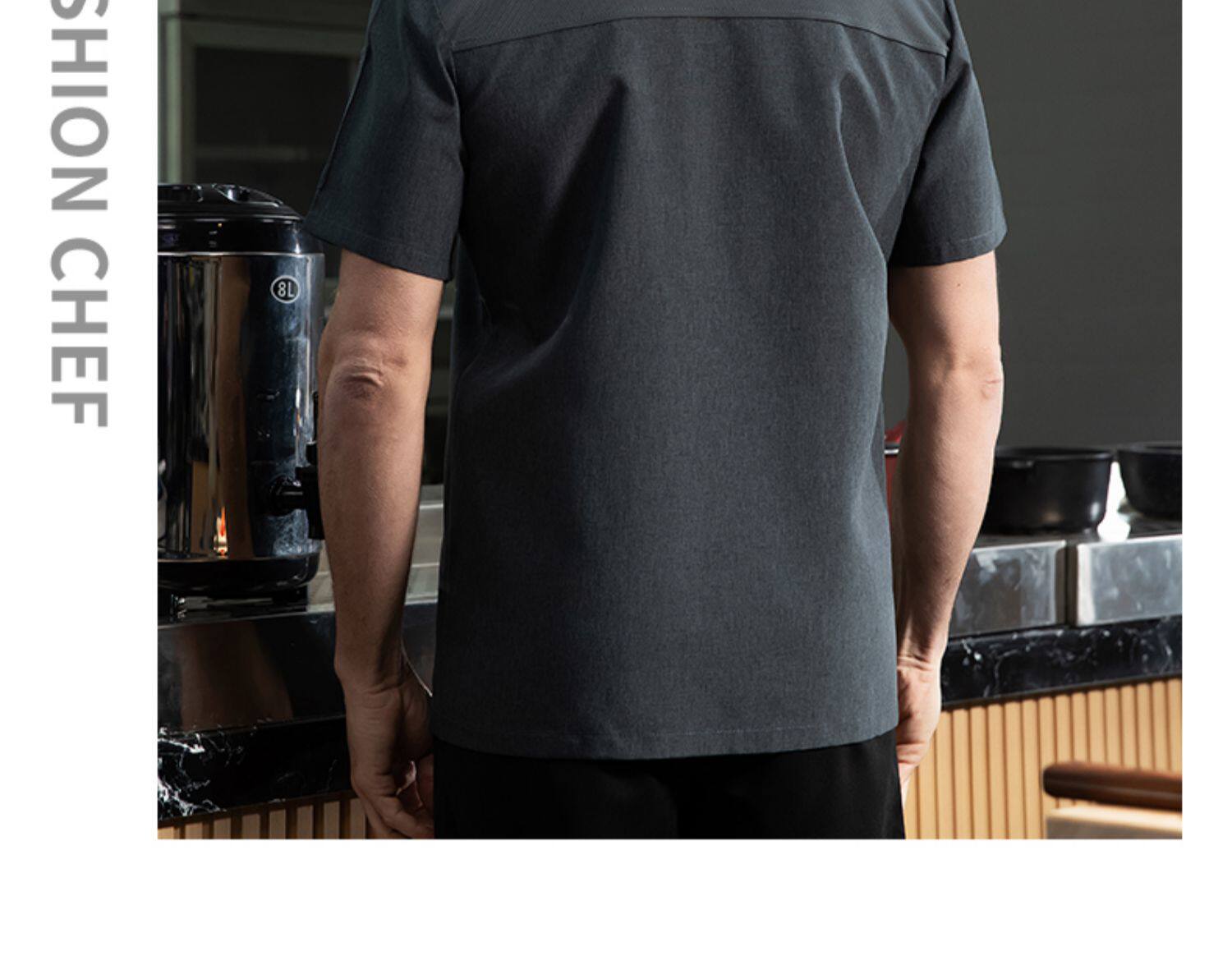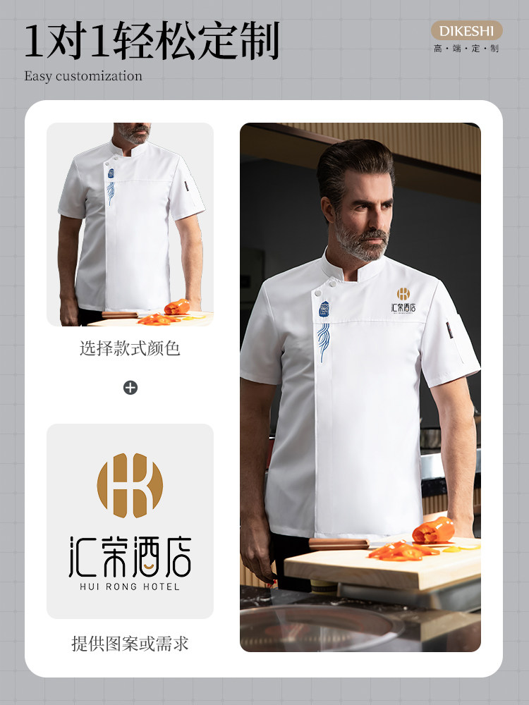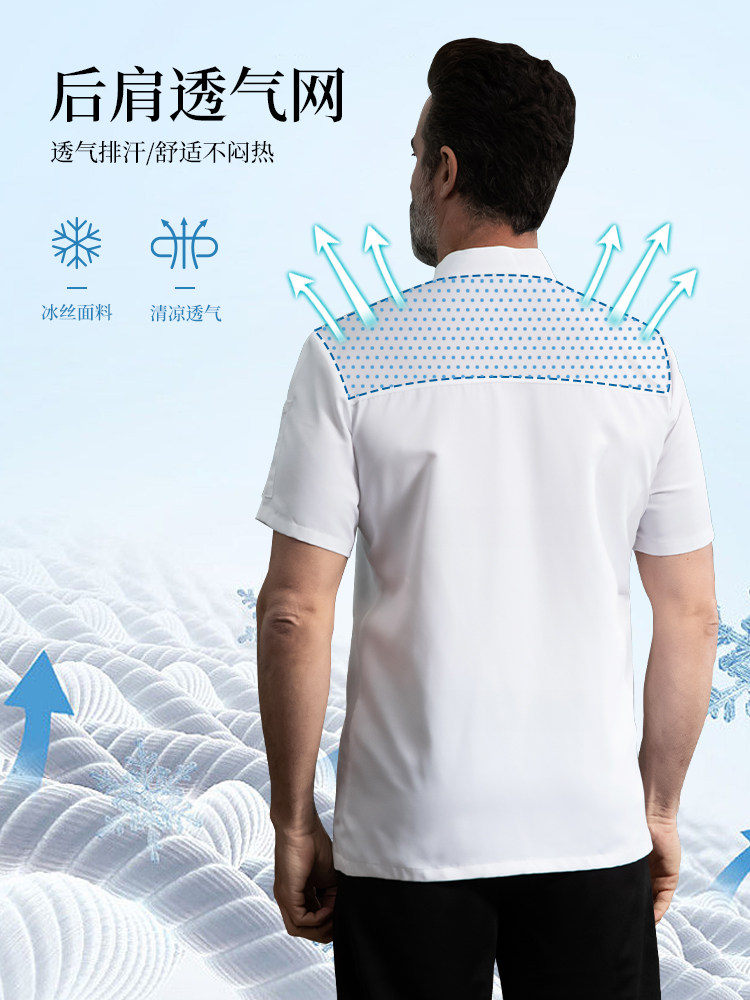 高端厨师工作服短袖透气工装男夏季餐饮酒店早点西餐厅后厨房厨衣