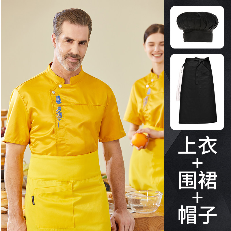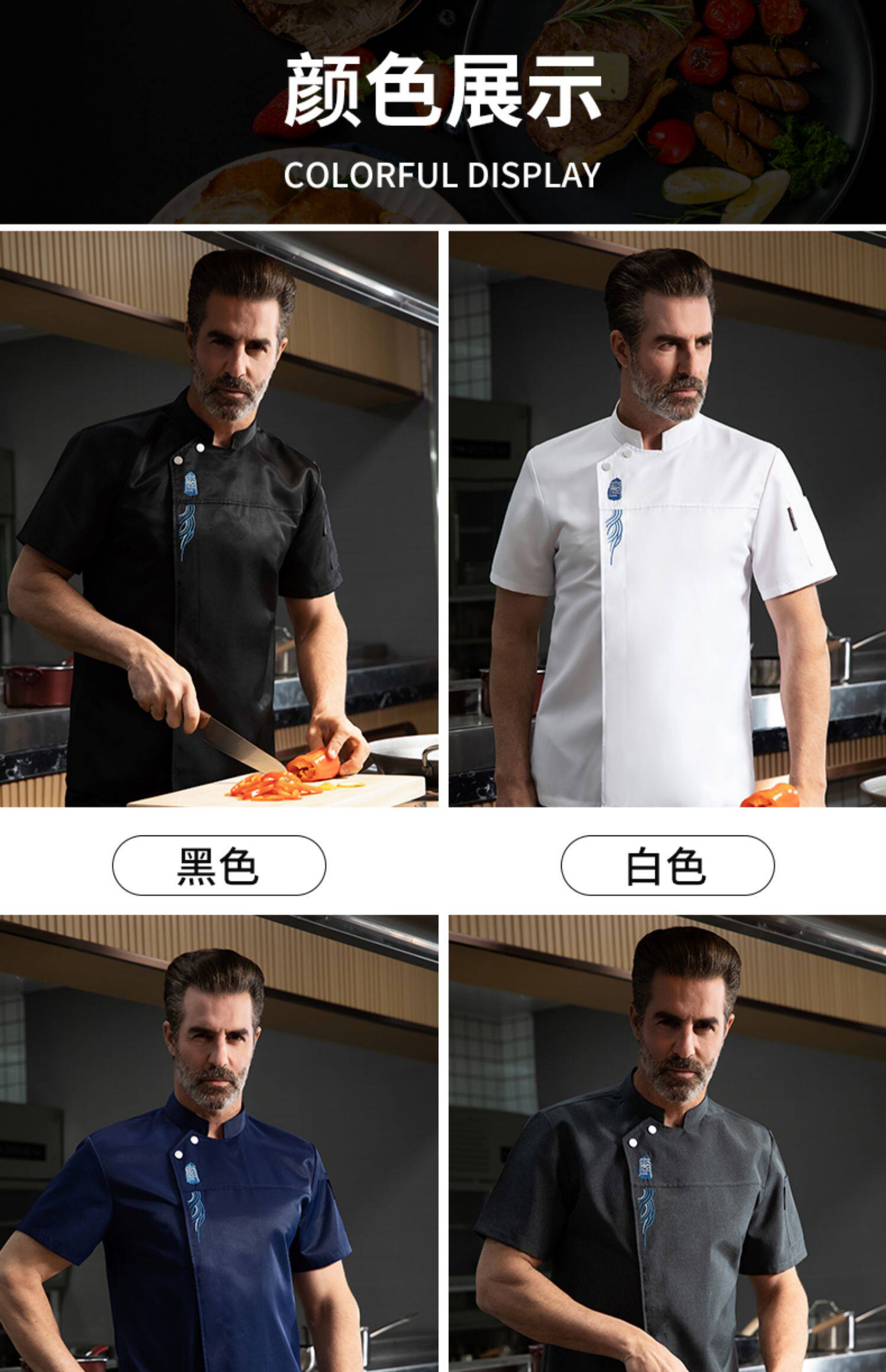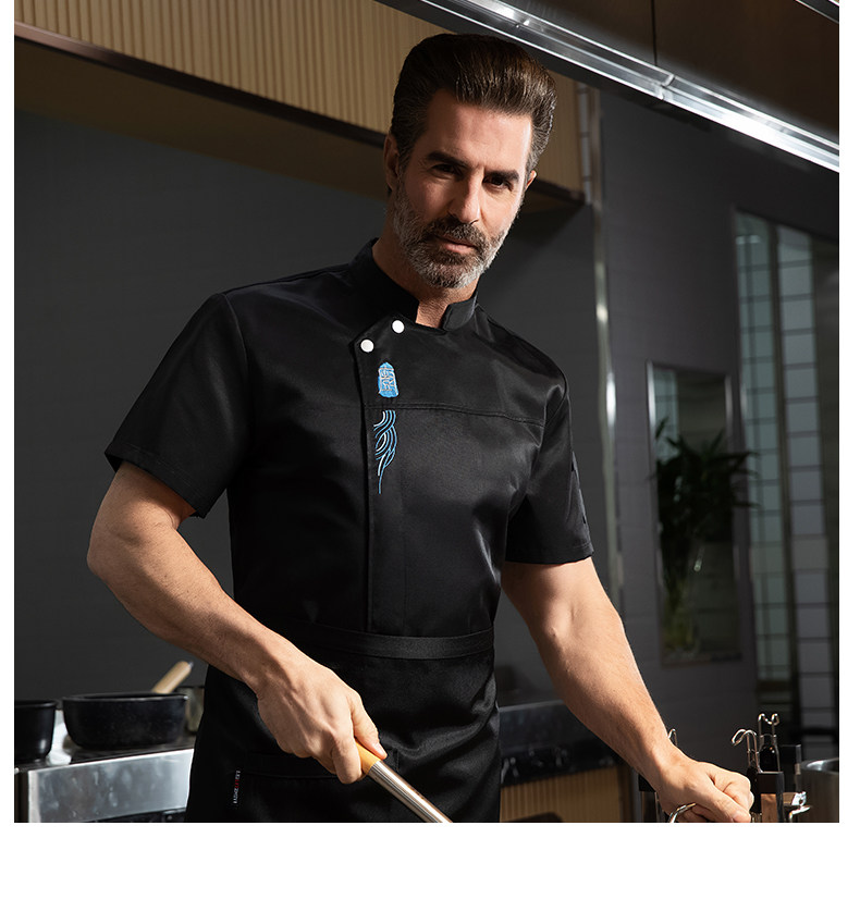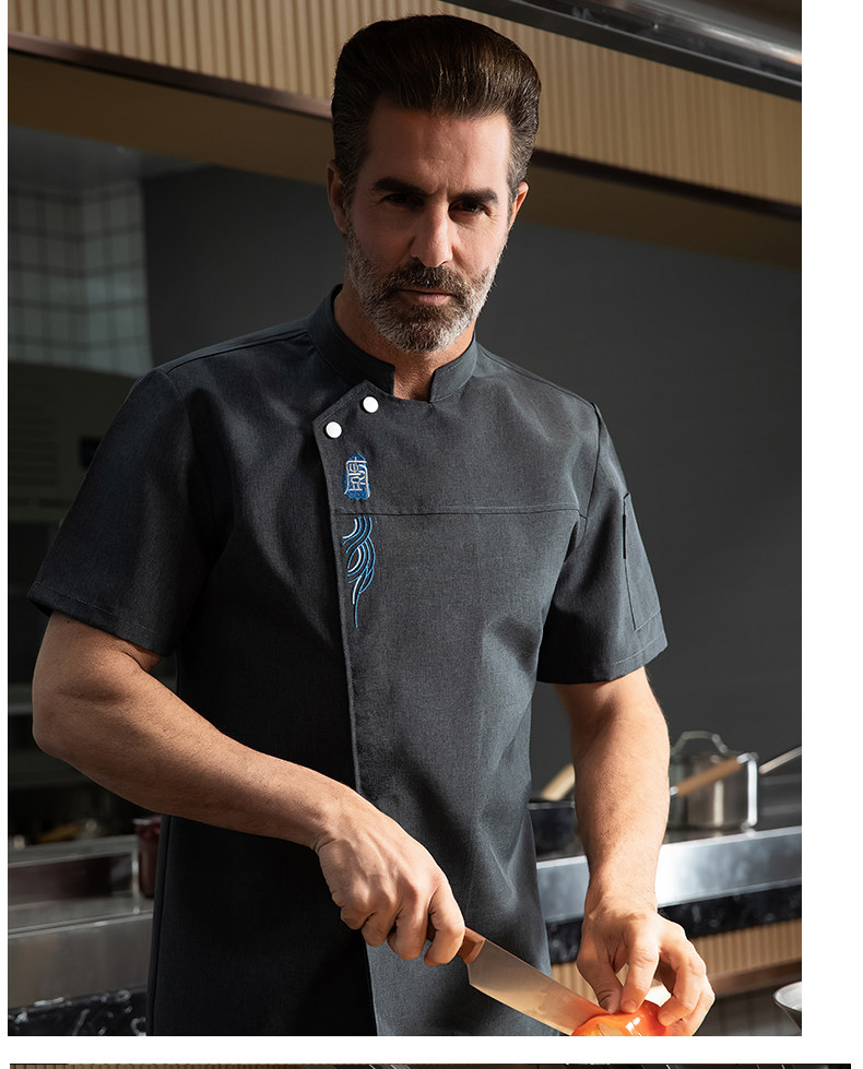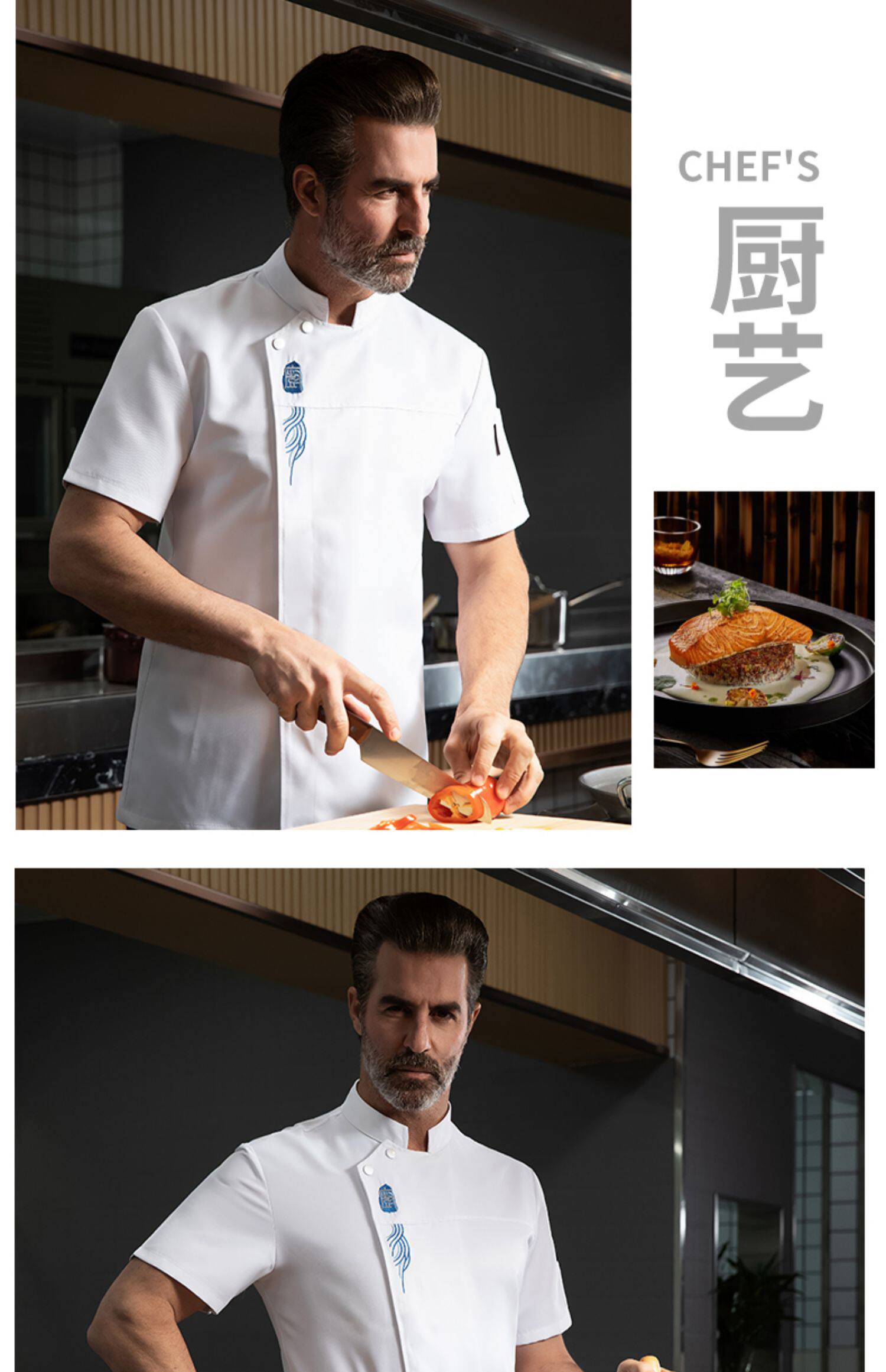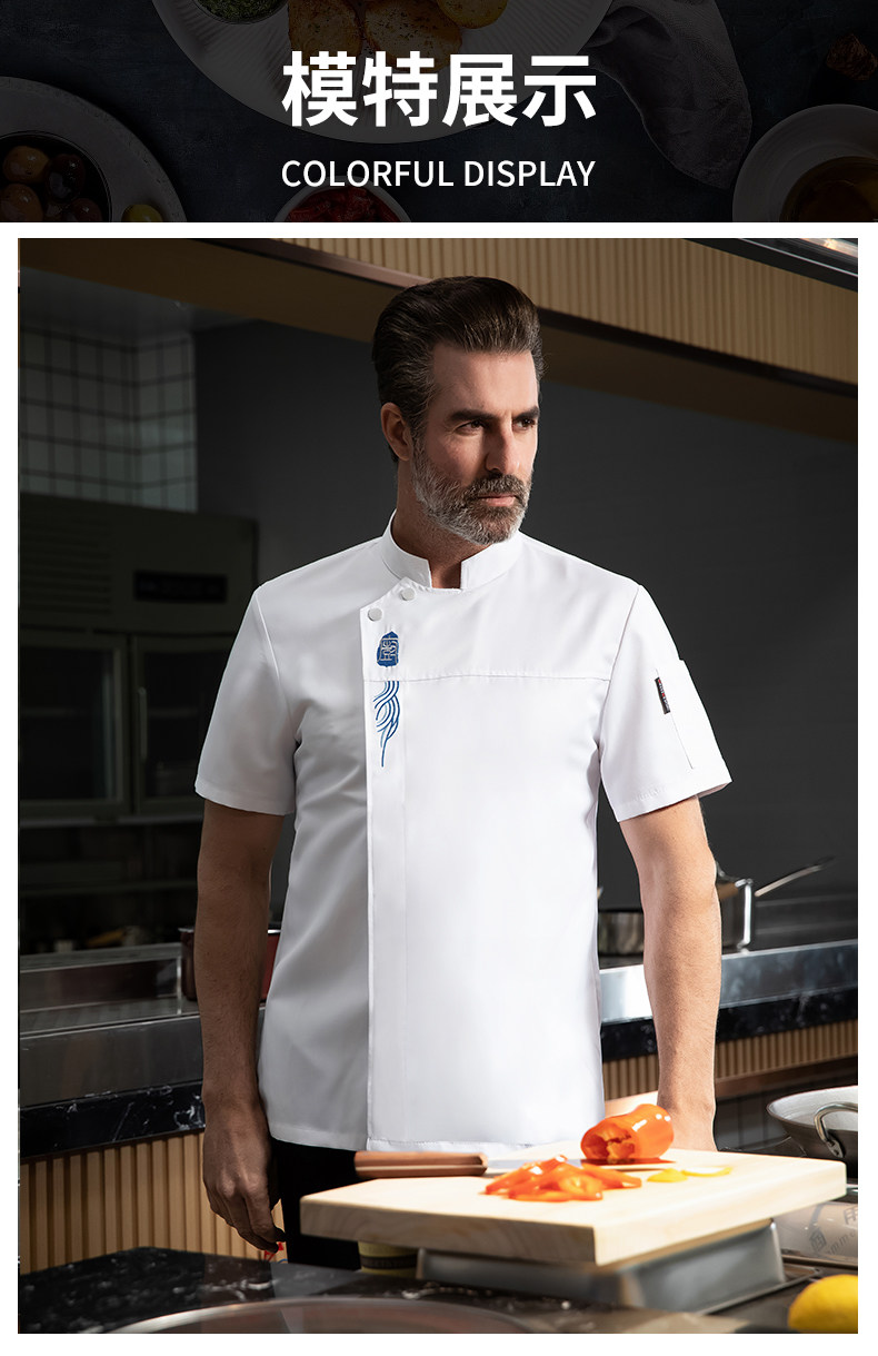 高端厨师工作服短袖透气工装男夏季餐饮酒店早点西餐厅后厨房厨衣