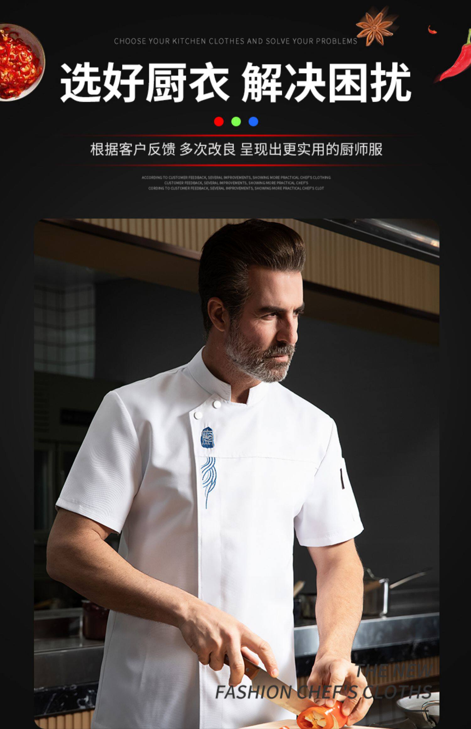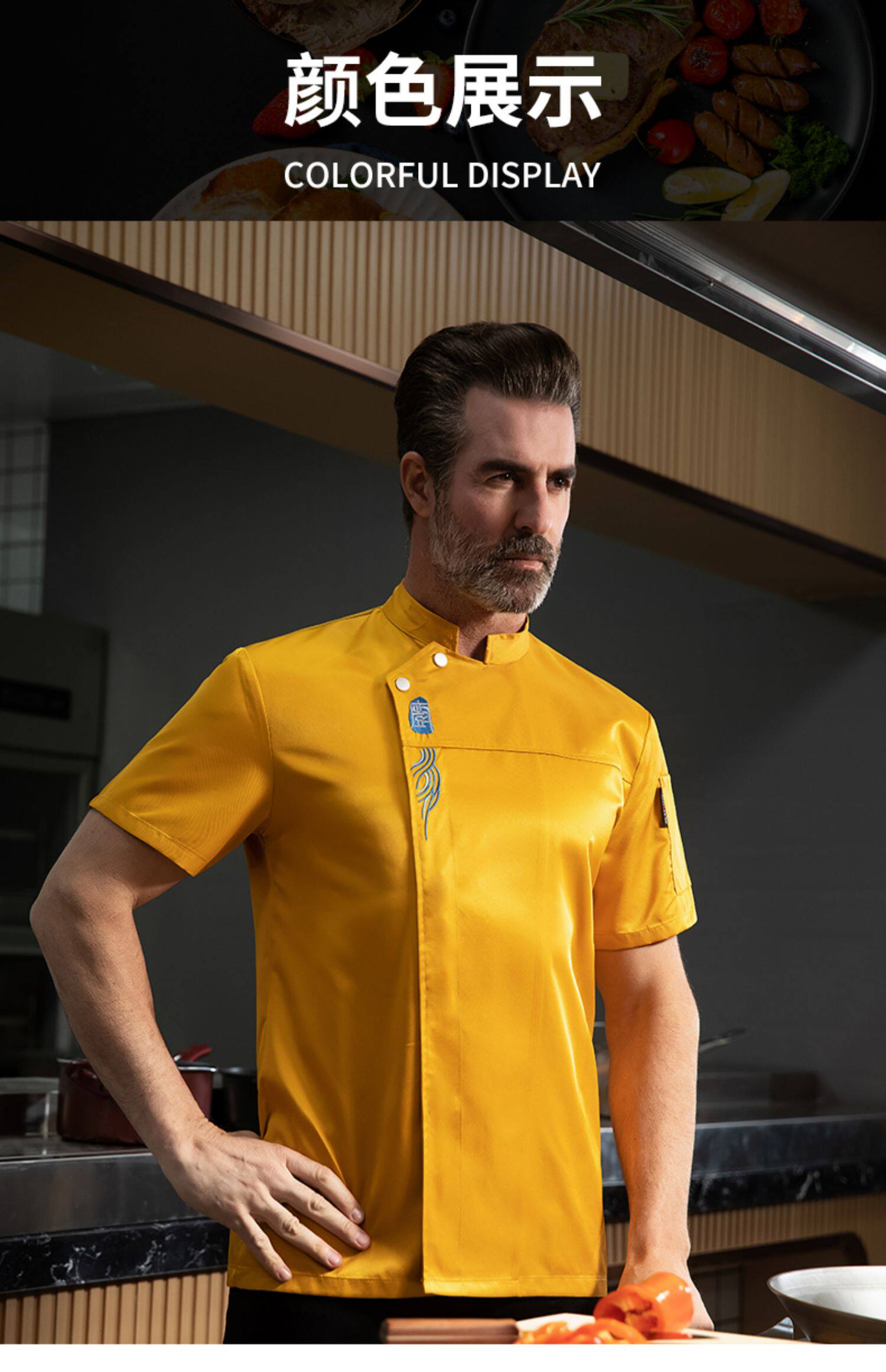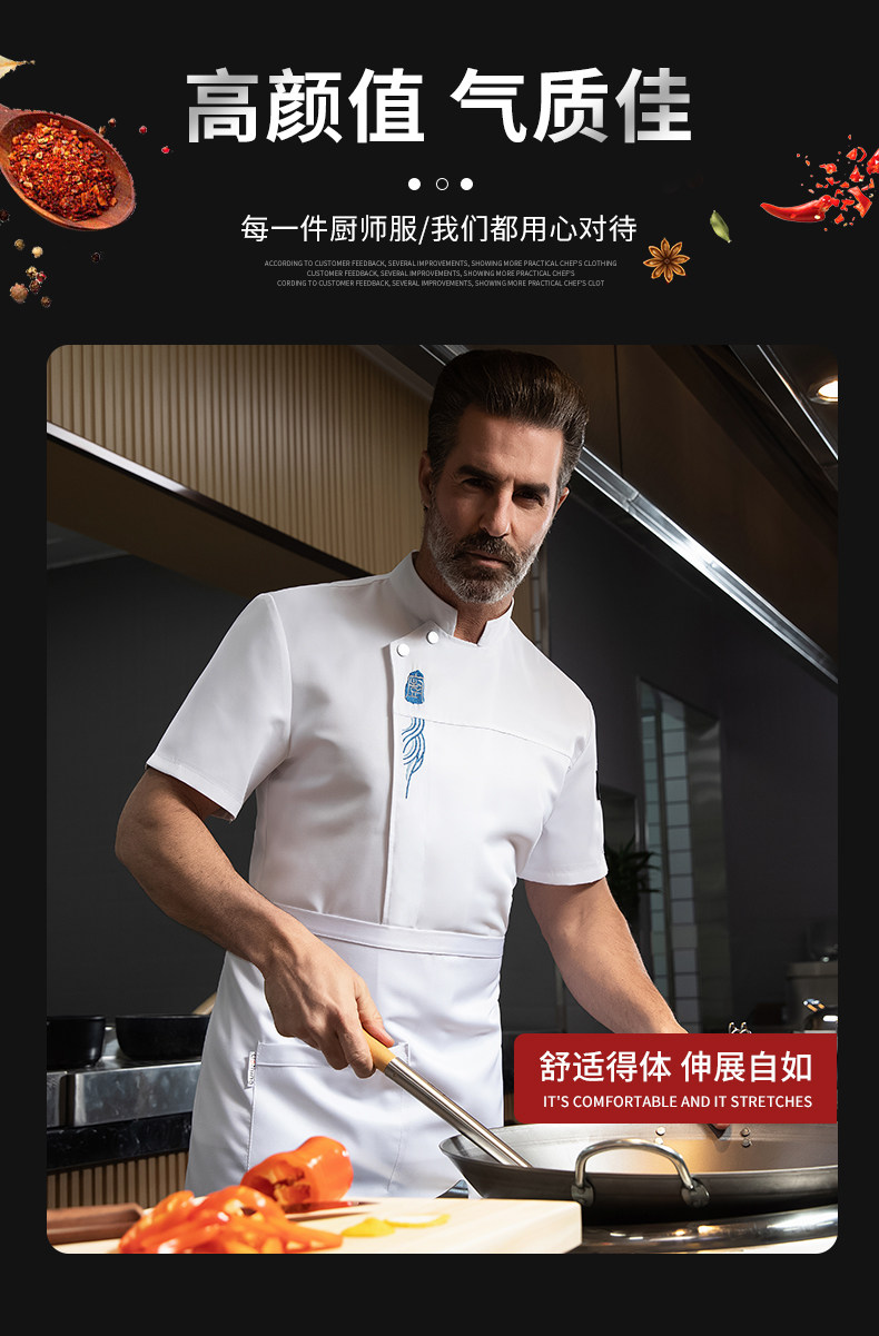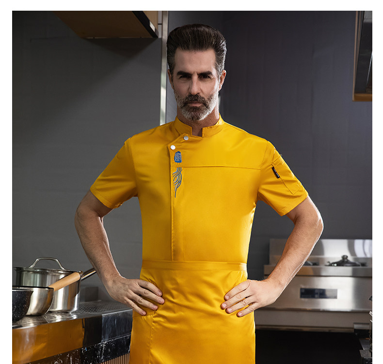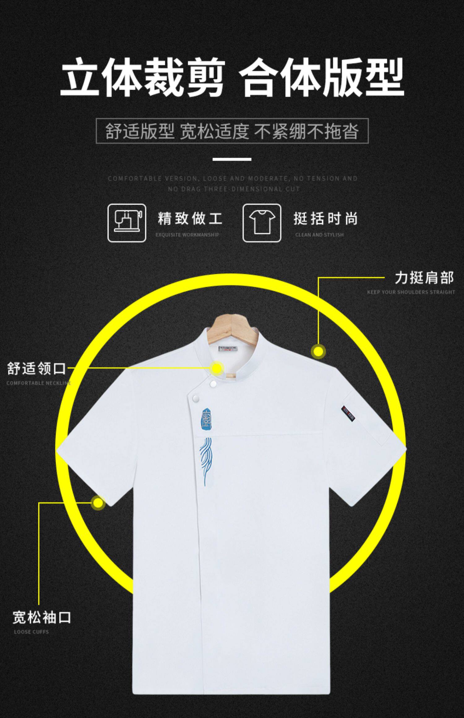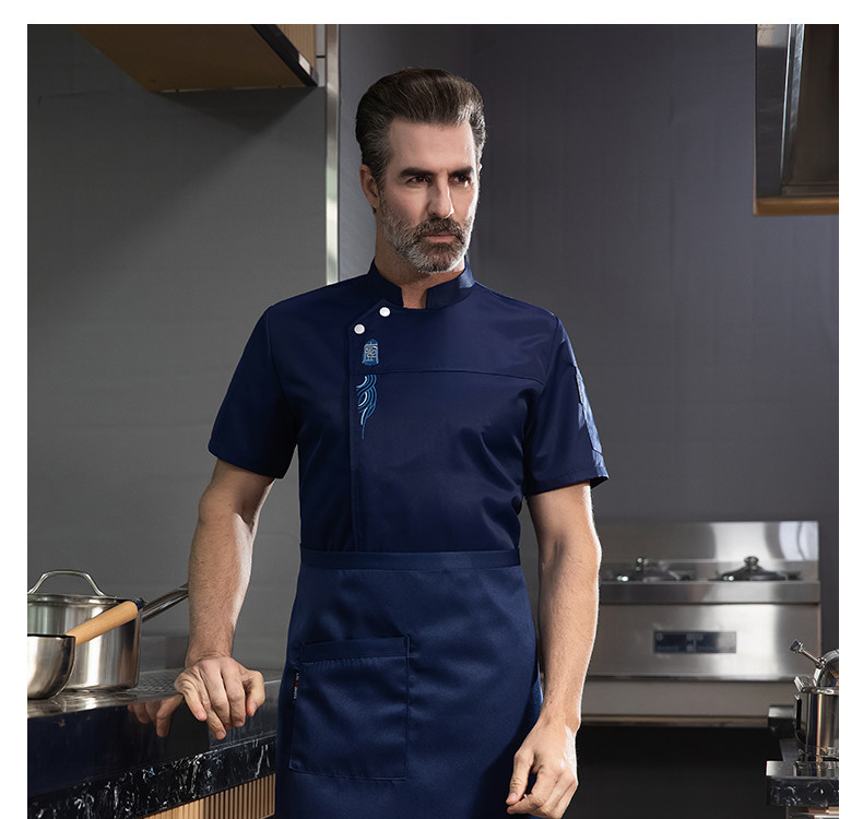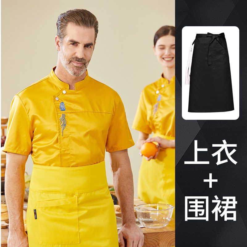 高端厨师工作服短袖透气工装男夏季餐饮酒店早点西餐厅后厨房厨衣