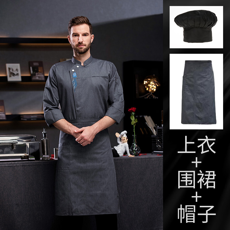 厨师工作服长袖秋冬男餐饮酒店餐厅烧烤火锅店饭店后厨房定制中式