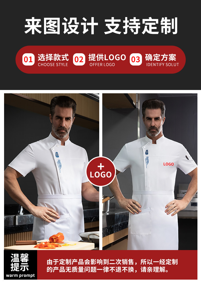 餐饮厨师工作服定制印LOGO男春夏短袖餐厅饭店后厨房烘焙套装长袖