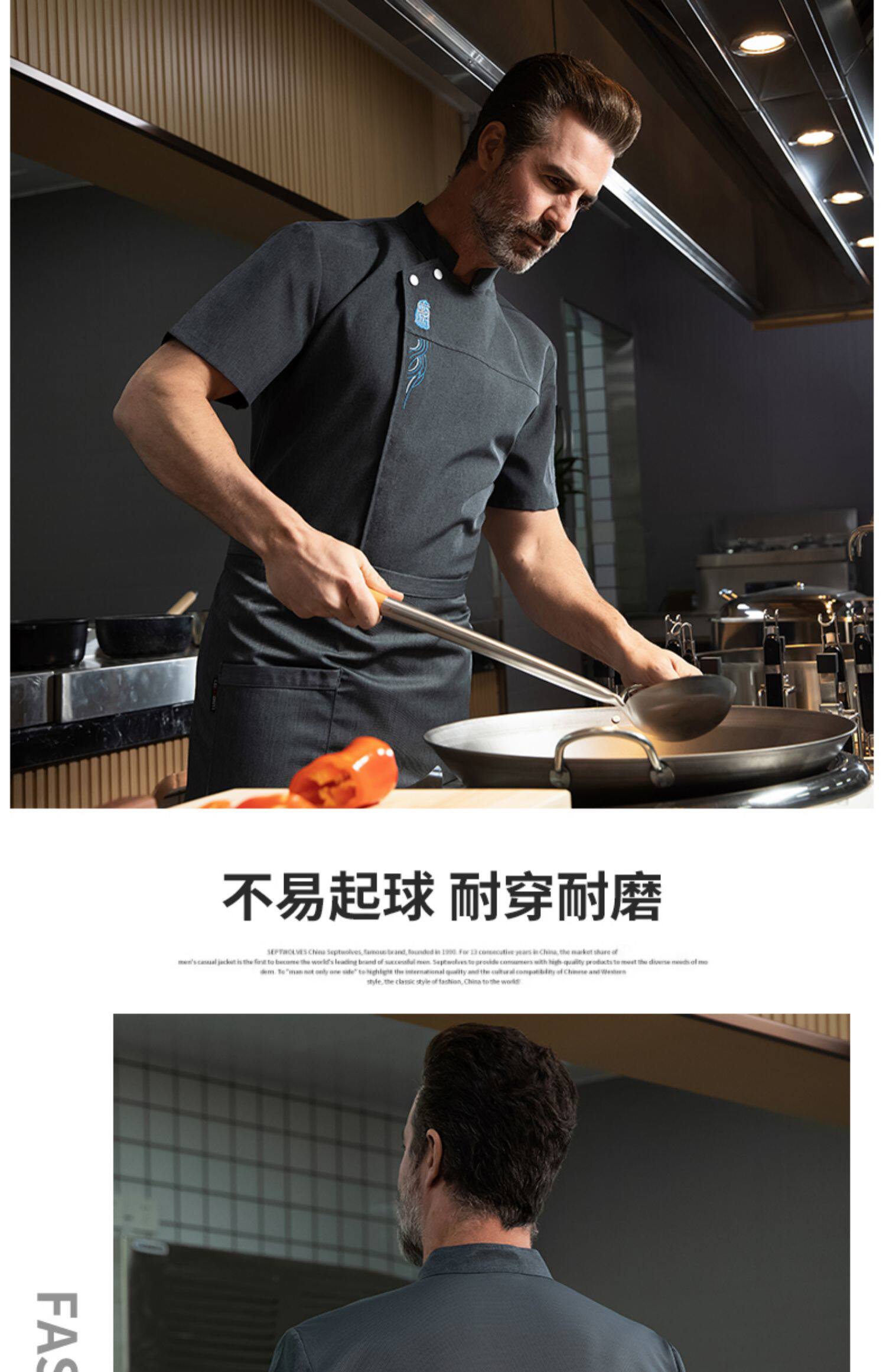 餐饮厨师工作服短袖男装酒店饭店食堂烧烤厨房薄款透气防水长袖夏