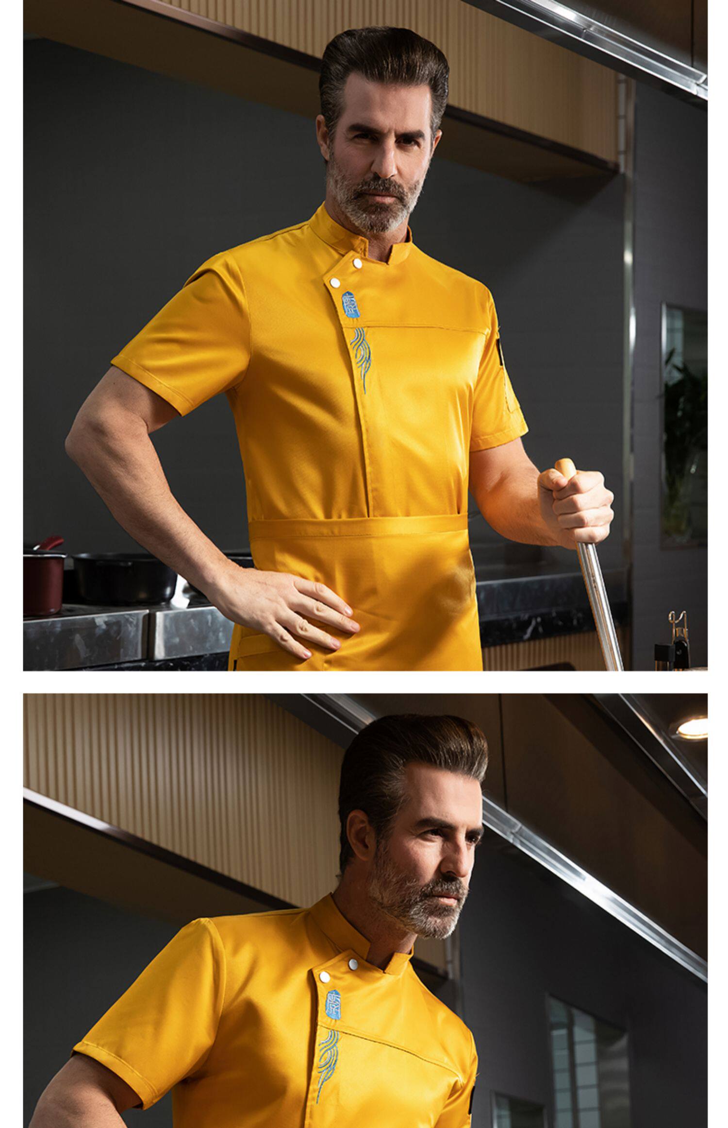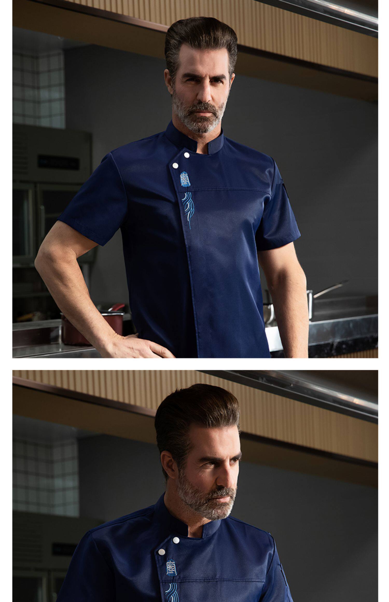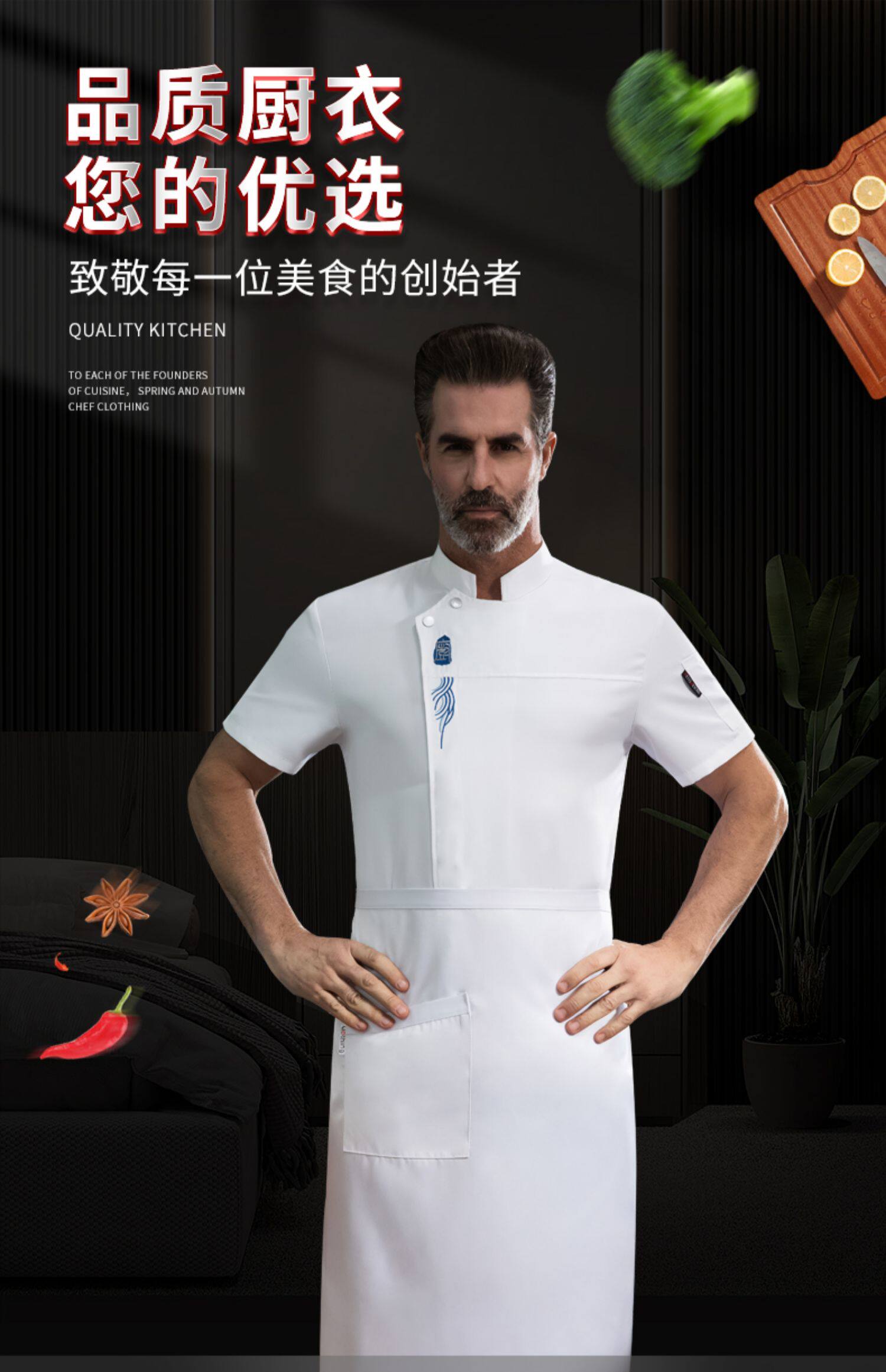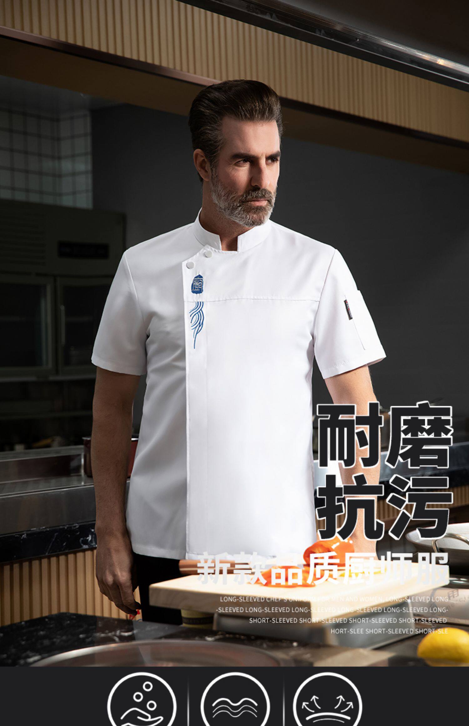 新式厨师工作服男长袖高档酒店西餐厅烘焙餐饮主厨房服装短袖上衣
