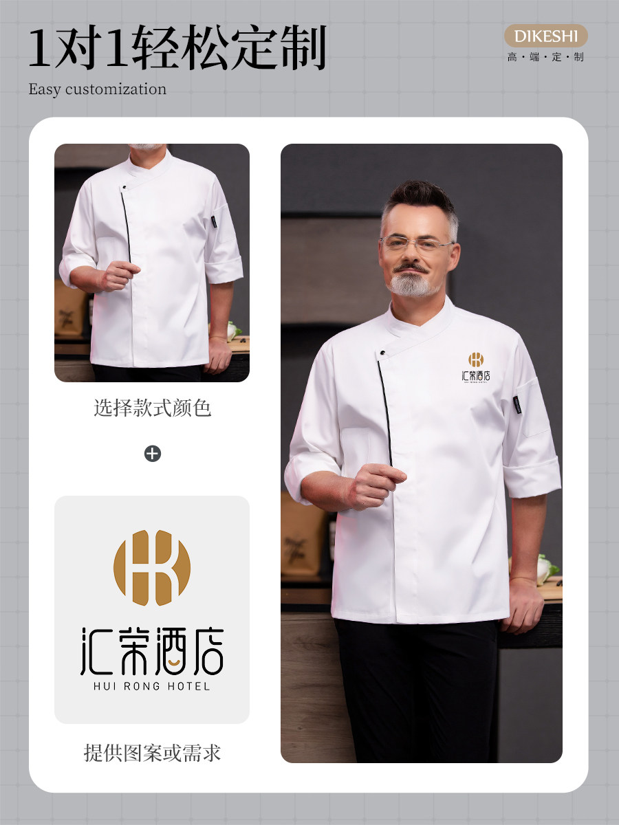 酒店厨师工作服定制LOGO印字春夏中短袖餐厅后厨房食堂餐饮工装男