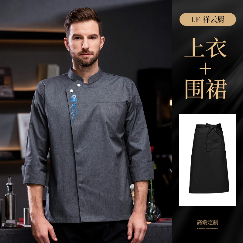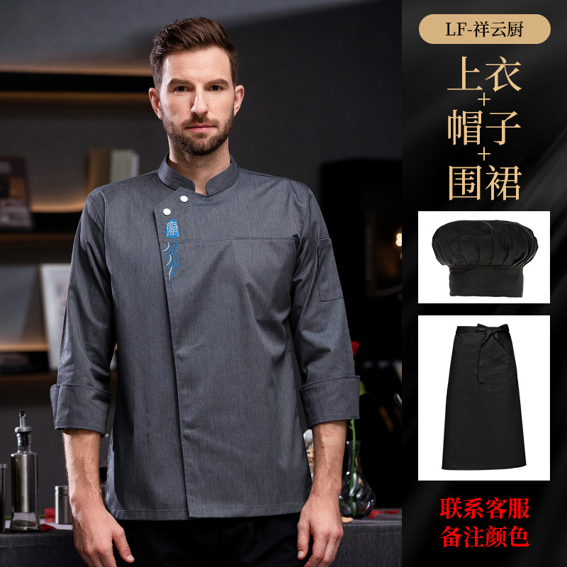 厨师工作服长袖秋冬男餐饮酒店餐厅烧烤火锅店饭店后厨房定制中式