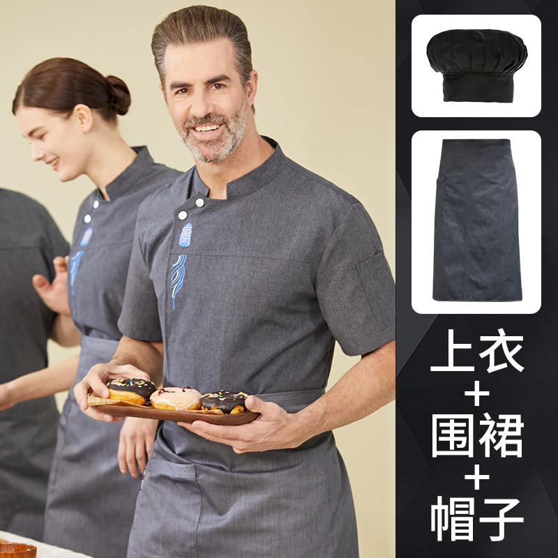 烘焙蛋糕房厨师工作服短袖男夏季餐饮西餐饭店奶茶糕点师薄款长袖