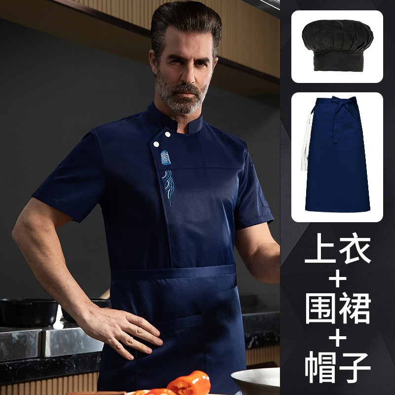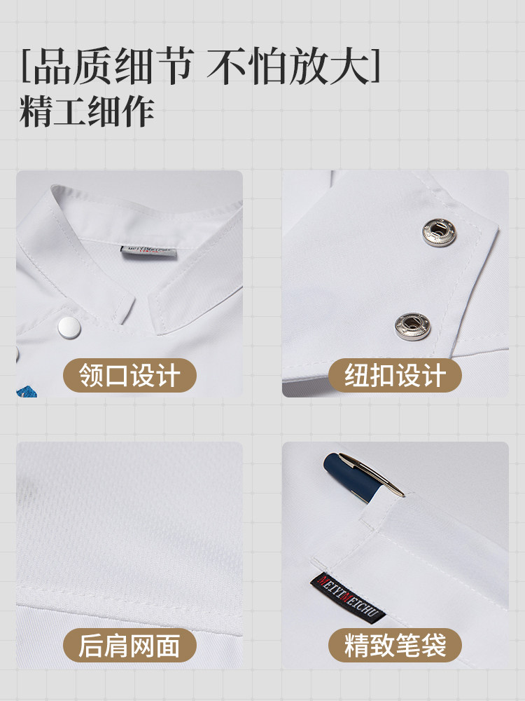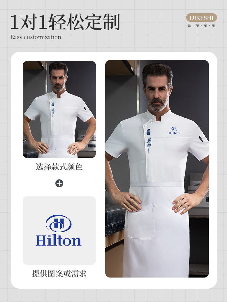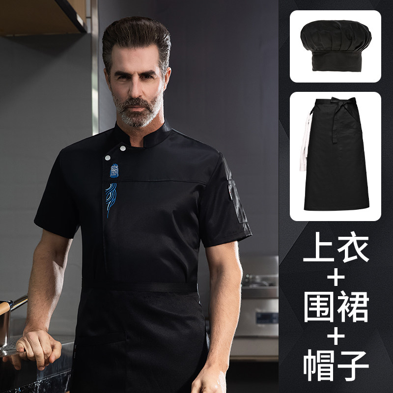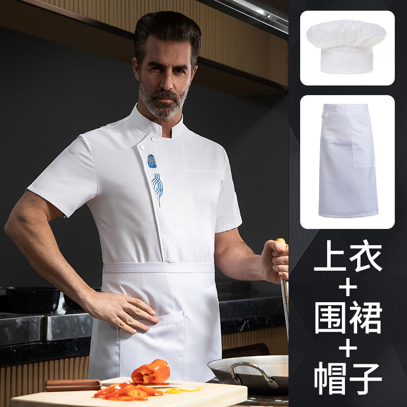高端厨师工作服短袖透气工装男夏季餐饮酒店早点西餐厅后厨房厨衣