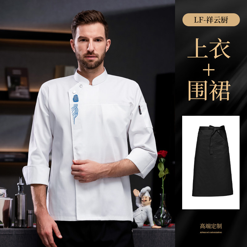 高端厨师工作服男白色长袖酒店西餐厅烘焙餐饮女厨房衣服套装定制