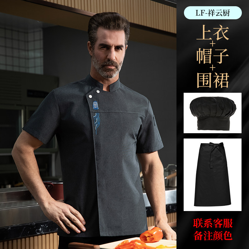 中式厨师工作服夏季短袖餐饮饭店后厨房工衣长袖酒店烧烤店中餐厅