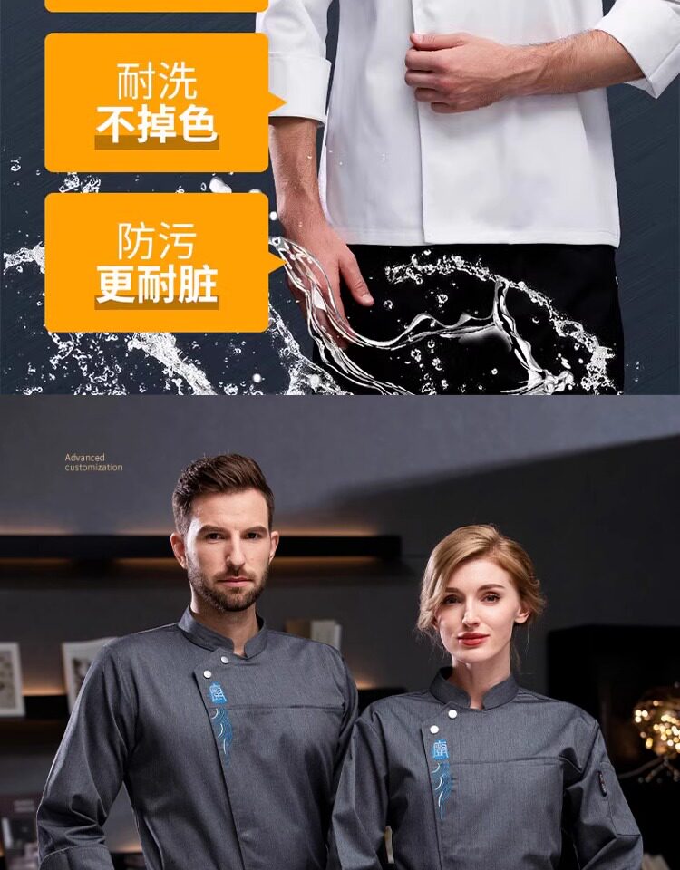 防水厨师工作服厨房餐饮后厨餐厅食堂糕点师工衣服装男长袖秋冬季