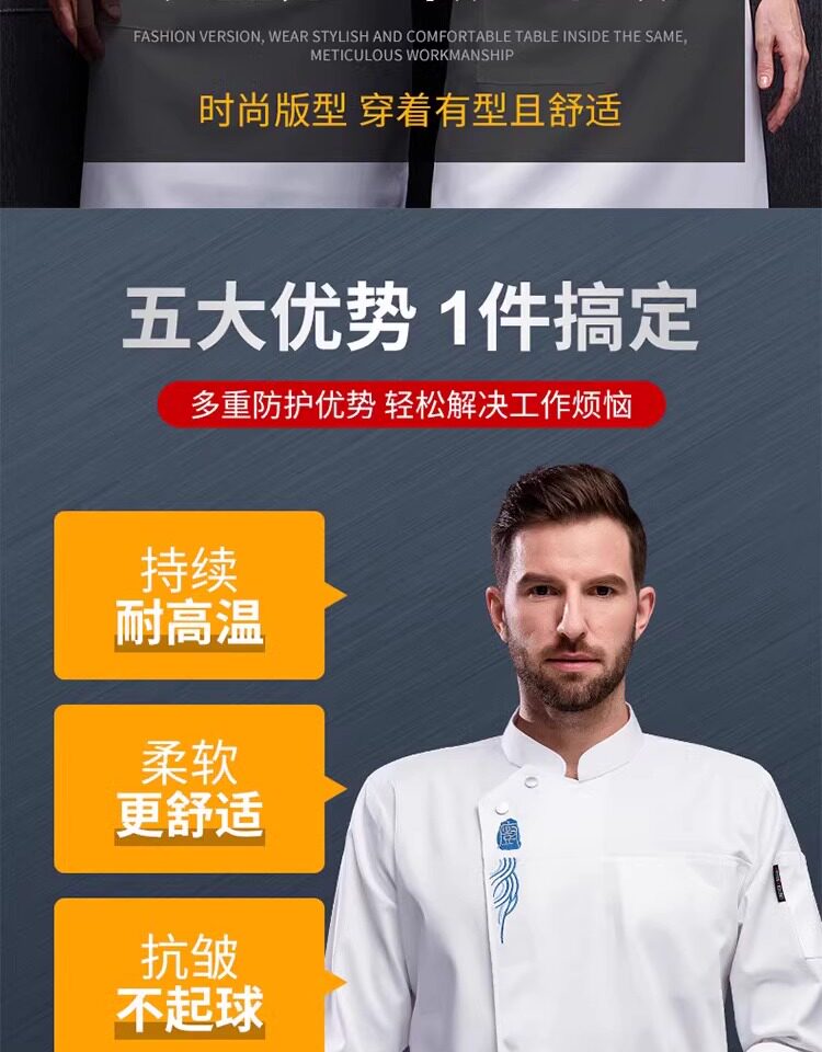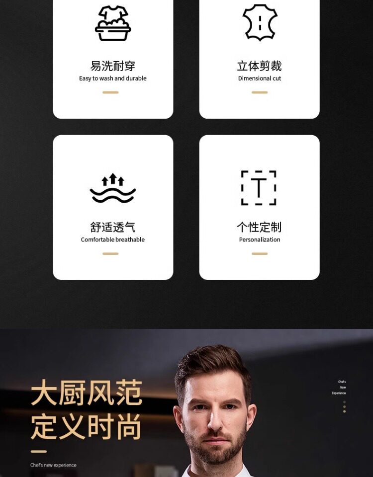 新式厨师工作服男长袖高档酒店西餐厅烘焙餐饮主厨房服装短袖上衣
