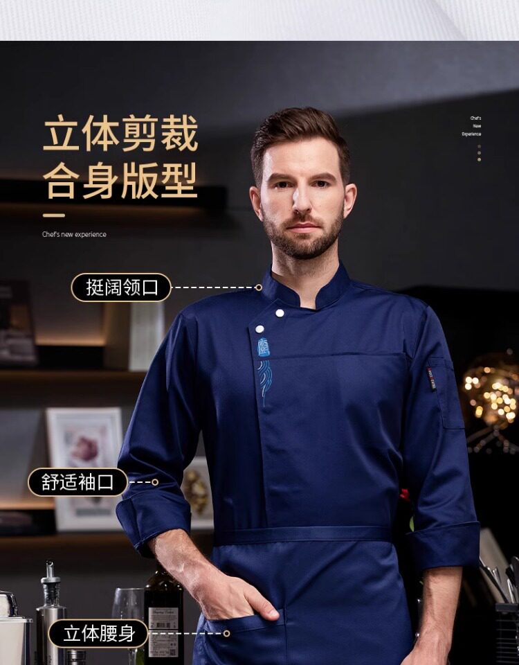 新式厨师工作服秋冬装长袖高端酒店餐饮饭店农家乐厨房短袖衣服男