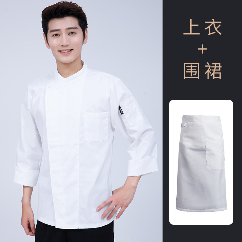 白色厨师工作服长袖秋冬款餐饮酒店饭店食堂后厨房服装男定制套装