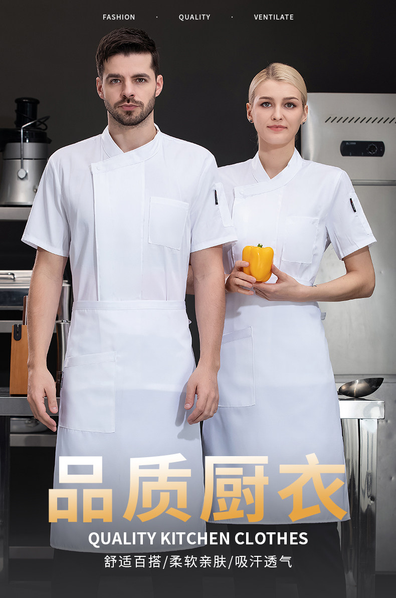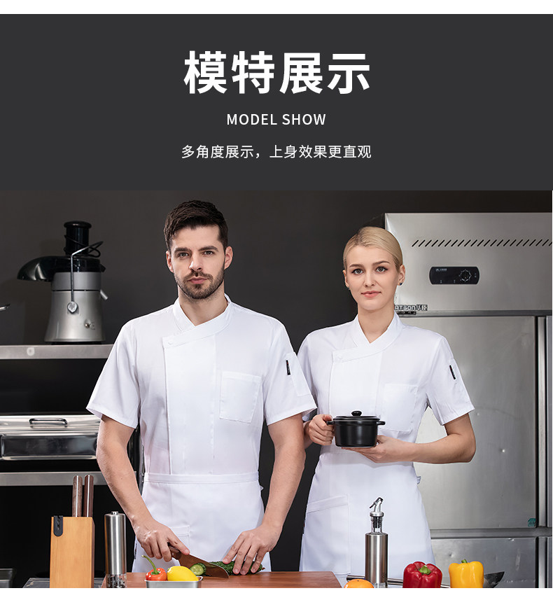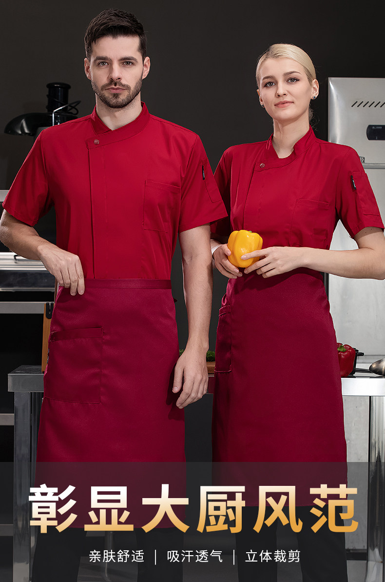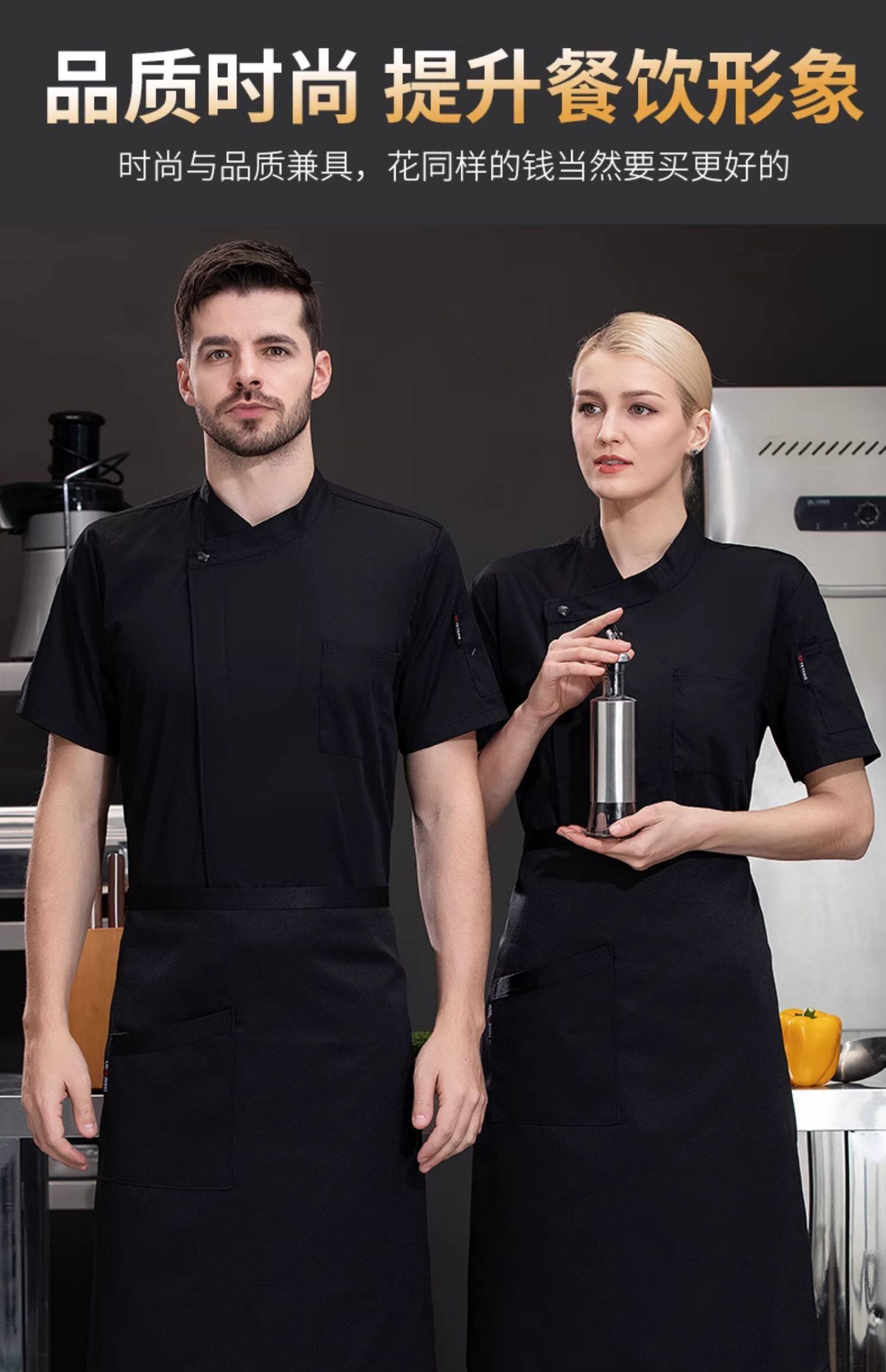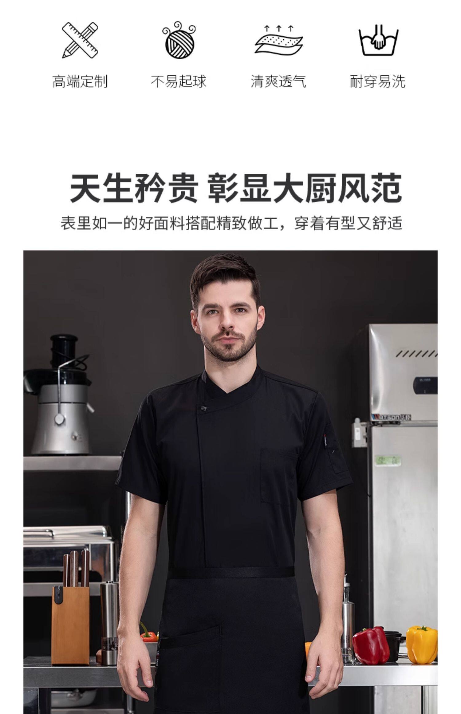 高端厨师工作服短袖透气工装男夏季餐饮酒店早点西餐厅后厨房厨衣